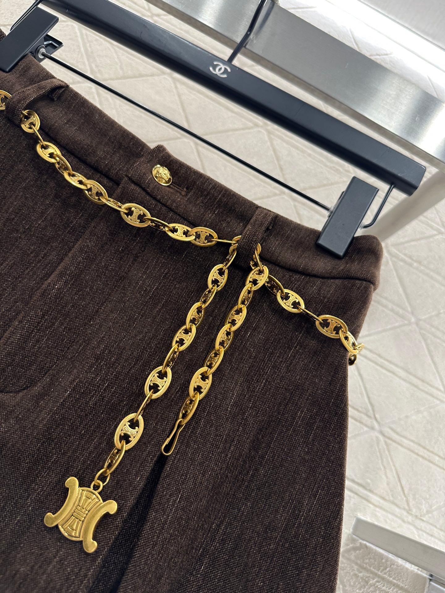 Collar suit waist chain pleated short skirt set