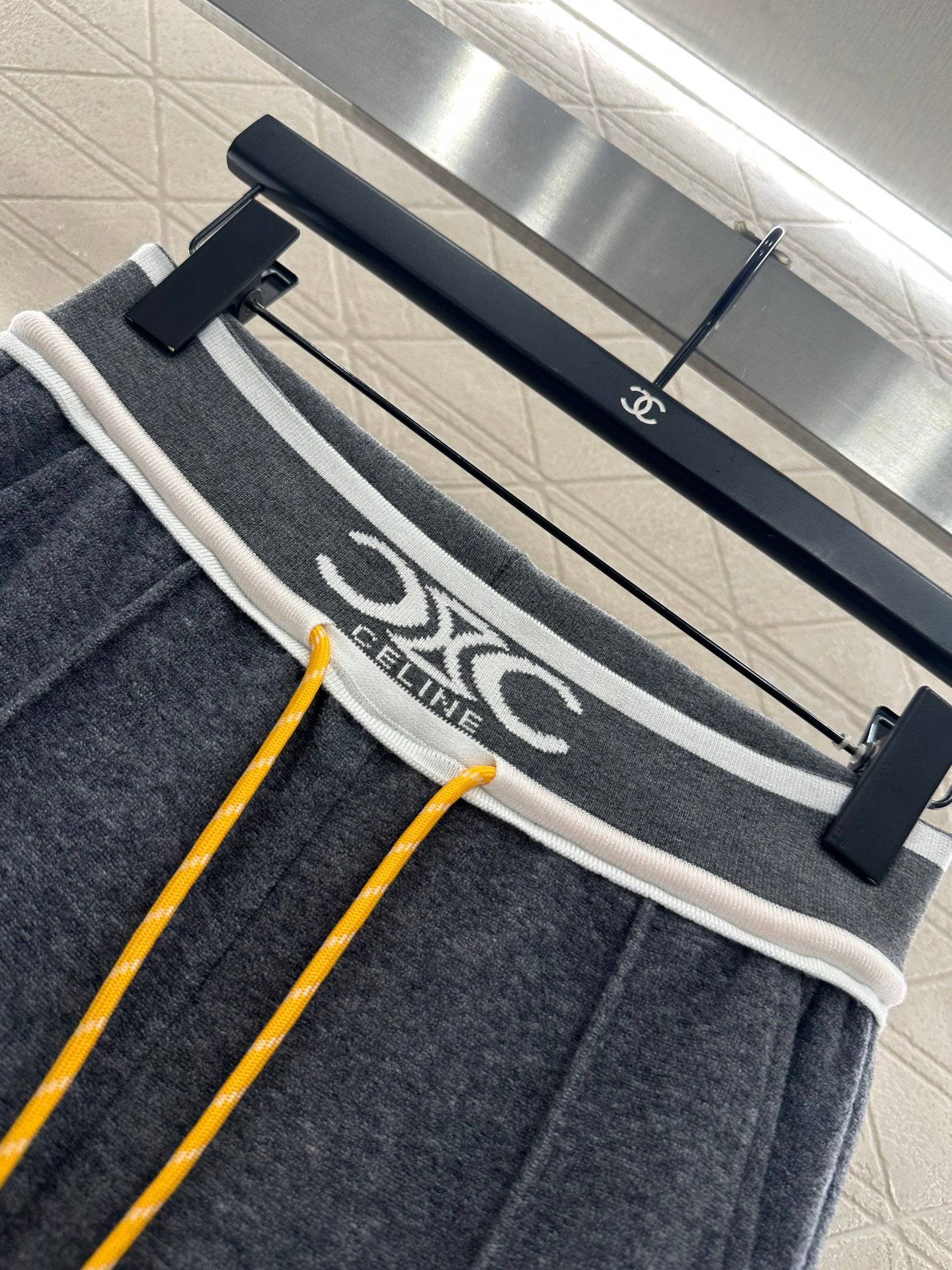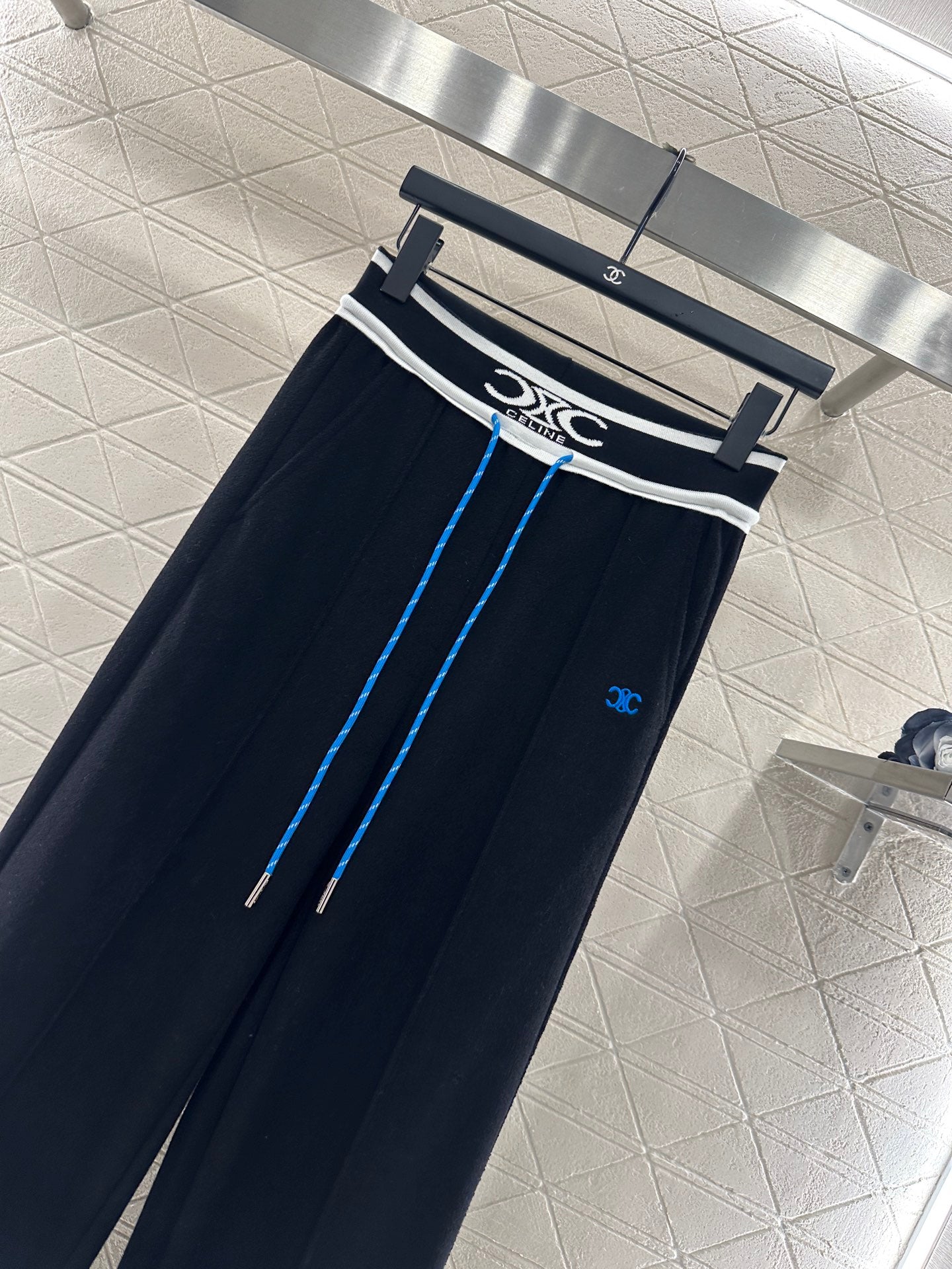 The fabric is soft and comfortable, with a flowing and stylish design. The high waisted drawstring straight leg pants are tightened with elastic webbing, and the letter logo is paired with striped contrasting colors to create a rich sense of layering. The colorful drawstring is paired with the embroidered emblem of the Arc de Triomphe, creating a casual and fashionable look. The contour lines are outlined to enhance the leg shape,