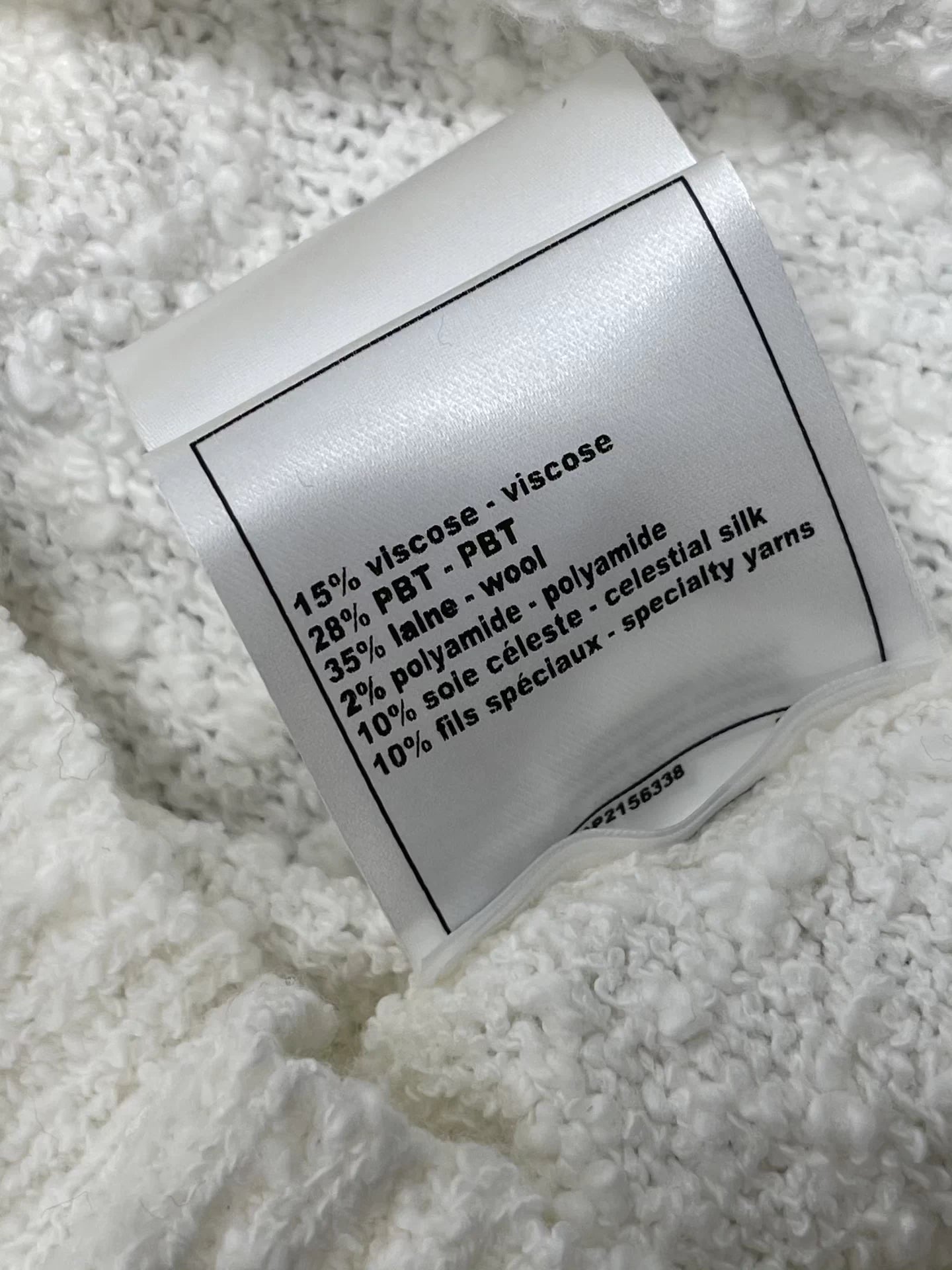 Woven from wool yarn, comfortable to wear, soft and delicate, with a short sleeved collar knit cut and a semi open design connected by a rhinestone butterfly knot. The collar edge extends to the front and is decorated with contrasting crochet hooks. The finished garment is finely woven with a dense texture, showcasing a delicate and stylish feel, suitable for both dates and commuting