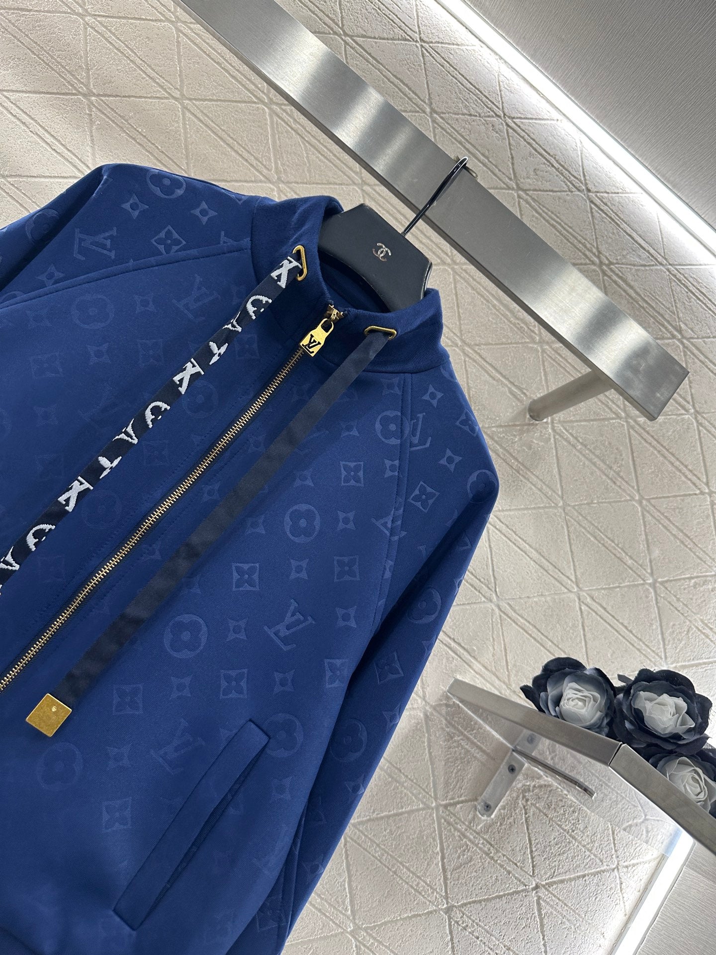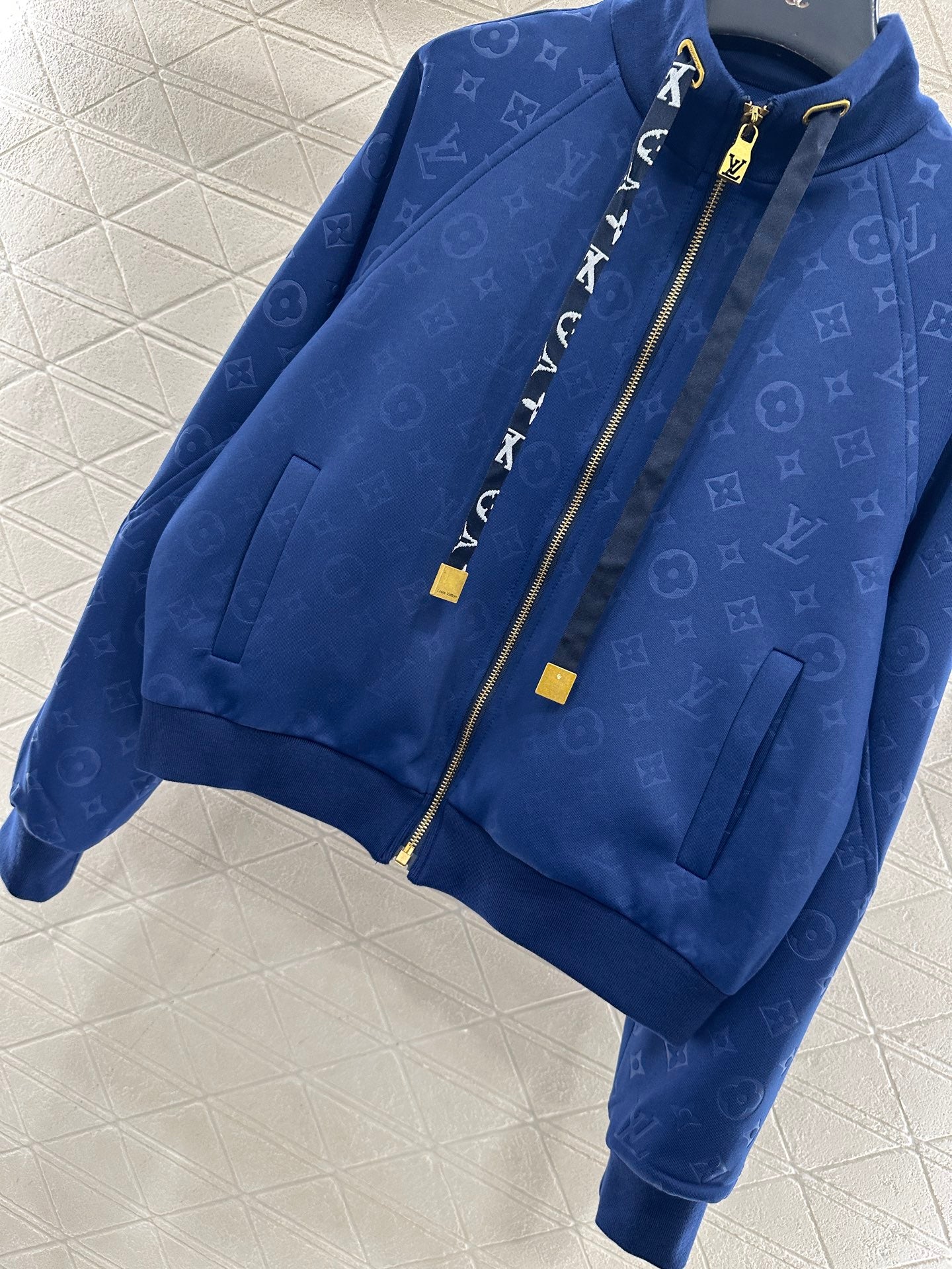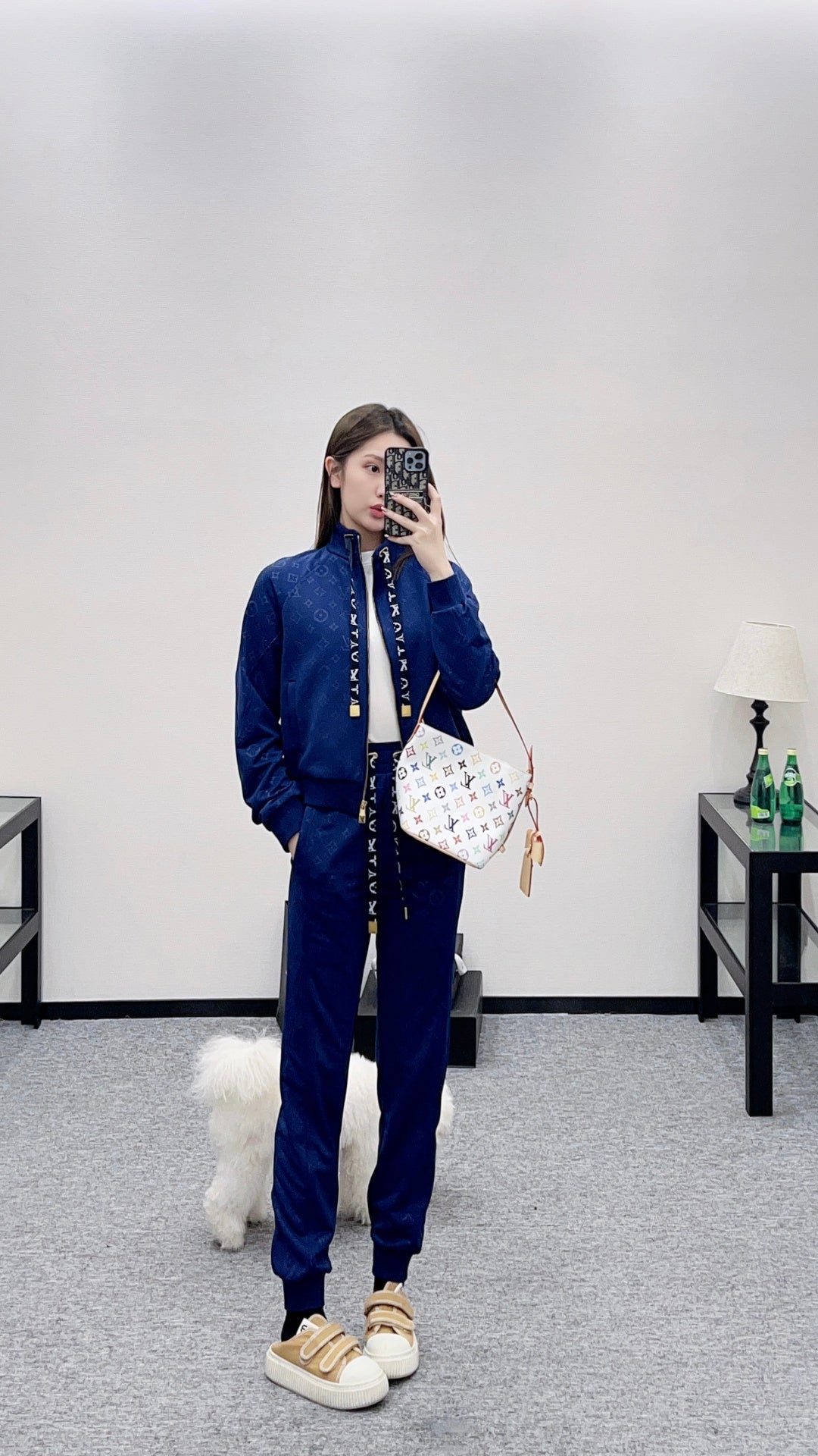 Embossed air cotton material, warm and thick in autumn and winter, comfortable and easy to wear, crisp and stylish, zipper casual jacket pants set, drawstring printed contrasting color ➕ The whole body is fully covered with hat clover dark pattern letters, which complement each other and highlight personality. Paired with the same series of leg tied straight leg pants, the drawstring leather label end is decorated with engraved letter metal, and the details echo up and down, highlighting the brand positioning and enhancing texture. The complete set of upper body wear is worry free, fashionable and stylish