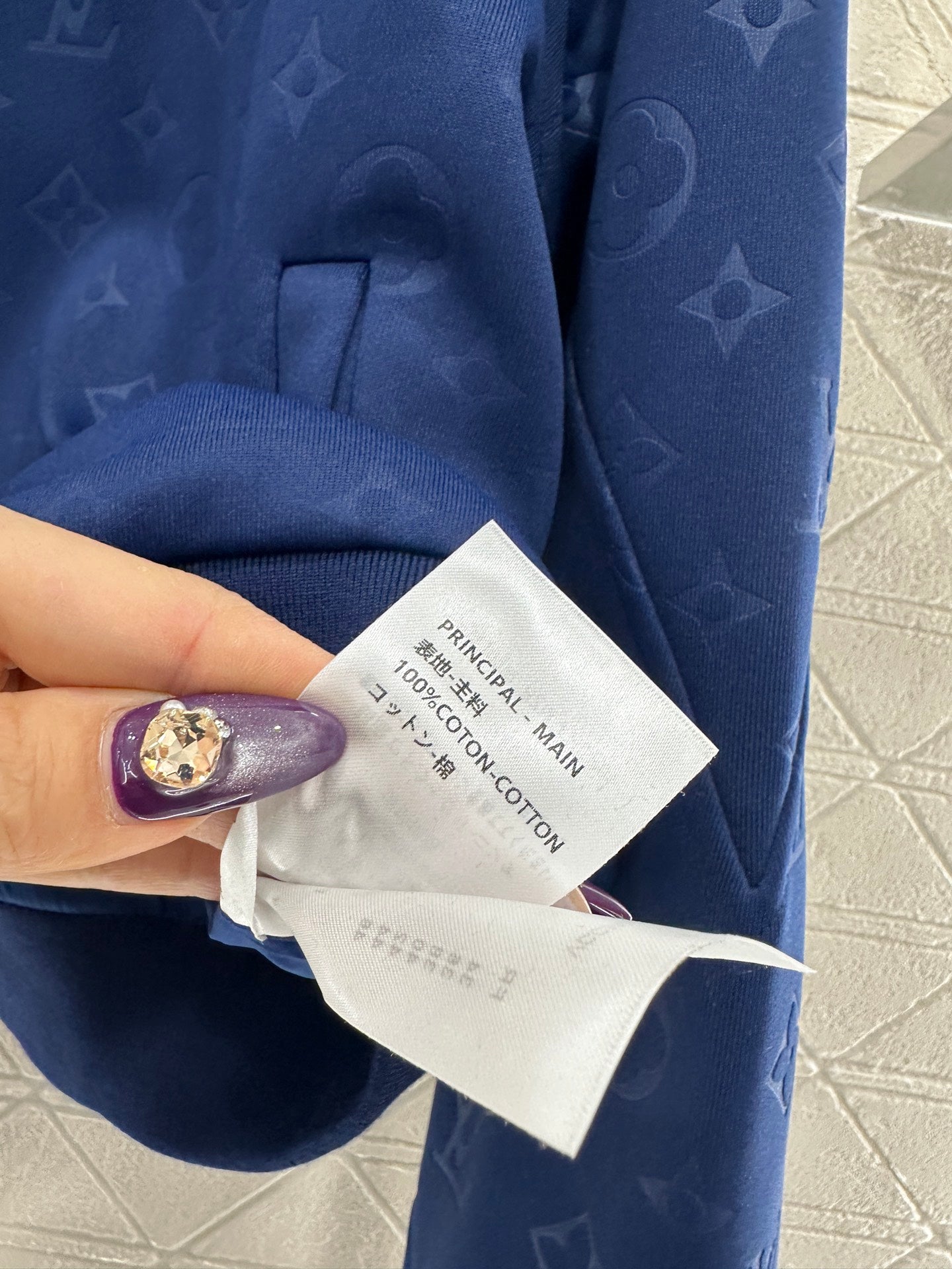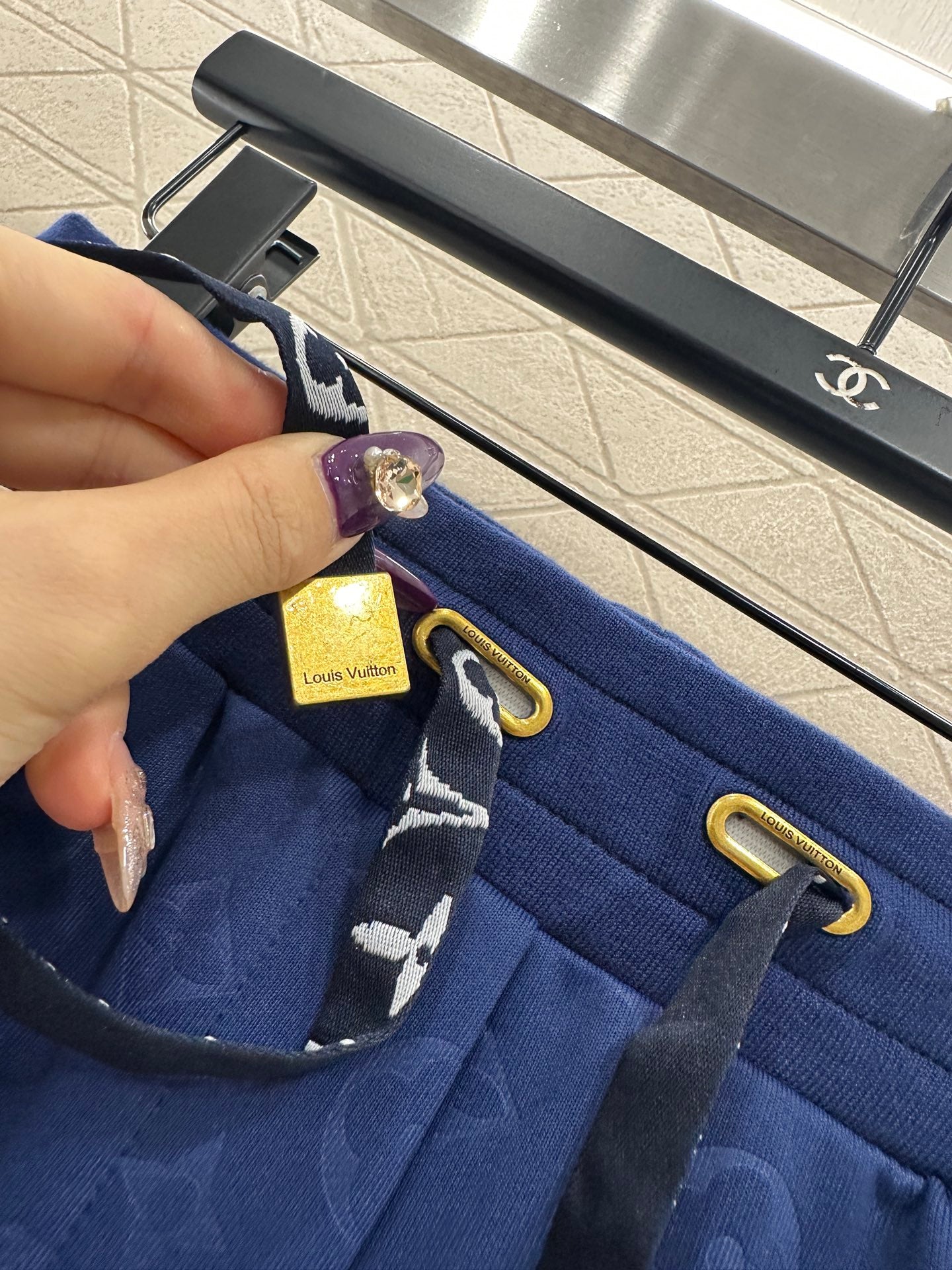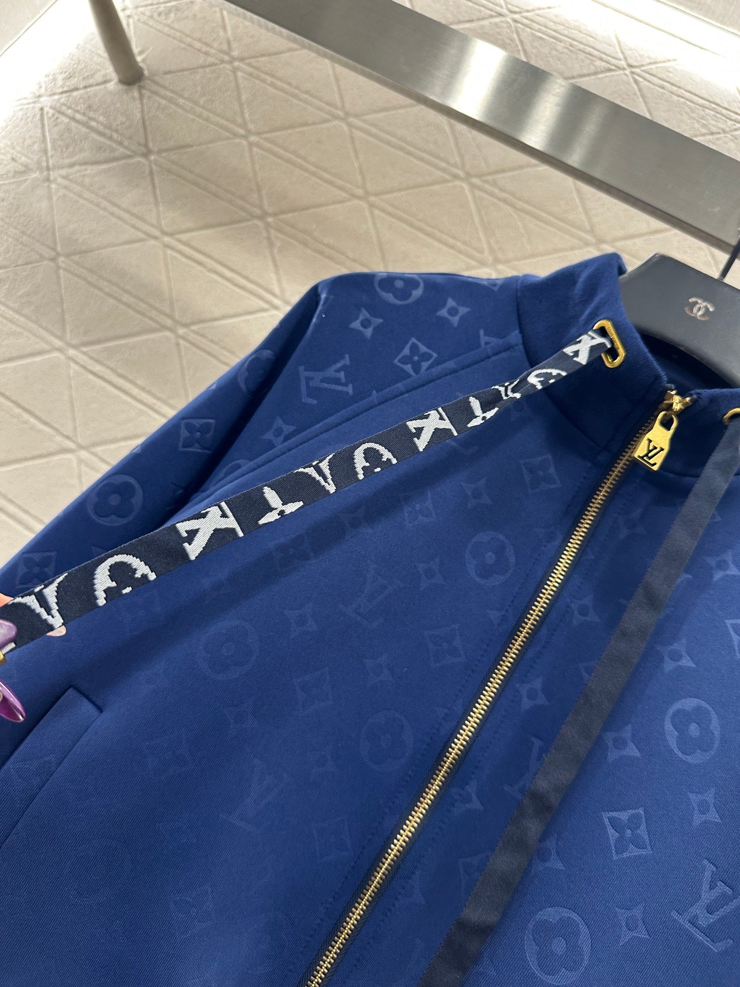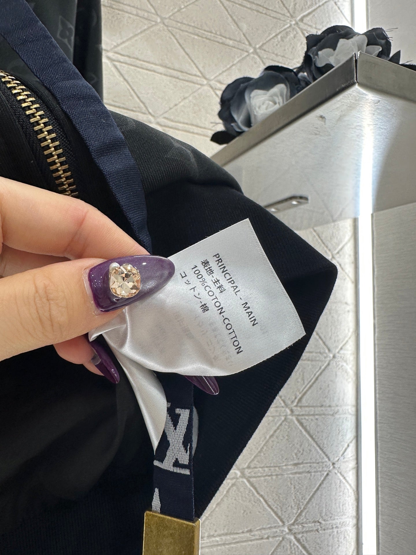 Embossed air cotton material, warm and thick in autumn and winter, comfortable and easy to wear, crisp and stylish, zipper casual jacket pants set, drawstring printed contrasting color ➕ The whole body is fully covered with hat clover dark pattern letters, which complement each other and highlight personality. Paired with the same series of leg tied straight leg pants, the drawstring leather label end is decorated with engraved letter metal, and the details echo up and down, highlighting the brand positioning and enhancing texture. The complete set of upper body wear is worry free, fashionable and stylish