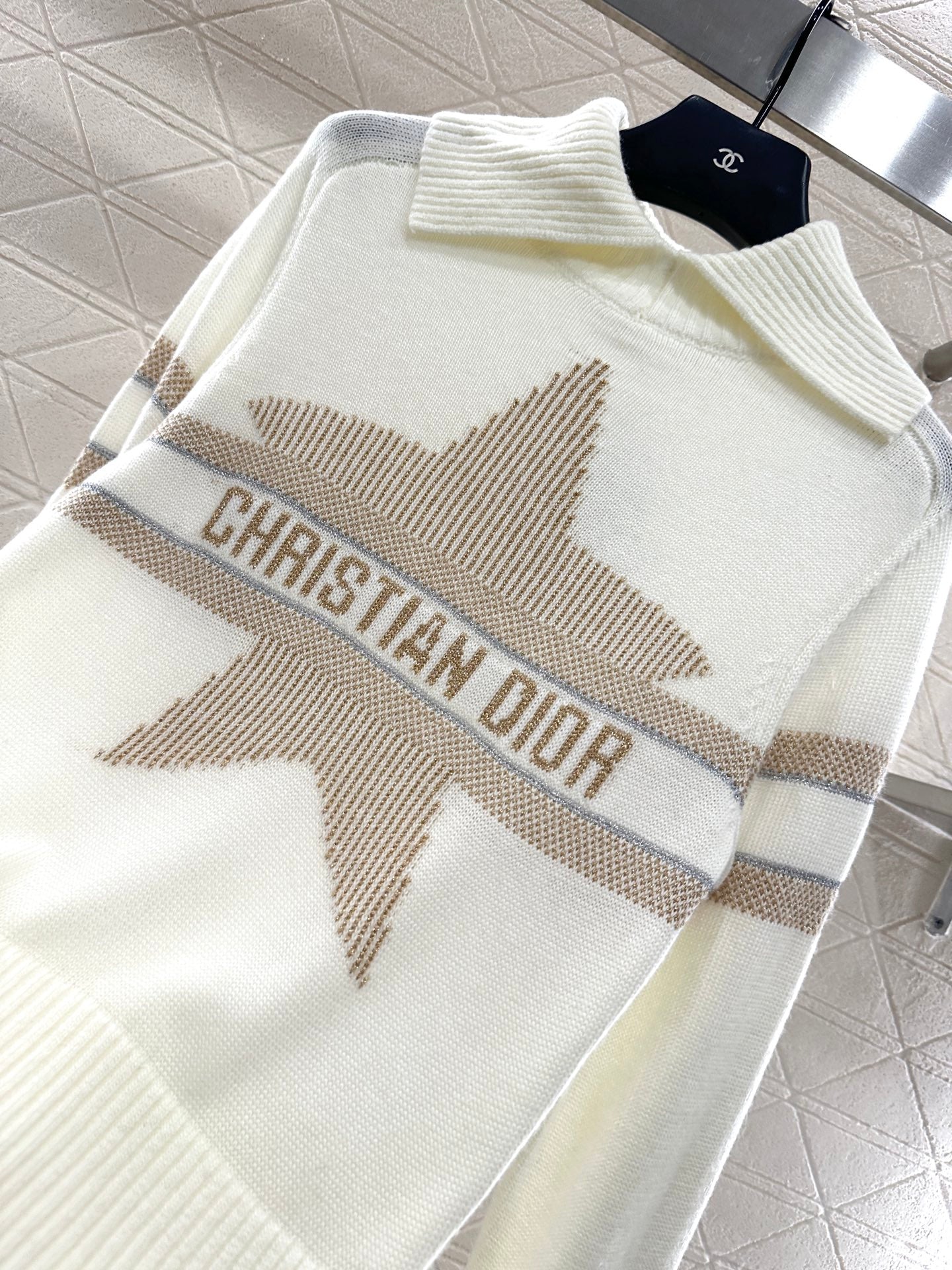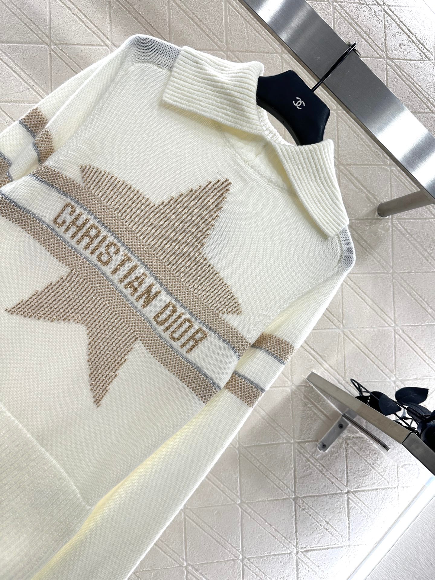 Cashmere yarn weaving texture is high-end, comfortable, soft, with a lapel and long sleeved sweater. The cut is dense, knitted, and matched with pit details for better insulation and wind resistance. The cuffs are wide, threaded, and the edging matches the hem. The chest crossbar is decorated with letter hooks and flowers ➕ The five pointed star pattern decoration highlights the brand's tone. The shoulder style is a regular version