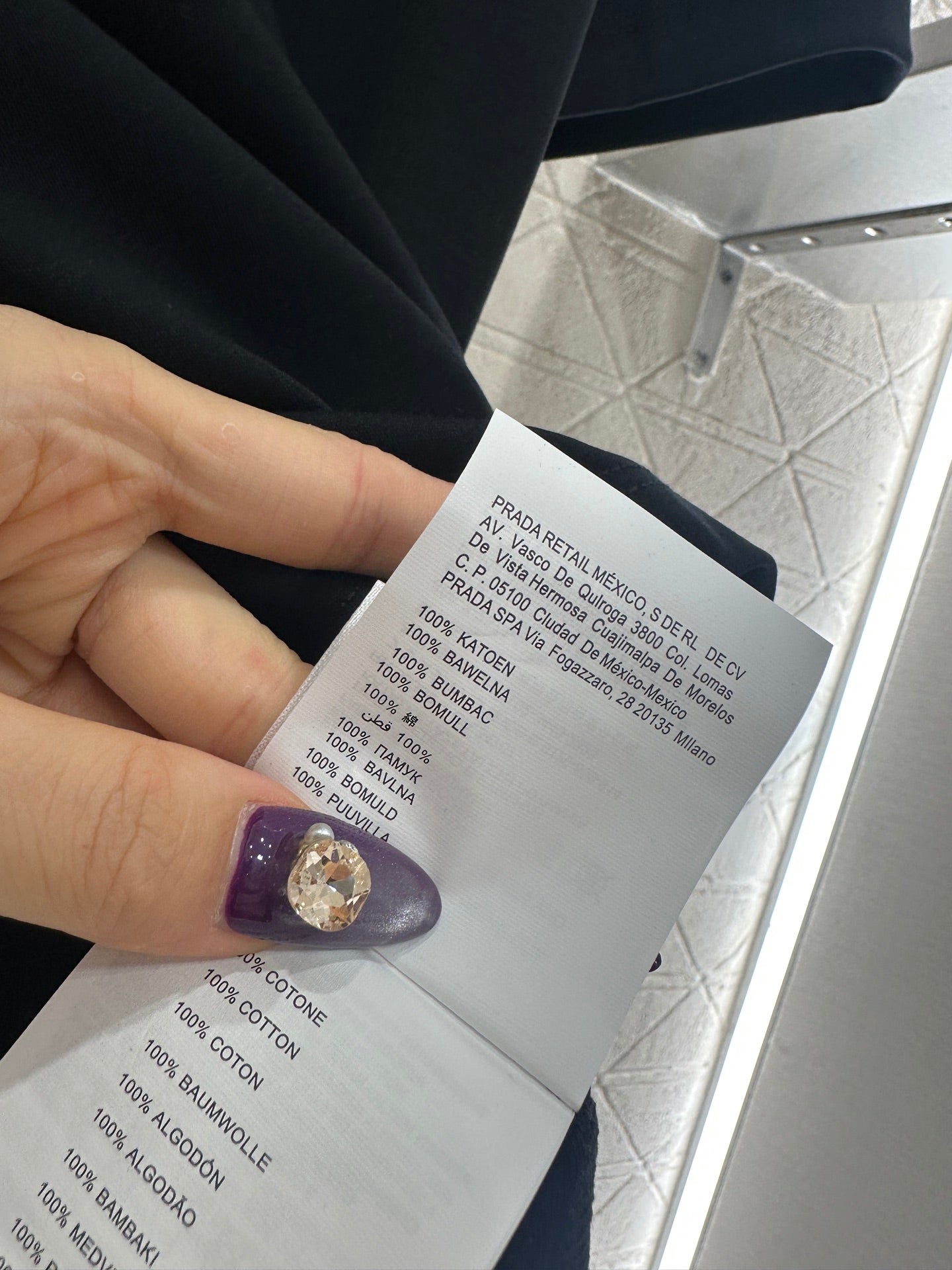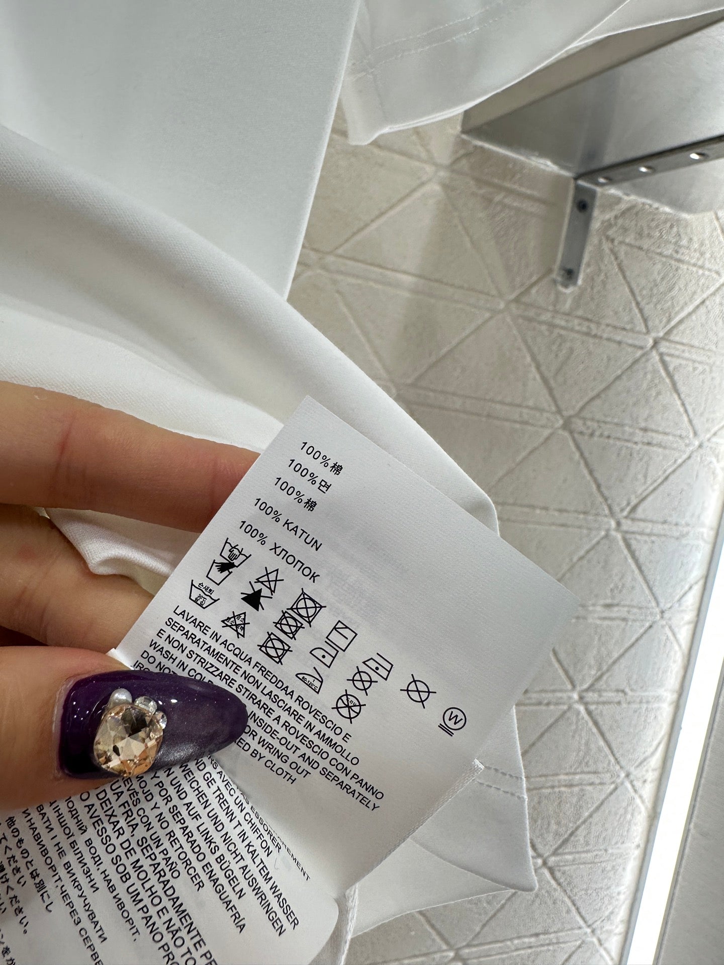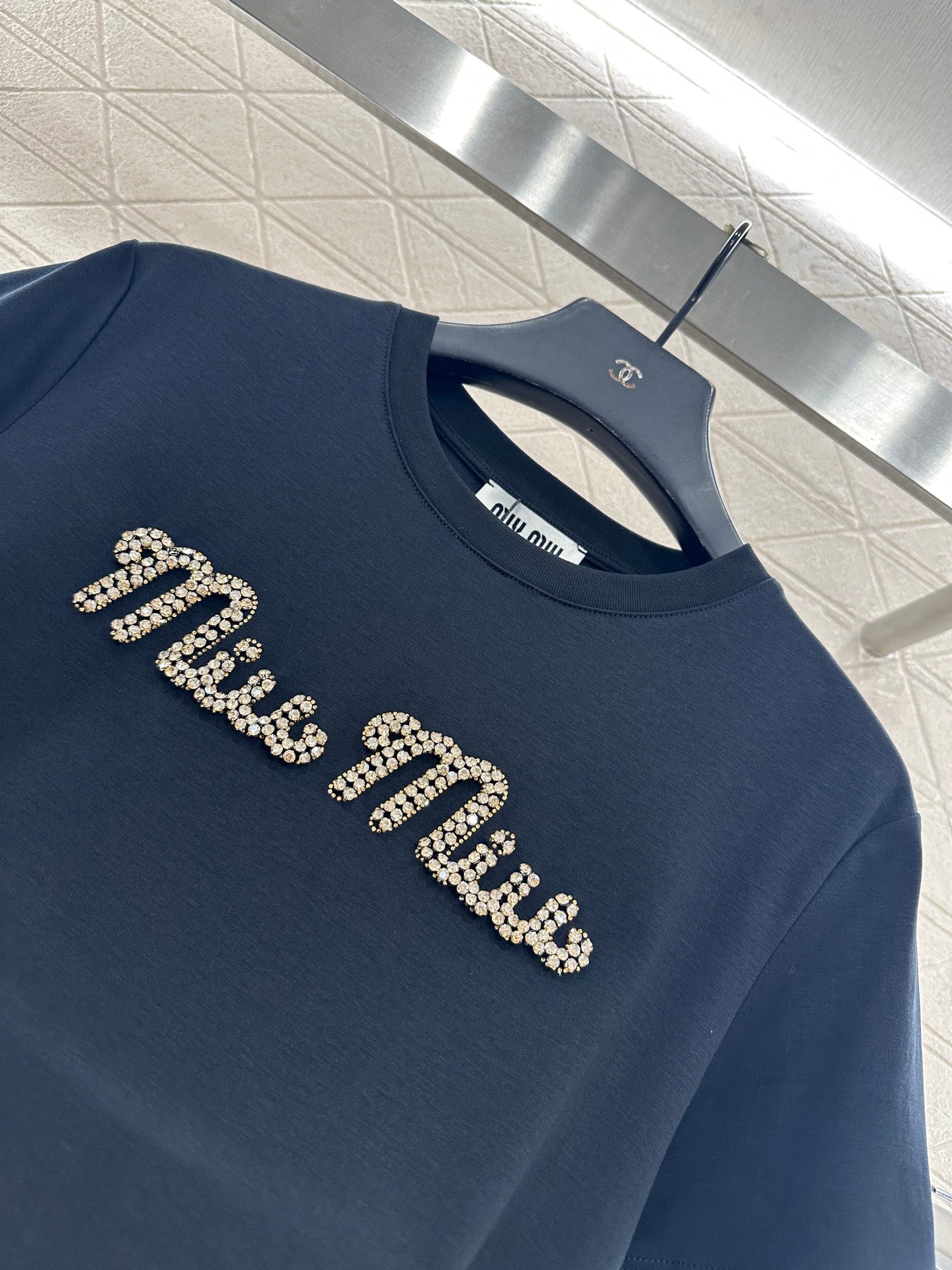 Made of all cotton material, breathable and comfortable, with a rich texture. The regular short sleeved T-shirt is cut to highlight the brand style. It is made of heavyweight pure cotton with slight elasticity, presenting a slimming visual effect. The chest is decorated with a beaded rhinestone process, restoring the brand's letter logo, and combined with a sparkling and reflective gorgeous effect, the highlight is prominent. It is fashionable and eye-catching when worn alone, and the luster and reflective effect make the outfit more eye-catching and stylish