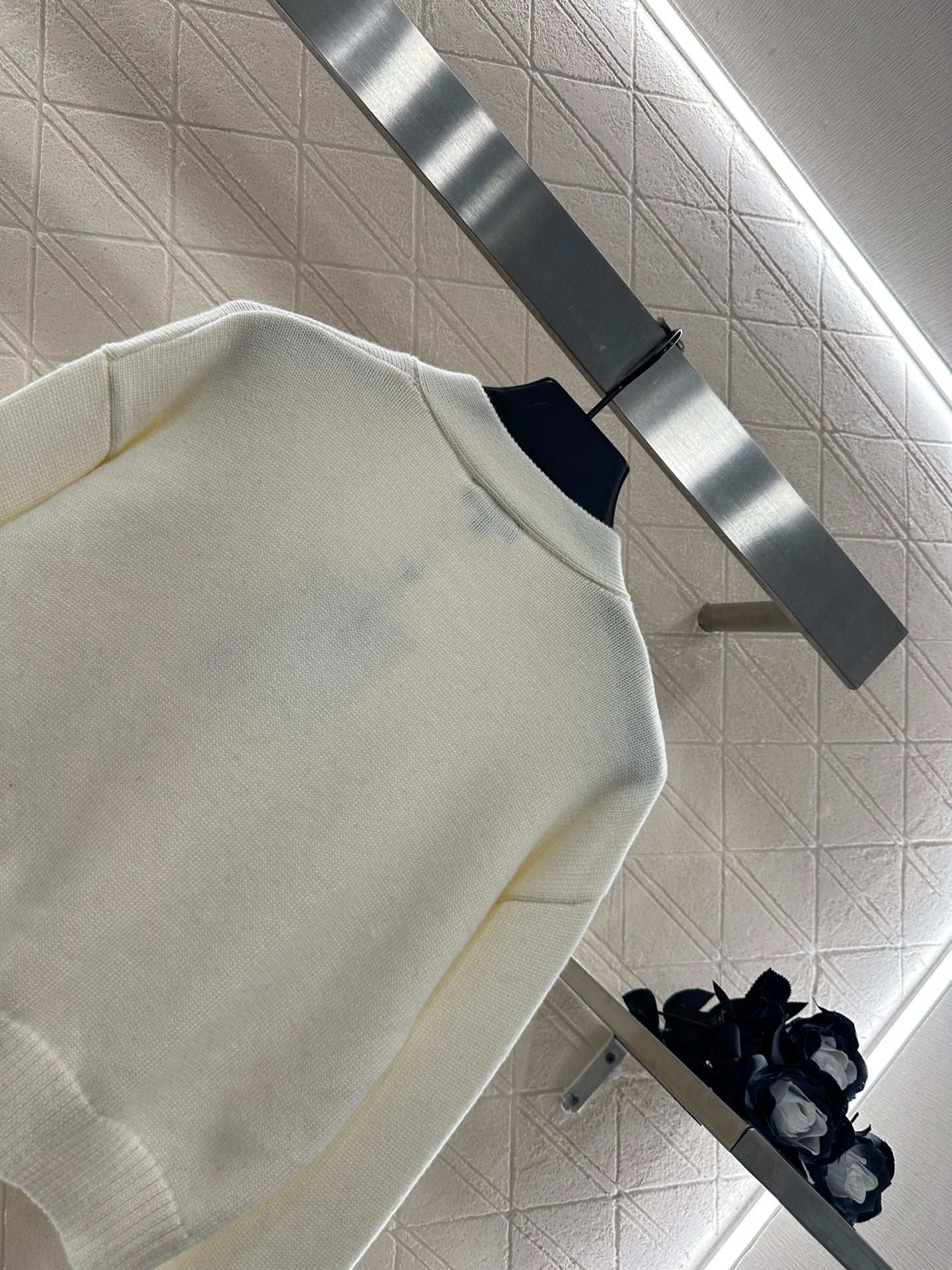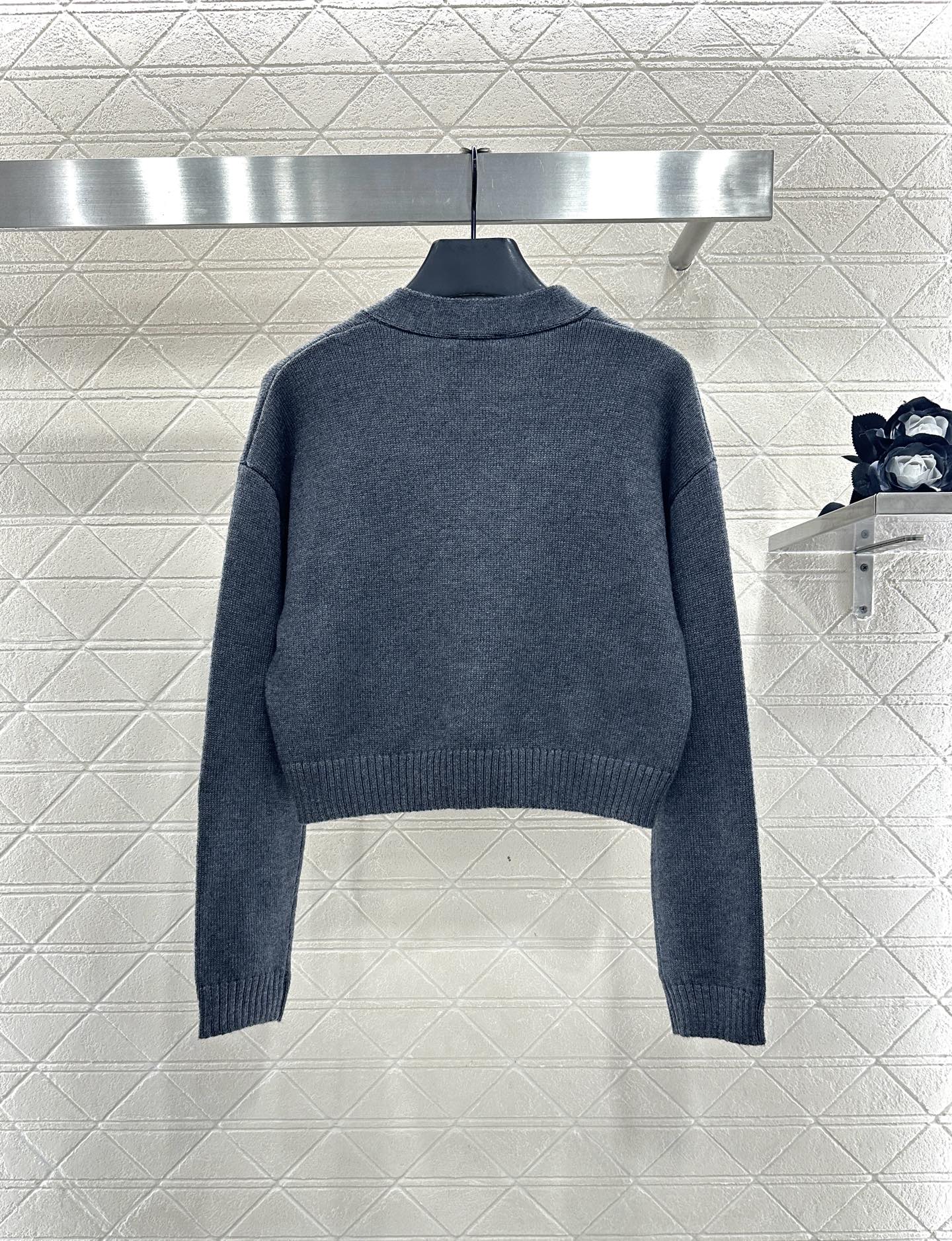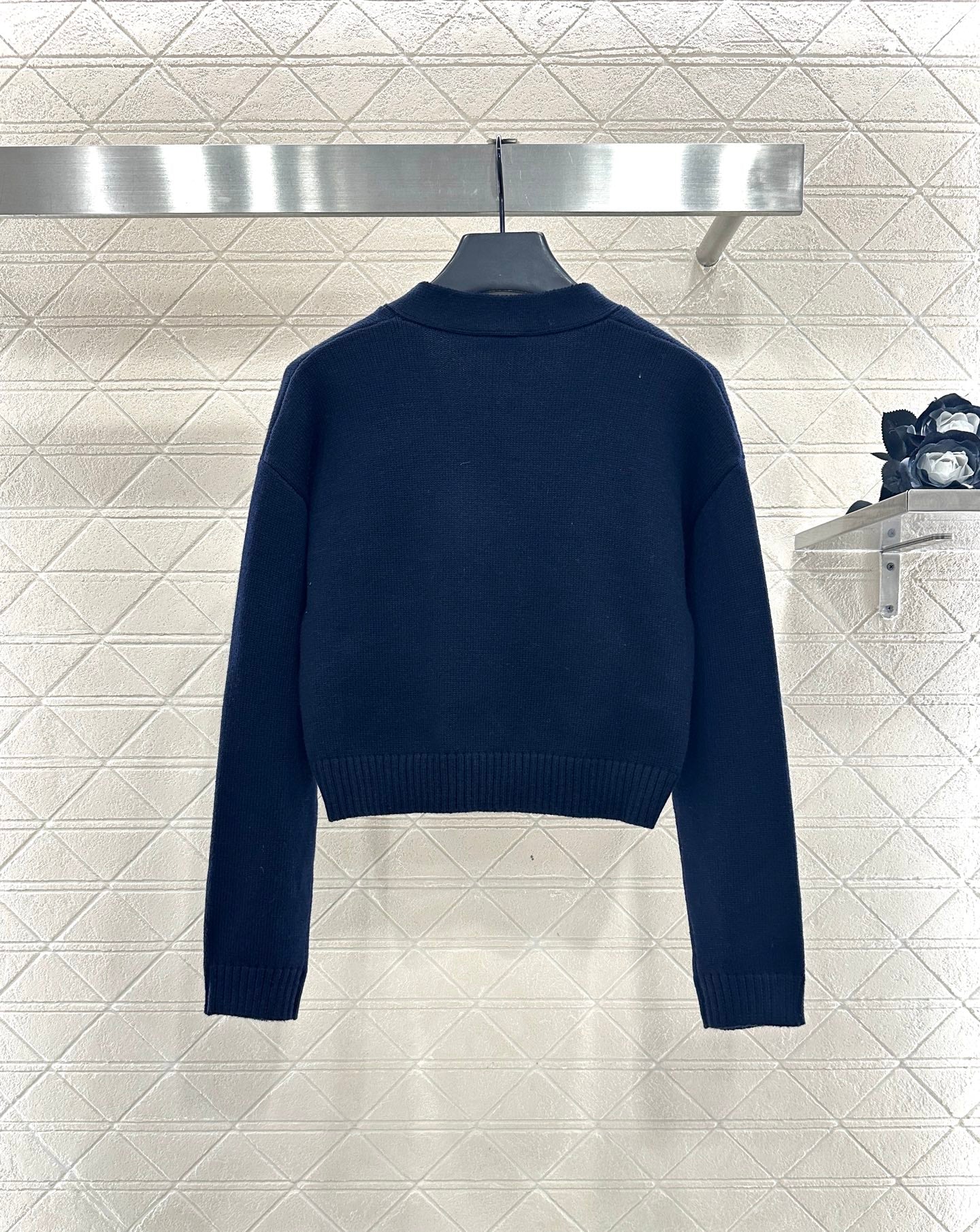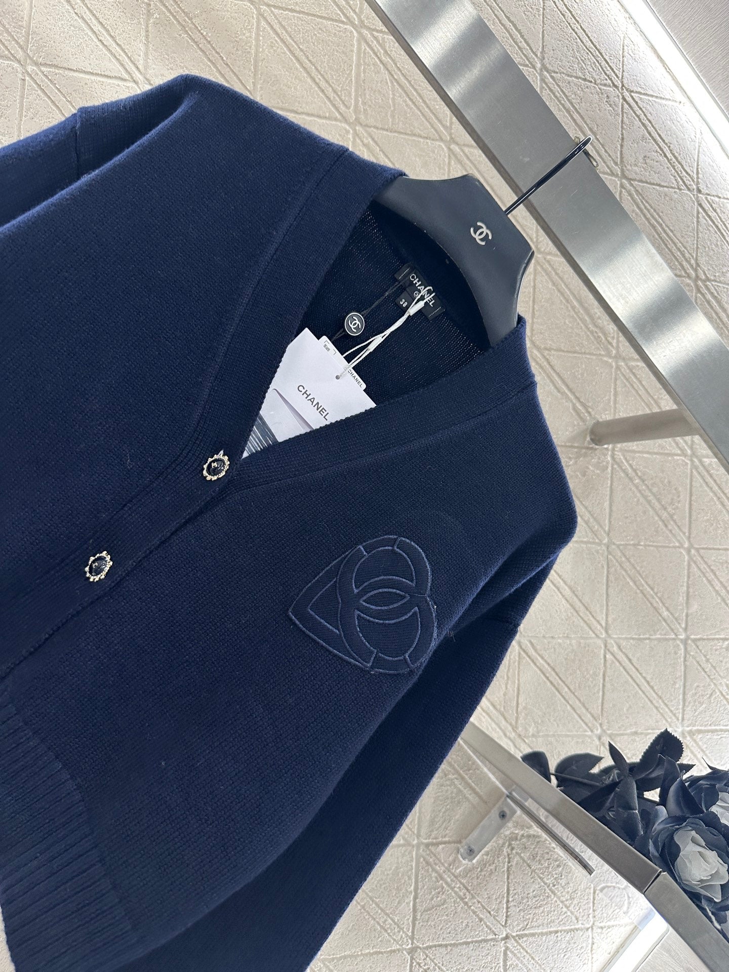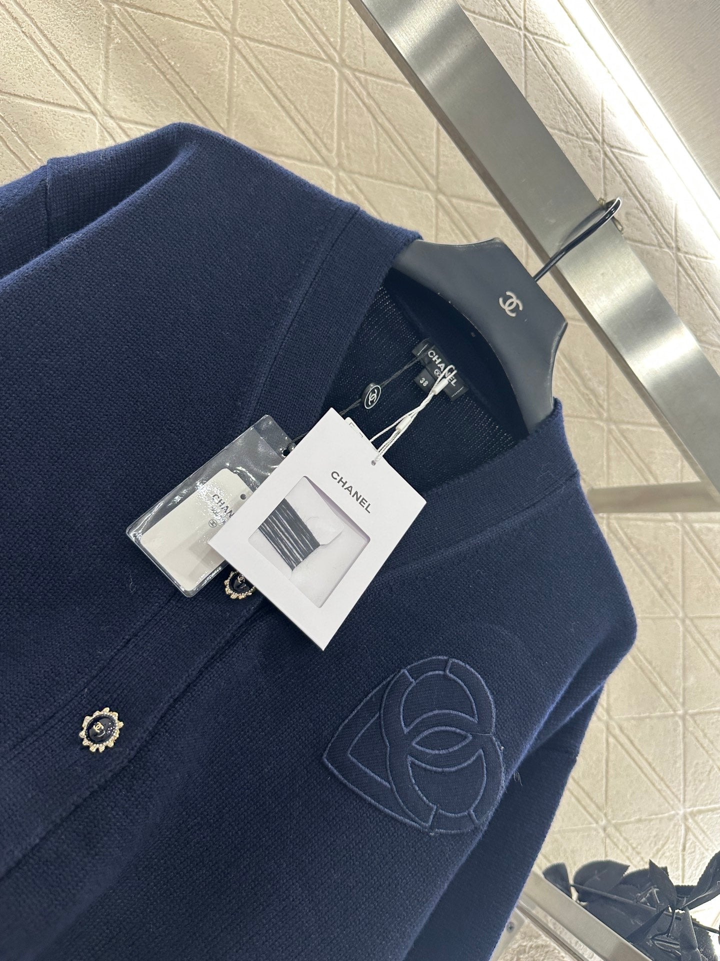 Woolen yarn weaving, delicate texture, comfortable and easy to wear, V-neck short knitted cardigan, embellished with molded flower double C front twist button, exposed skin to enhance shoulder and neck lines, while adding delicacy. The chest is decorated with three-dimensional relief double C logo, combined with a heart-shaped pattern, sweet and full of vitality, showing fashionable dressing, breaking the dull atmosphere of autumn and winter, and wearing a high-end and stylish style.