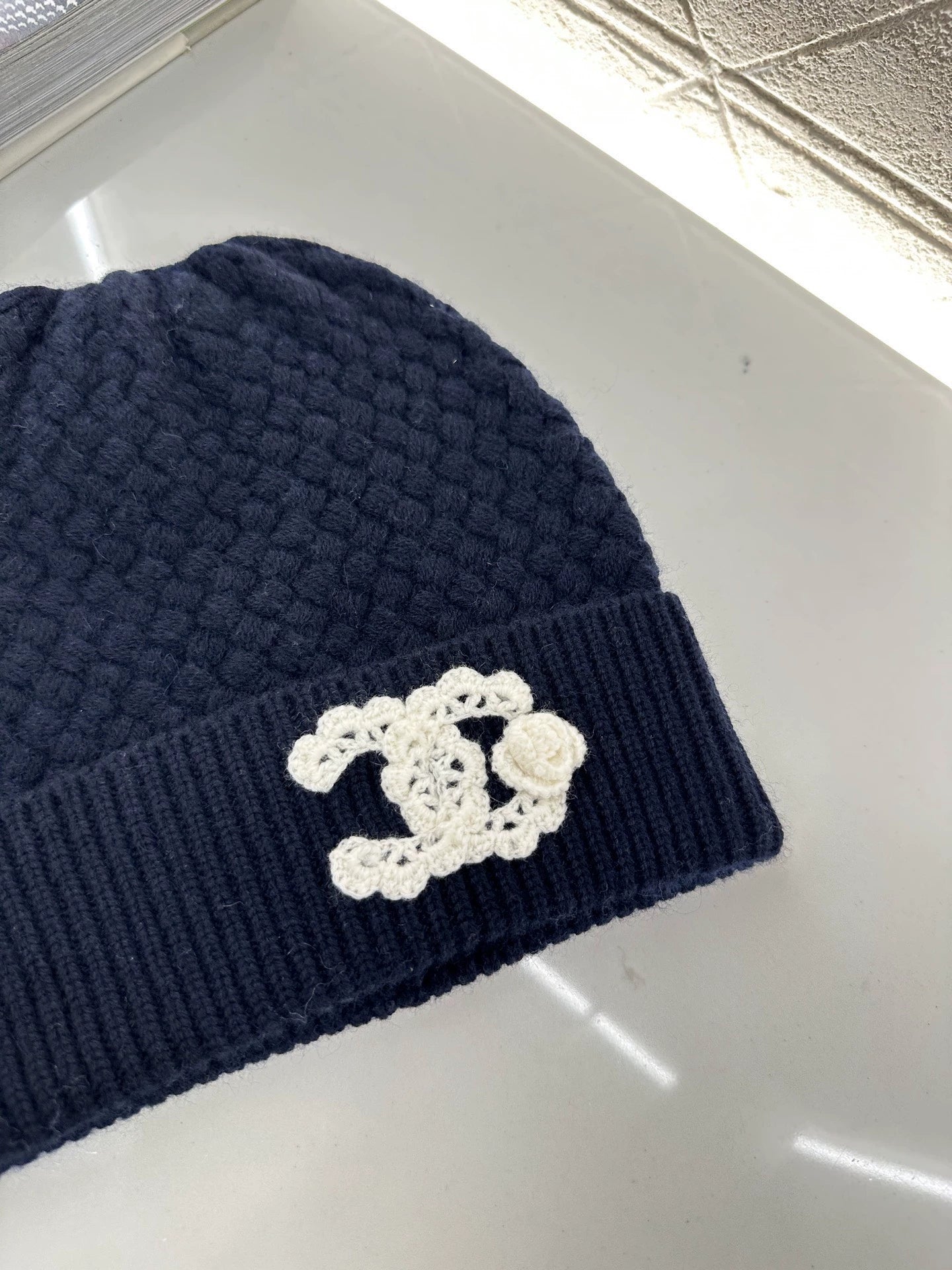Cashmere wool material is skin friendly, soft, warm, comfortable, plain color, clean version, knitted yarn hat, diamond shaped waffle texture, hook weave design, slightly hollowed out air feeling texture, more versatile and durable, with a foldable brim ➕ Decorate with plush double C letter logo and embellish with camellia details to showcase brand style. Available in multiple colors to match the current hot fashion trend and warm atmosphere in autumn and winter. Essential item