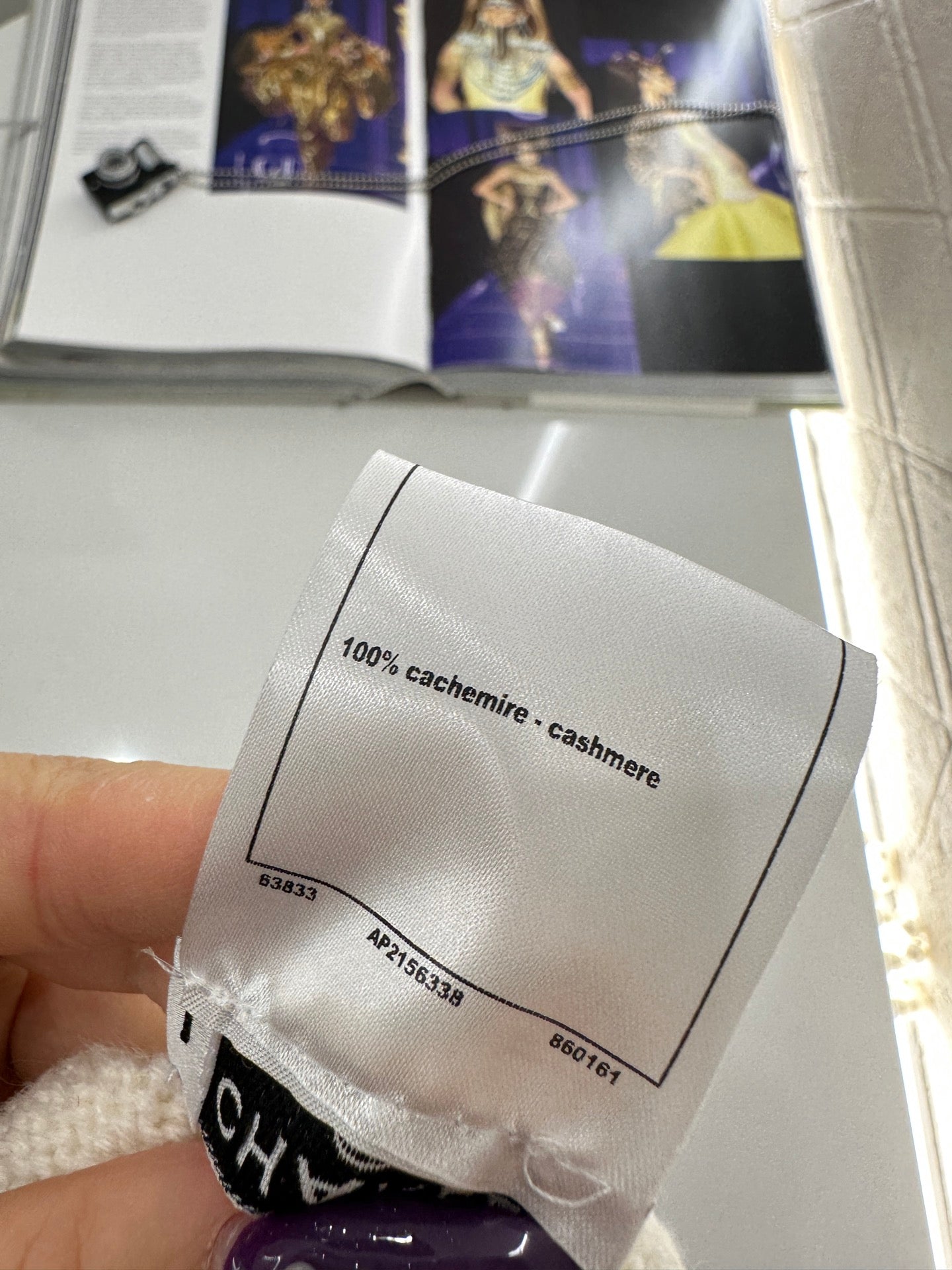 Made of cashmere material, it is skin friendly and soft, warm and comfortable. It features a plain knitted wool hat with a folded brim edge and contrasting color edging treatment. It is paired with a dense flat needle hook weave design, making the texture more versatile and durable. The side is embellished with a plush double C letter logo, highlighting the brand style. The black and white classic color scheme is versatile and fashionable, making it a must-have item for warm atmosphere in autumn and winter