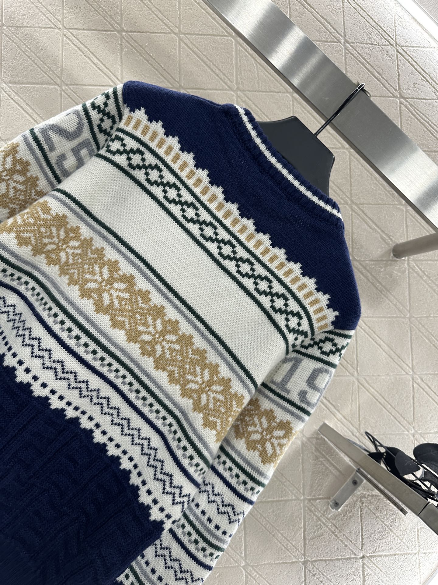 Yarn weaving texture is high-end, comfortable, soft, round neck long sleeved sweater. The collar and cuffs have threaded edges that match the hem, and the collar extends to the waist. The Nordic style hook and flower pattern with letter logo embellishes the chest, highlighting the brand's tone. Knitted fabric is warm and comfortable, with a regular silhouette