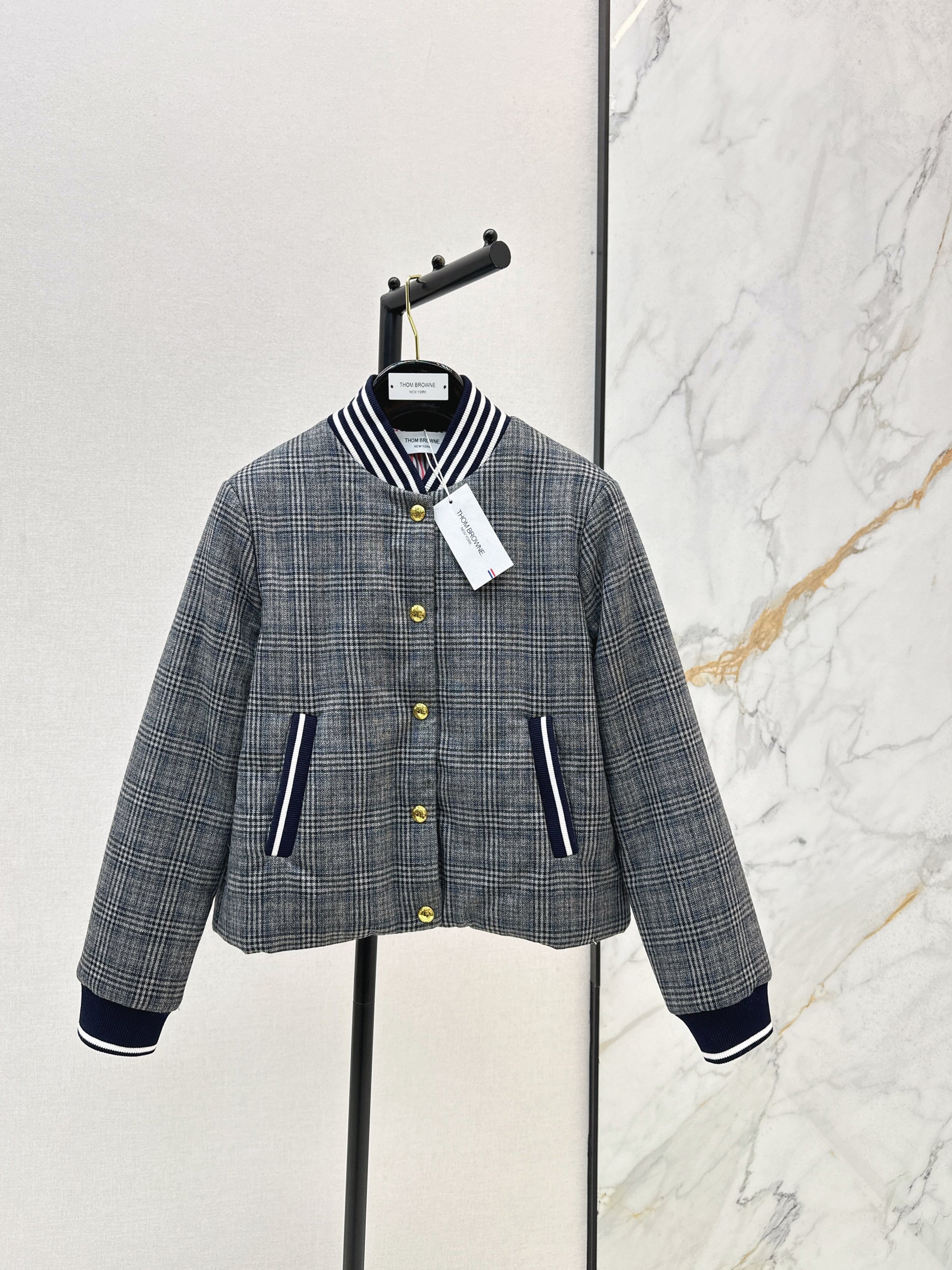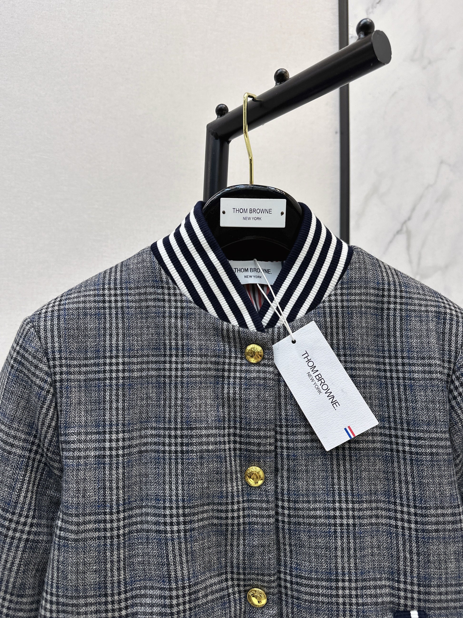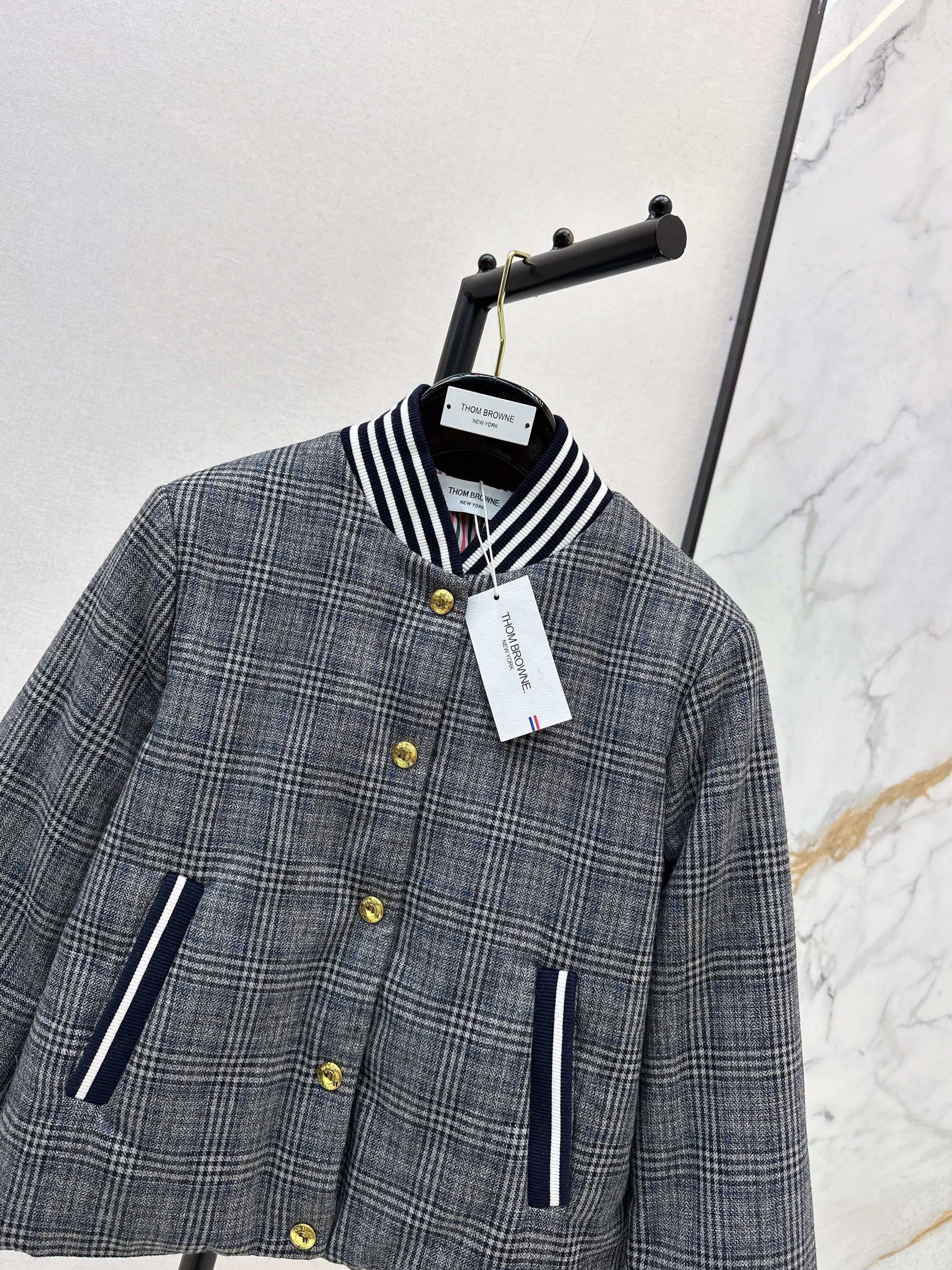 Iconic striped elements with cotton lining, metal buttons, and striped details on the cuffs, creating a British college atmosphere. The short cut, paired with pleated skirts or high waisted pants, is eye-catching and easy to handle for both commuting and leisure