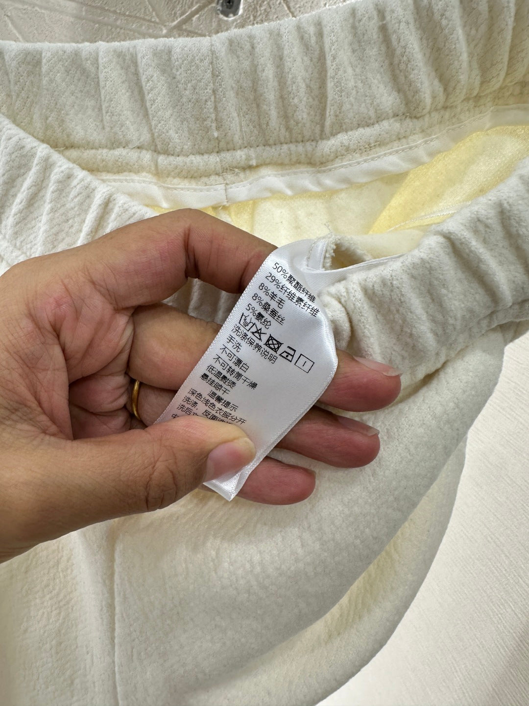 Made of wool blend material, the fabric is soft and comfortable, with delicate luster. The high waisted and wide leg pants have a versatile and durable design, with a solid color throughout. The straight leg pants are created using three-dimensional cutting, making the upper body appear slim and the legs long, with a relaxed and fashionable style. Paired with the iconic contrasting letter logos on both sides of the pockets, the brand's style instantly elevates, exuding a high street fashion vibe. First class plush insulation