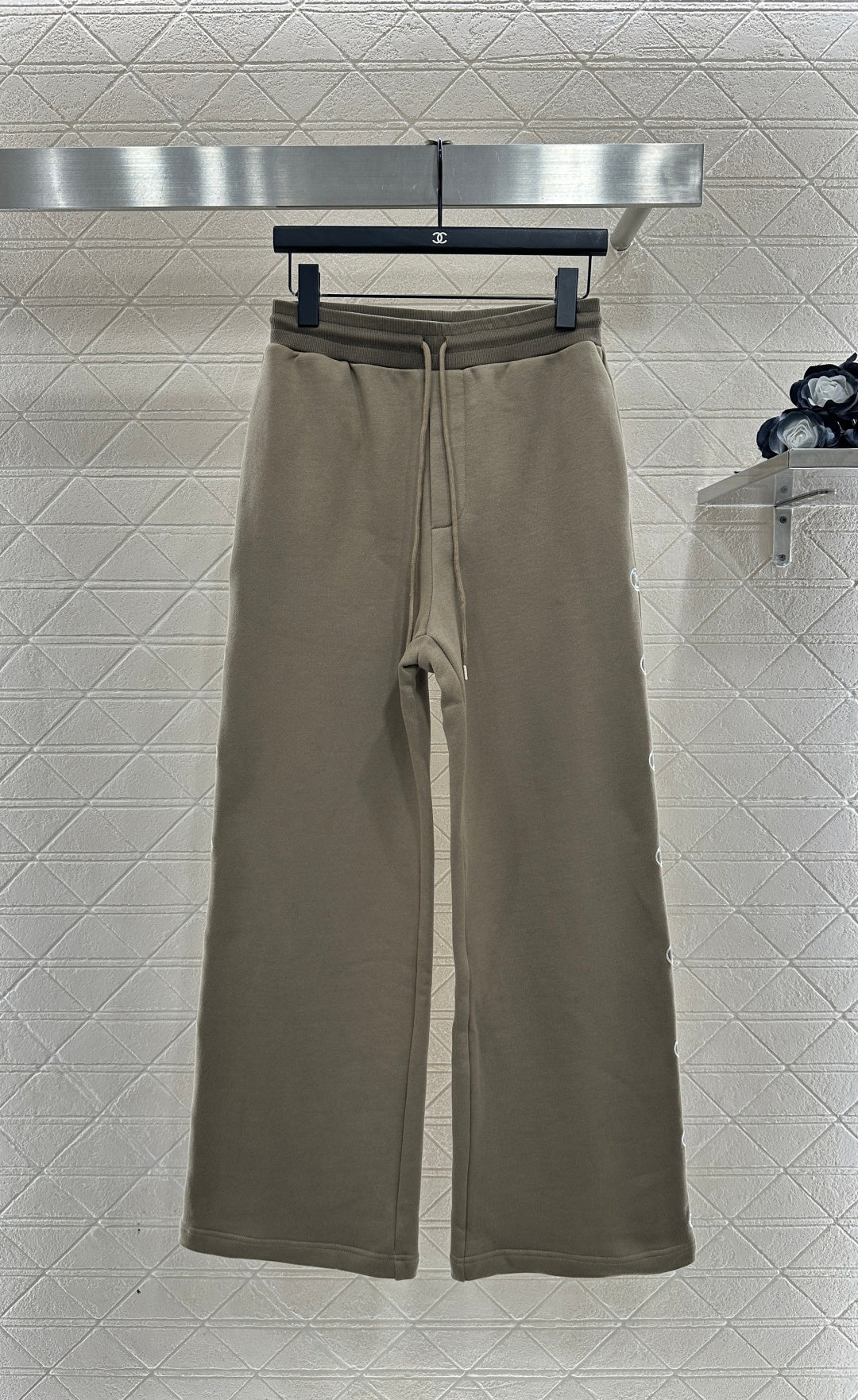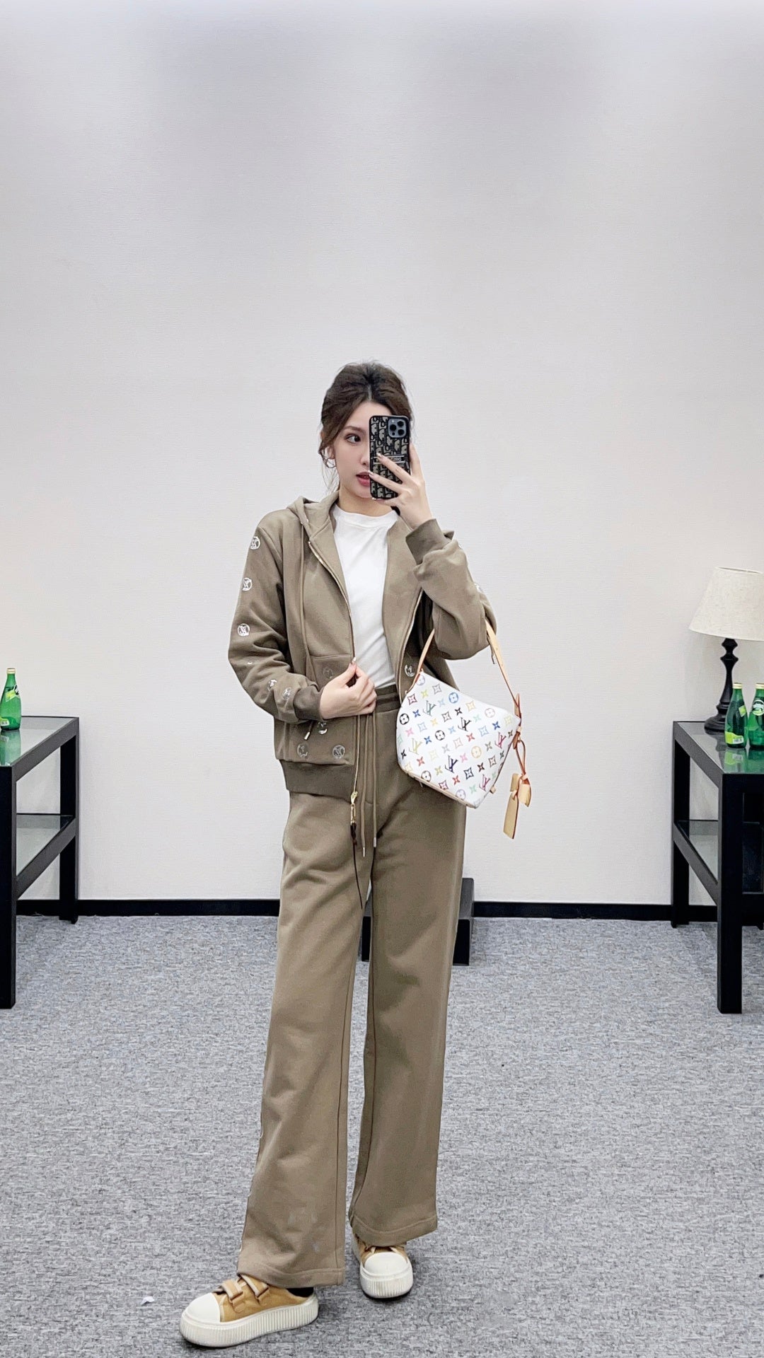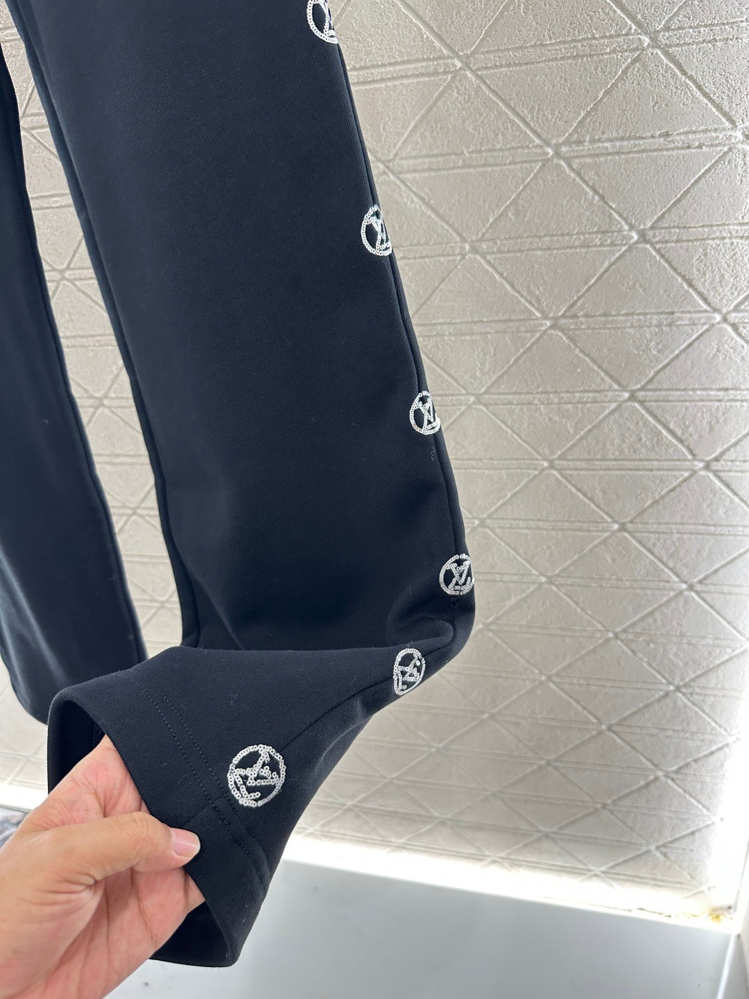 Twill cotton material, warm and thick in autumn and winter, comfortable and easy to wear, crisp and stylish, hooded zipper jacket pants set, adjustable hooded drawstring, hood collar edge ➕ Outer arm ➕ The brand logo outlined by the large area of sequins on the back is more personalized, echoing the symmetrical large capacity pocket jacquard. Paired with straight leg pants of the same series, the side leg sequin letter logo highlights the brand positioning, enhances texture, and adds fashionable charm to the overall look. The inner brushed short velvet is a must-have for autumn and winter. It is worry free to wear as a complete set, fashionable and stylish