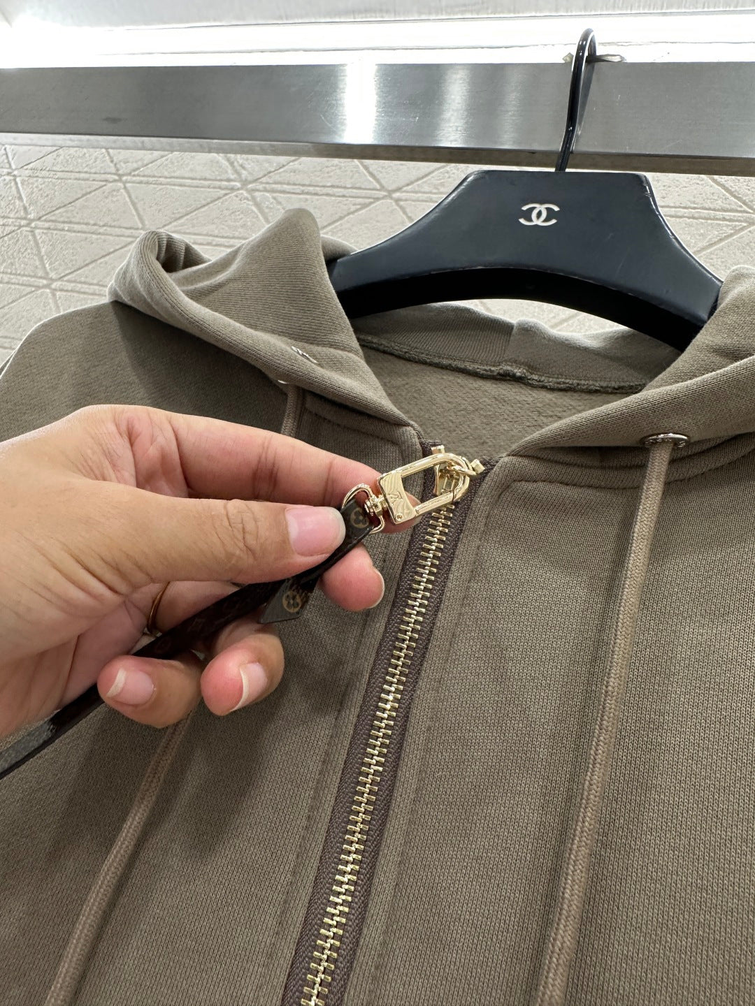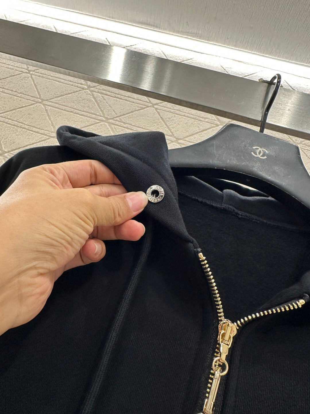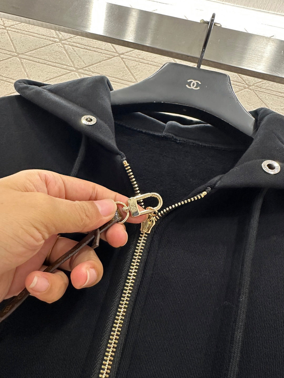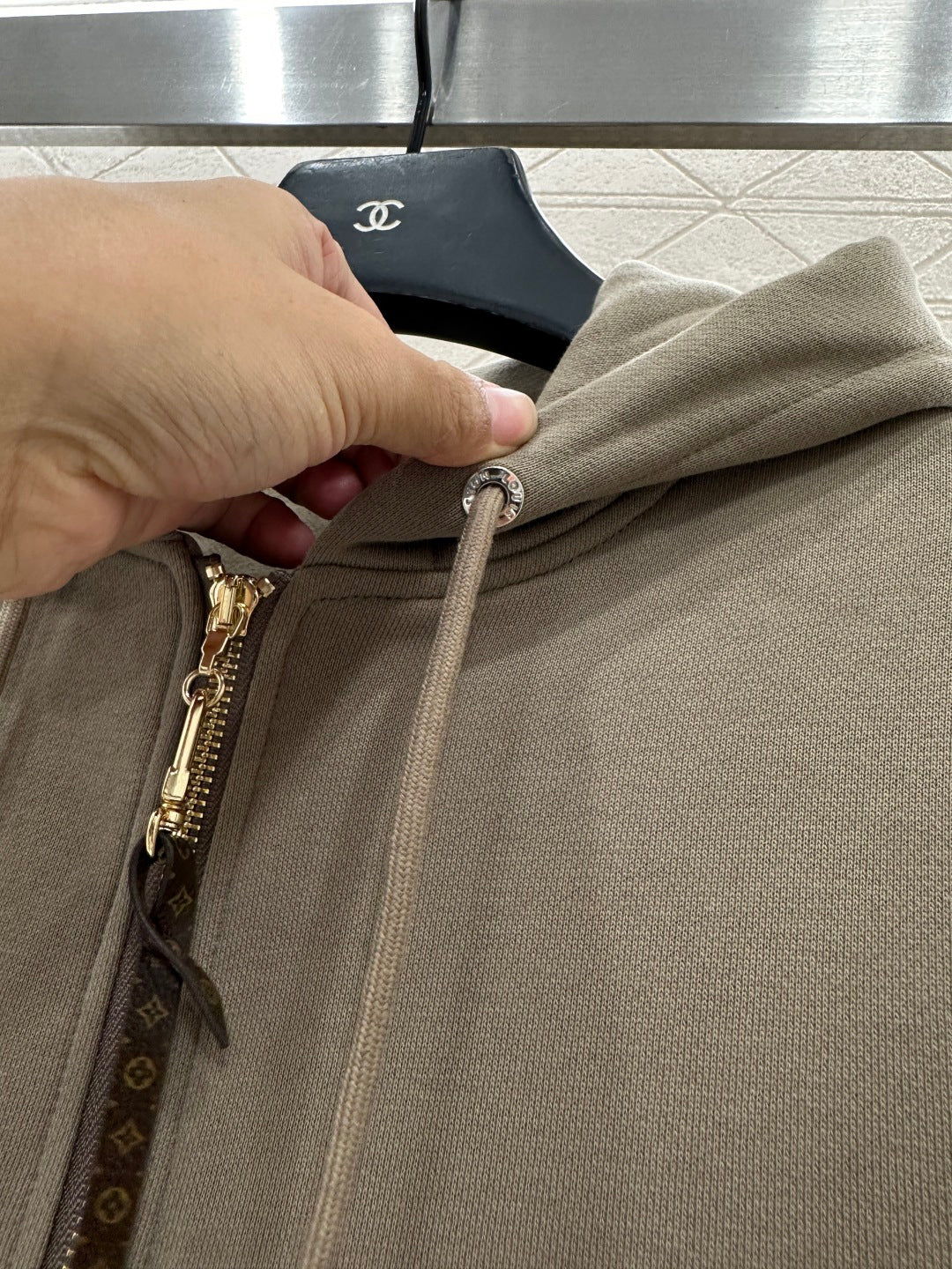 Twill cotton material, warm and thick in autumn and winter, comfortable and easy to wear, crisp and stylish, hooded zipper jacket pants set, adjustable hooded drawstring, hood collar edge ➕ Outer arm ➕ The brand logo outlined by the large area of sequins on the back is more personalized, echoing the symmetrical large capacity pocket jacquard. Paired with straight leg pants of the same series, the side leg sequin letter logo highlights the brand positioning, enhances texture, and adds fashionable charm to the overall look. The inner brushed short velvet is a must-have for autumn and winter. It is worry free to wear as a complete set, fashionable and stylish