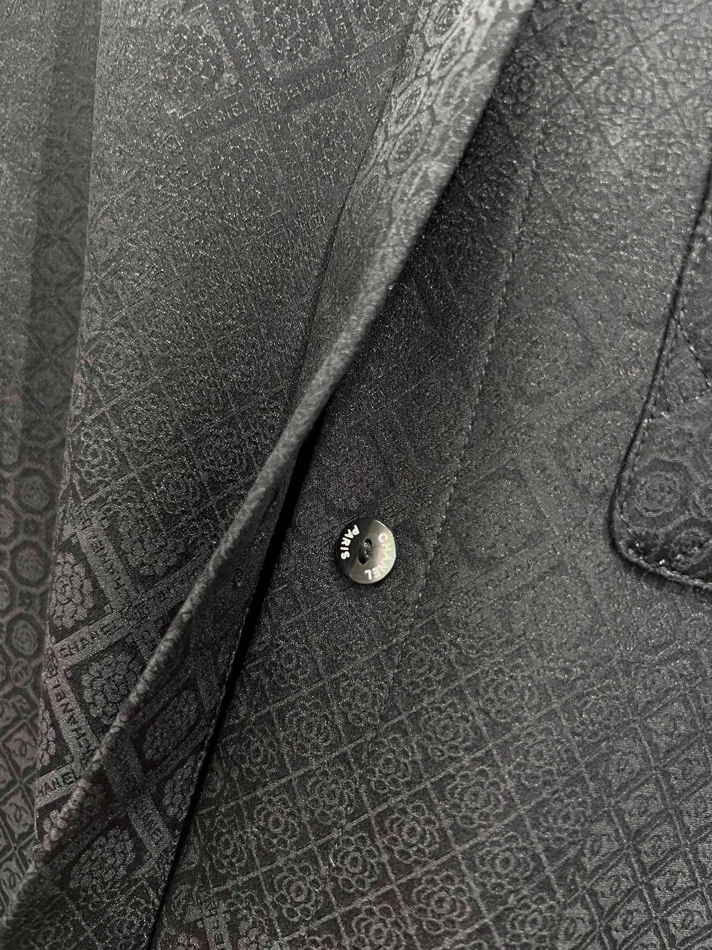 The texture of the double crepe silk material is different from that of ordinary 0.3mm. The texture is more vertical and glossy. It is comfortable to wear and easy to maintain. The long sleeved shirt is cut with a straight shoulder design. The simple and fashionable craftsmanship presents a delicate and full luster. The jacquard dark pattern is interspersed with diamond patterned camellia patterns and hidden letter logos on the placket. The flower shaped cuffs and diamond patterned pockets light up the classic design of Xiangjia, easily highlighting the intellectual and elegant style