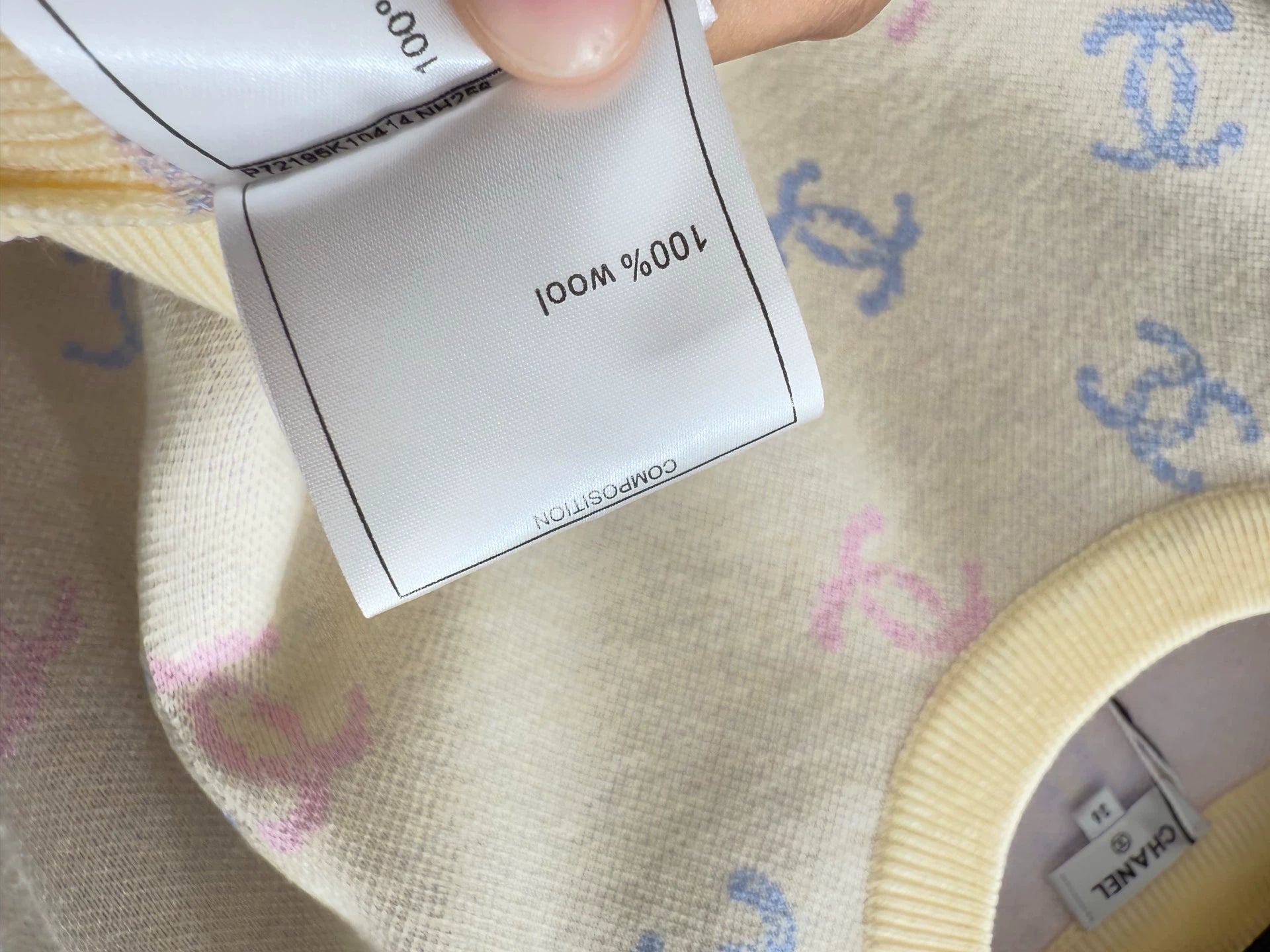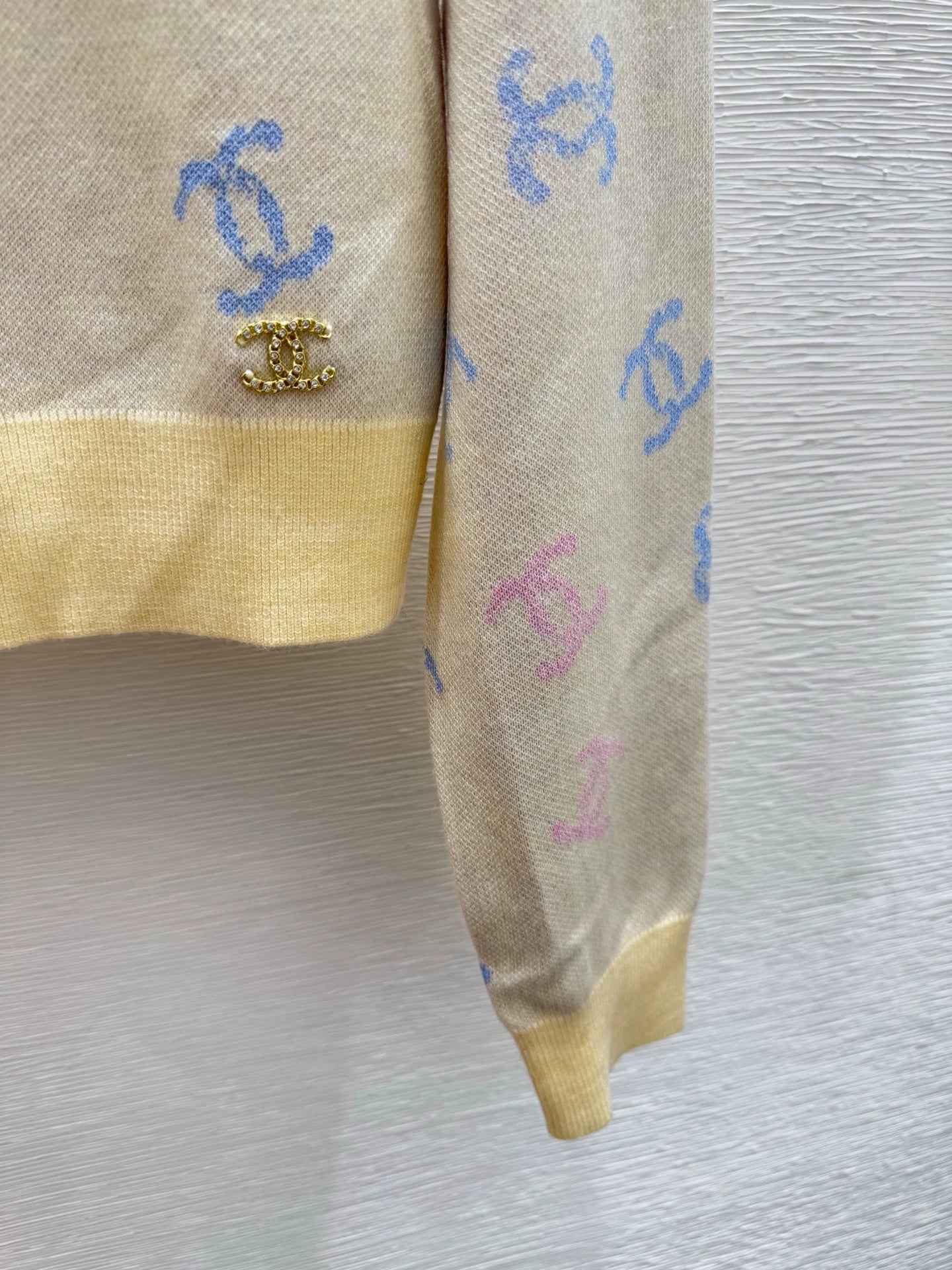Classic CC logo full print design on the chest, round neck pullover style. The fabric is made of 100% wool, soft and comfortable. The hem and cuffs are designed with the same color edging, simple and elegant. Suitable for wearing in spring and autumn seasons, it is versatile when paired with skirts or pants, easily showcasing fashion taste.