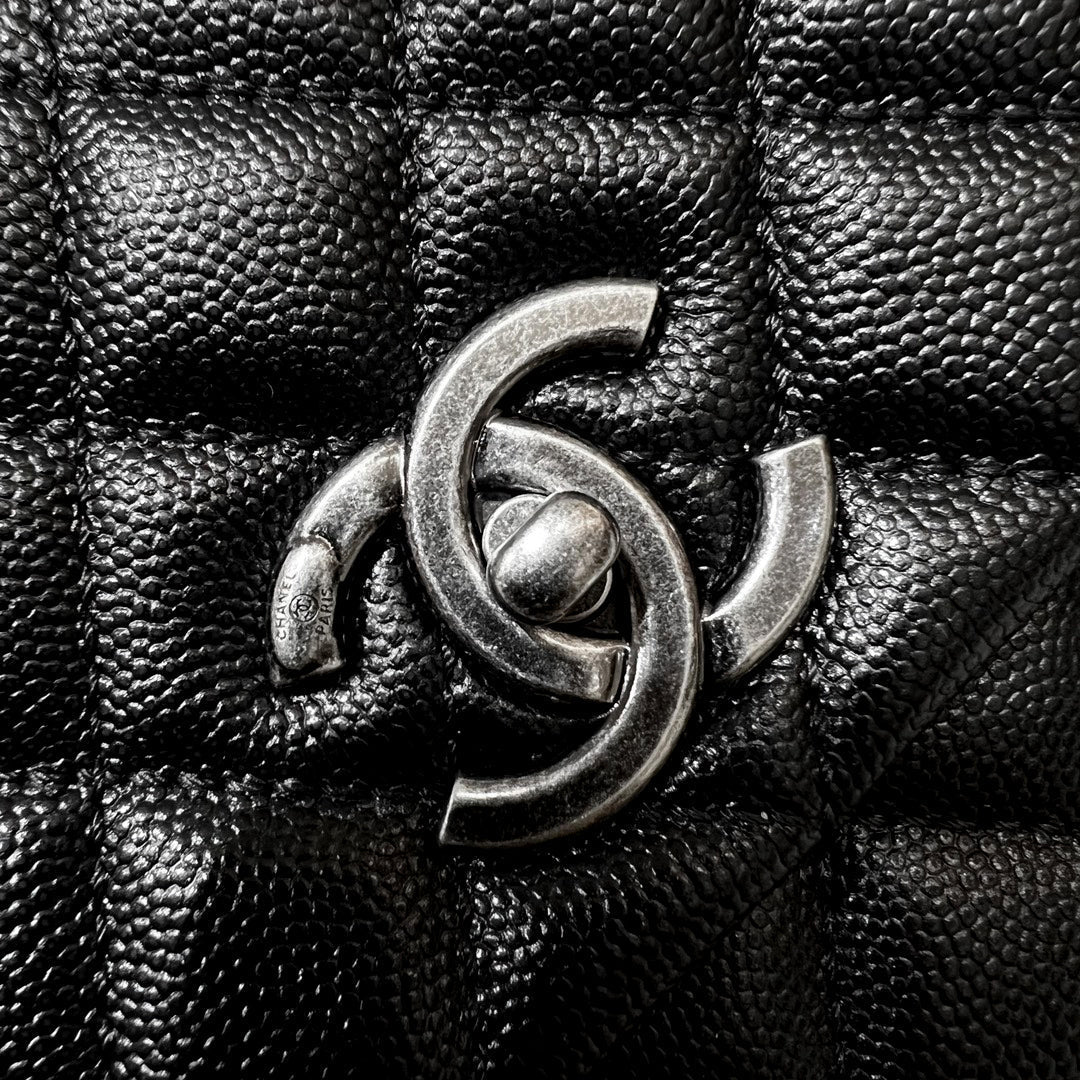 LARGE FLAP BAG WITH TOP HANDLE 29 Small Grained Calfskin Black