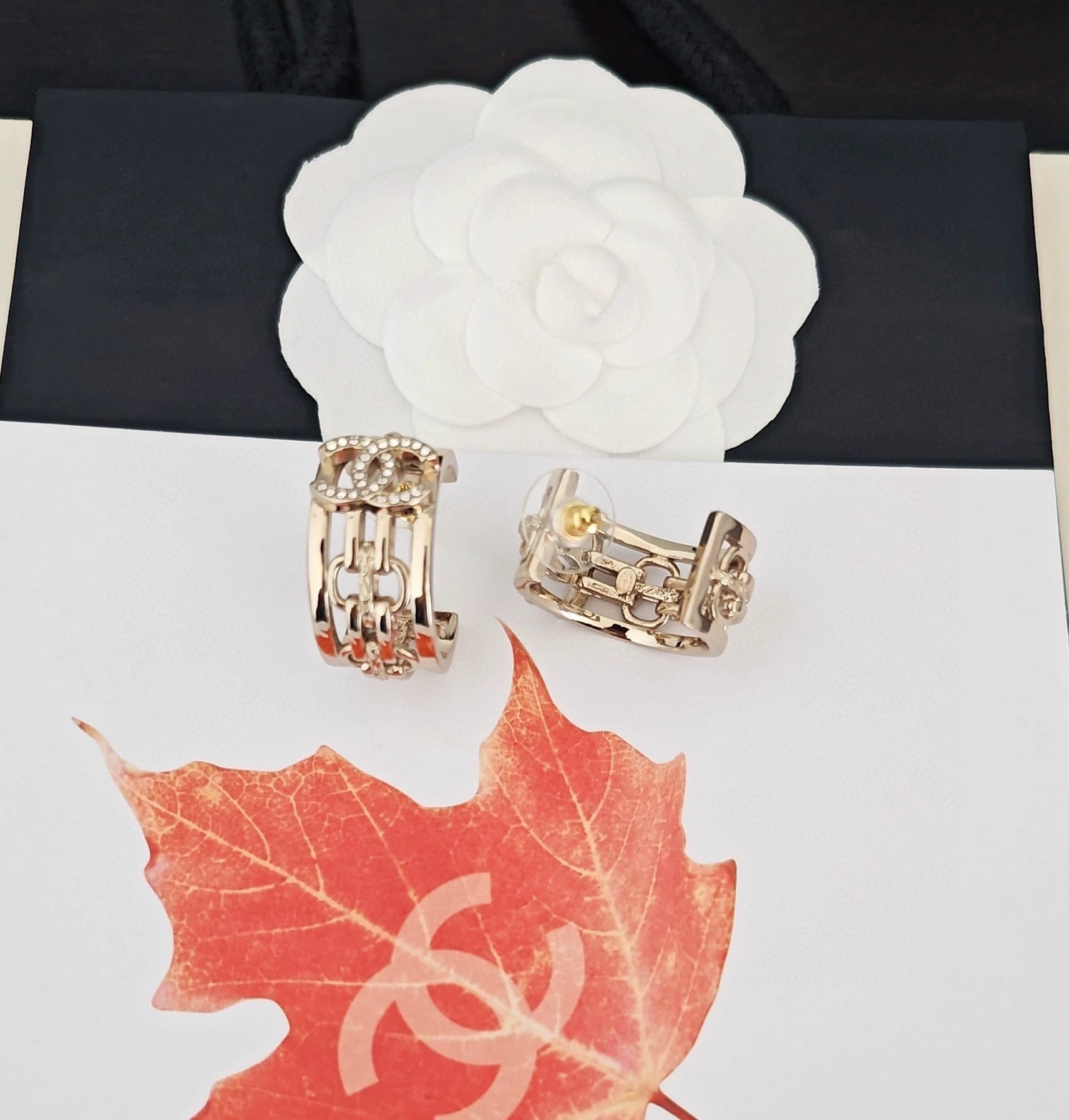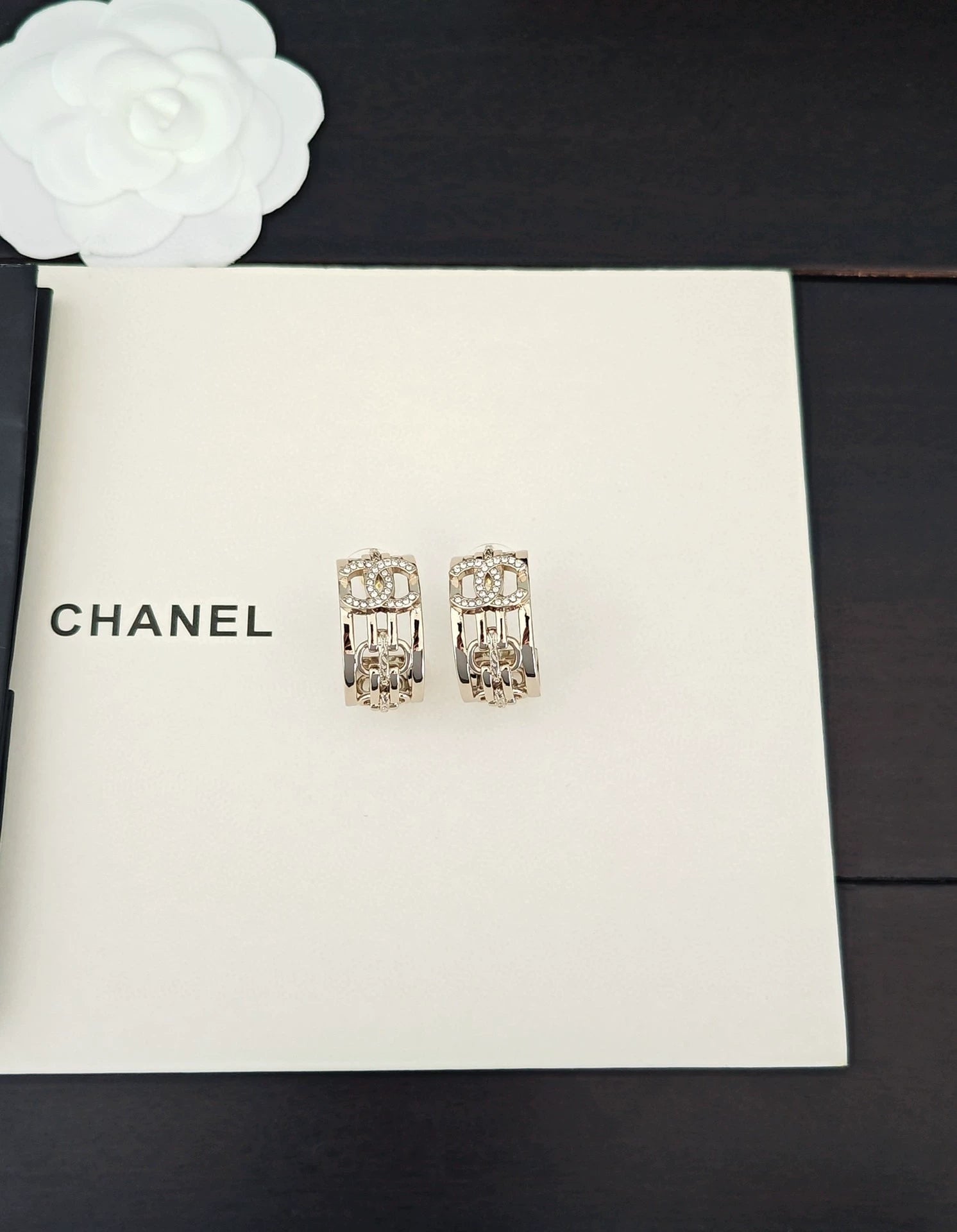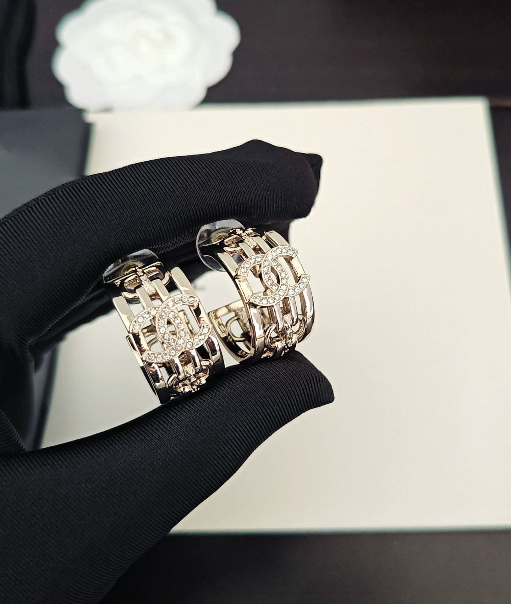 Light gold hollowed out design, classic CC logo adorned with diamonds