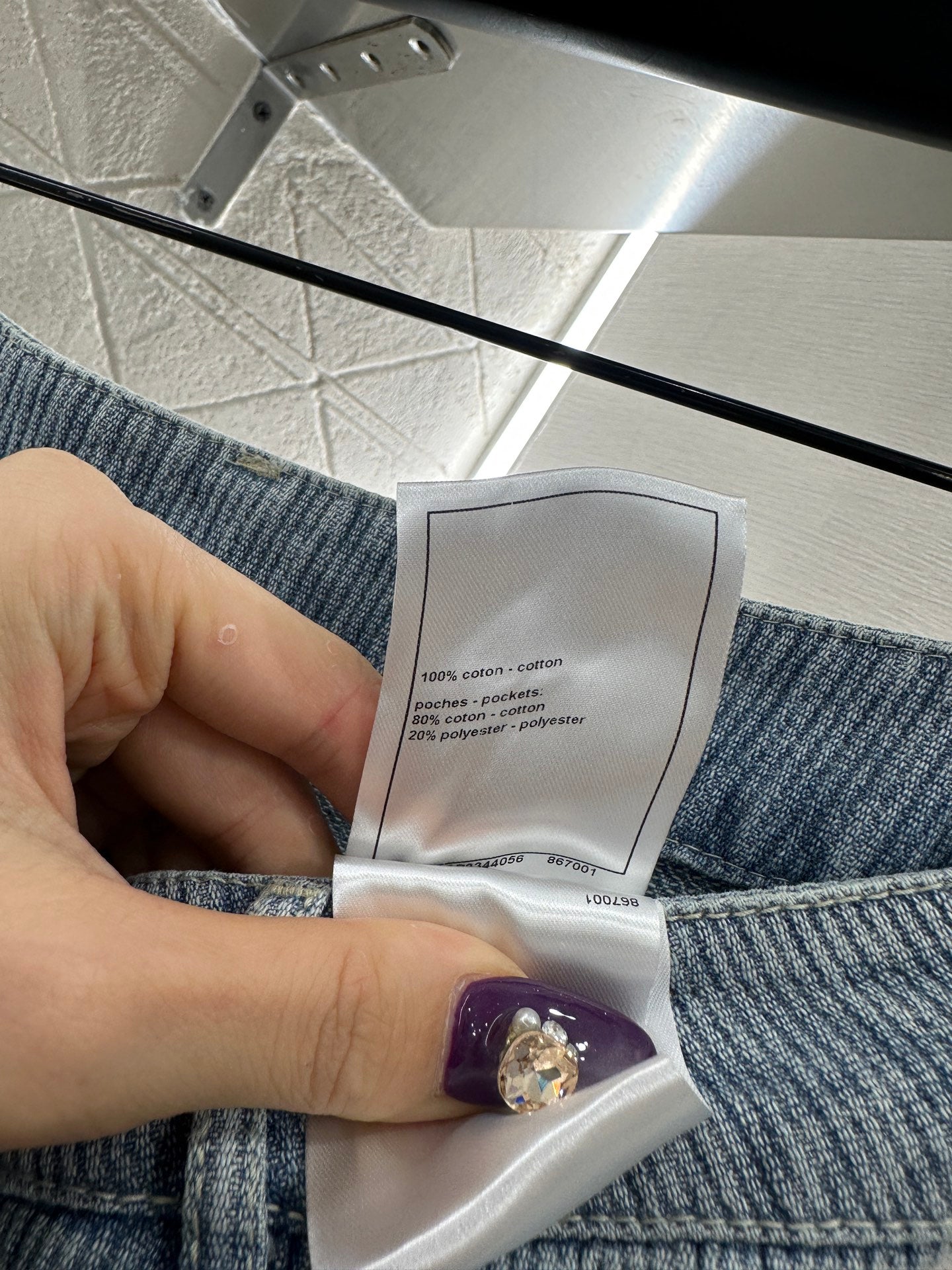 Twill cotton denim material, multiple washings, presenting a vertical texture, straight leg denim pants cut, symmetrical pocket basic version durable and high-end, leg center axis outlines the contour, highlighting the long legs straight, vertical pit stripe texture with single-sided knee double C logo, back buttock fabric matching letters, highlighting the brand style, creating a fashionable style, straight leg version, wearing inclusive leg shape, slender and slender, can be a god pants all year round, retro and fashionable