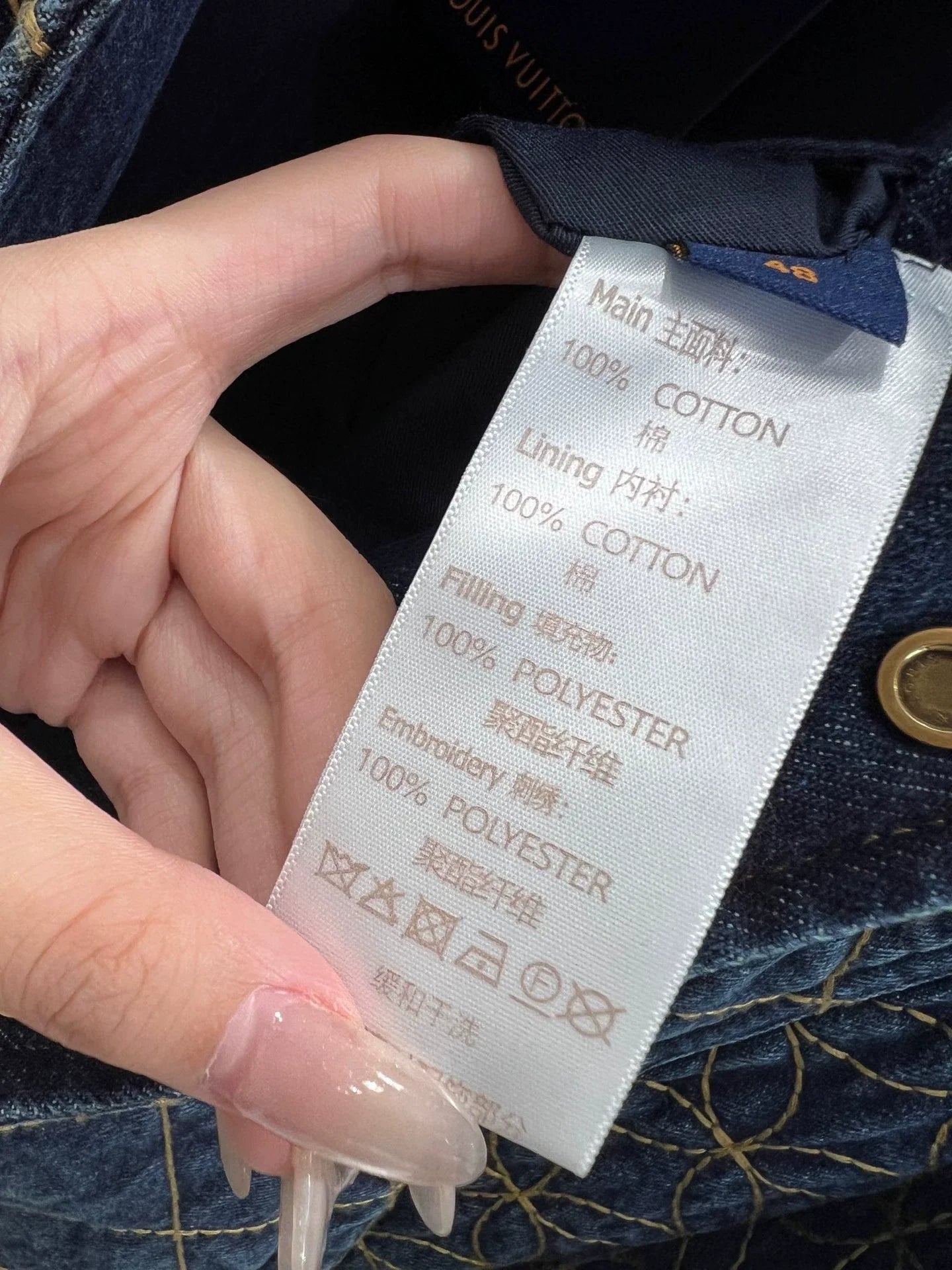 The distressed denim blue has a vintage filter, while the all-over gold geometric embroidery mixed with subtle logo patterns and the rough texture are full of detail. It exudes understated luxury with every movement. The classic lapel and loose fit can be worn as an outer layer to create a powerful look, or buttoned up for a sleek city boy style.