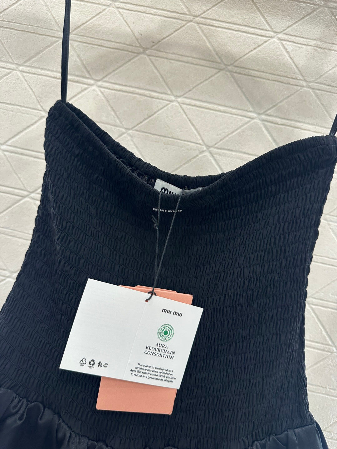 With its lustrous texture and high-end appearance, this strapless dress features a strapless design and a logo embellishment on the chest, adding a touch of sophistication. The bodice is ruffled for a stretchy and flattering fit, while the layered lace hem showcases the brand's sweet style. This versatile piece can be worn as a top or a dress, perfect for layering in autumn and winter for a chic and youthful look.