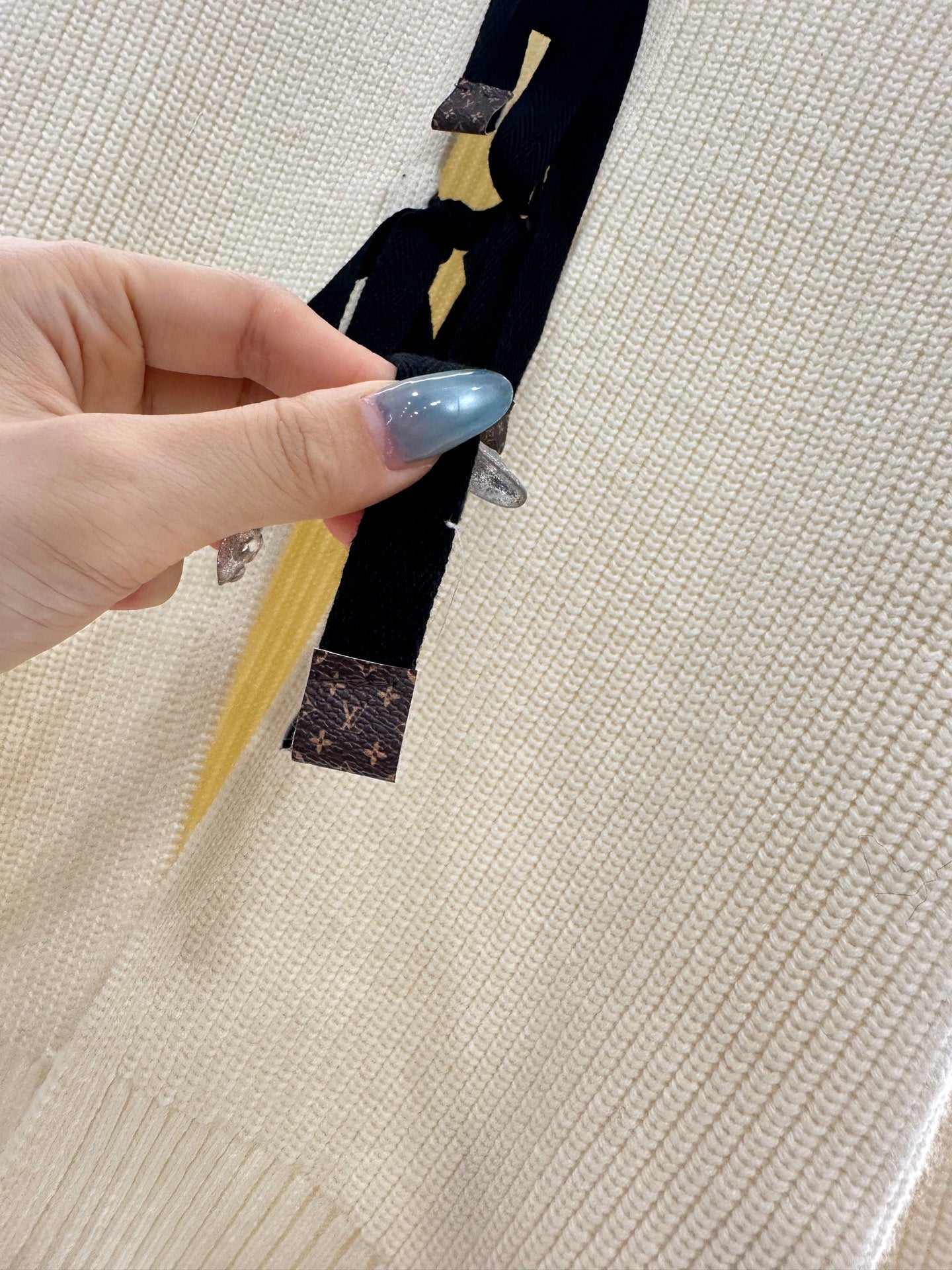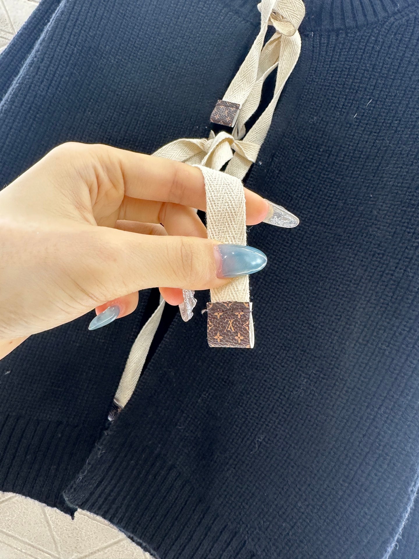 Woolen yarn weaving, delicate texture, comfortable to wear, round neck knitted cardigan cut, large body flat needle plain color simple and more prominent tone, wrapped with elastic threads to outline and tighten, matched with elastic fabric, conforms to the body shape and looks slimmer. The opening bow tie is embellished with leather labels at the end, and the four leaf clover letters display the brand tone. The versatile style does not choose age or skin color, making it more relaxed and fashionable on the upper body.