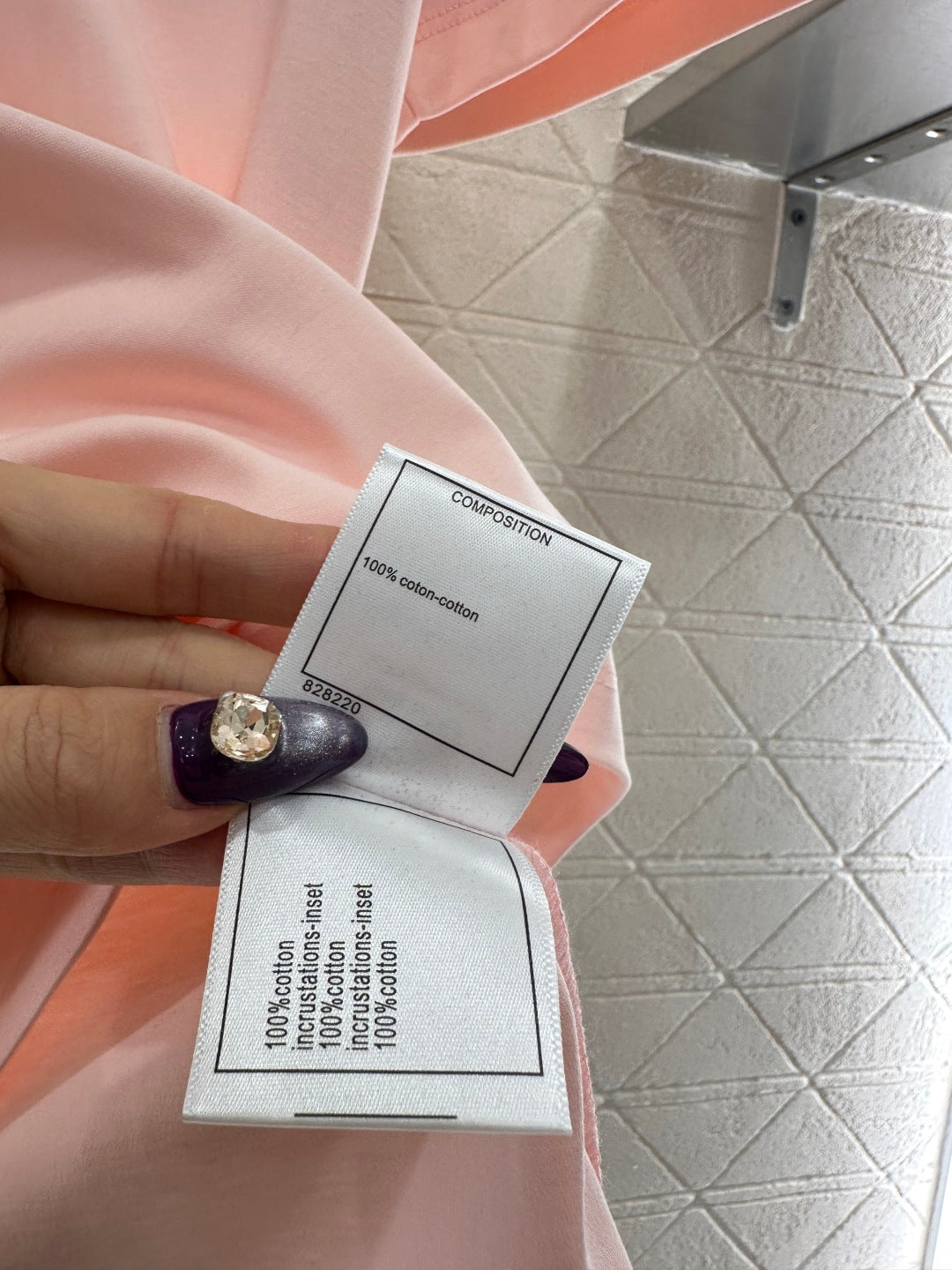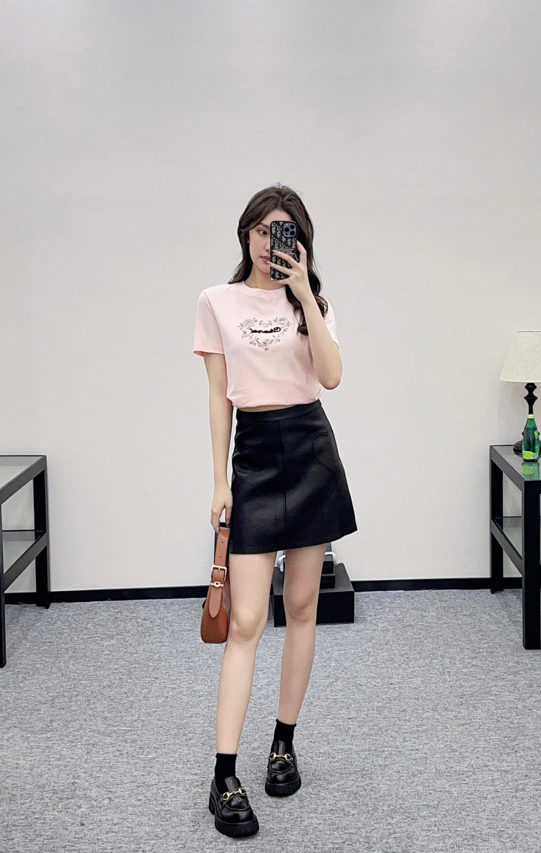 Made of all cotton material, soft and skin friendly, comfortable and stylish. The regular short sleeved version features a heart-shaped border pattern outlined with plant embroidery elements on the chest, with a central nail bead forming the Xiangjia letter logo. The layers are rich, and the style is elegant. The regular version accommodates the body shape, making it easy to control for daily travel or gatherings