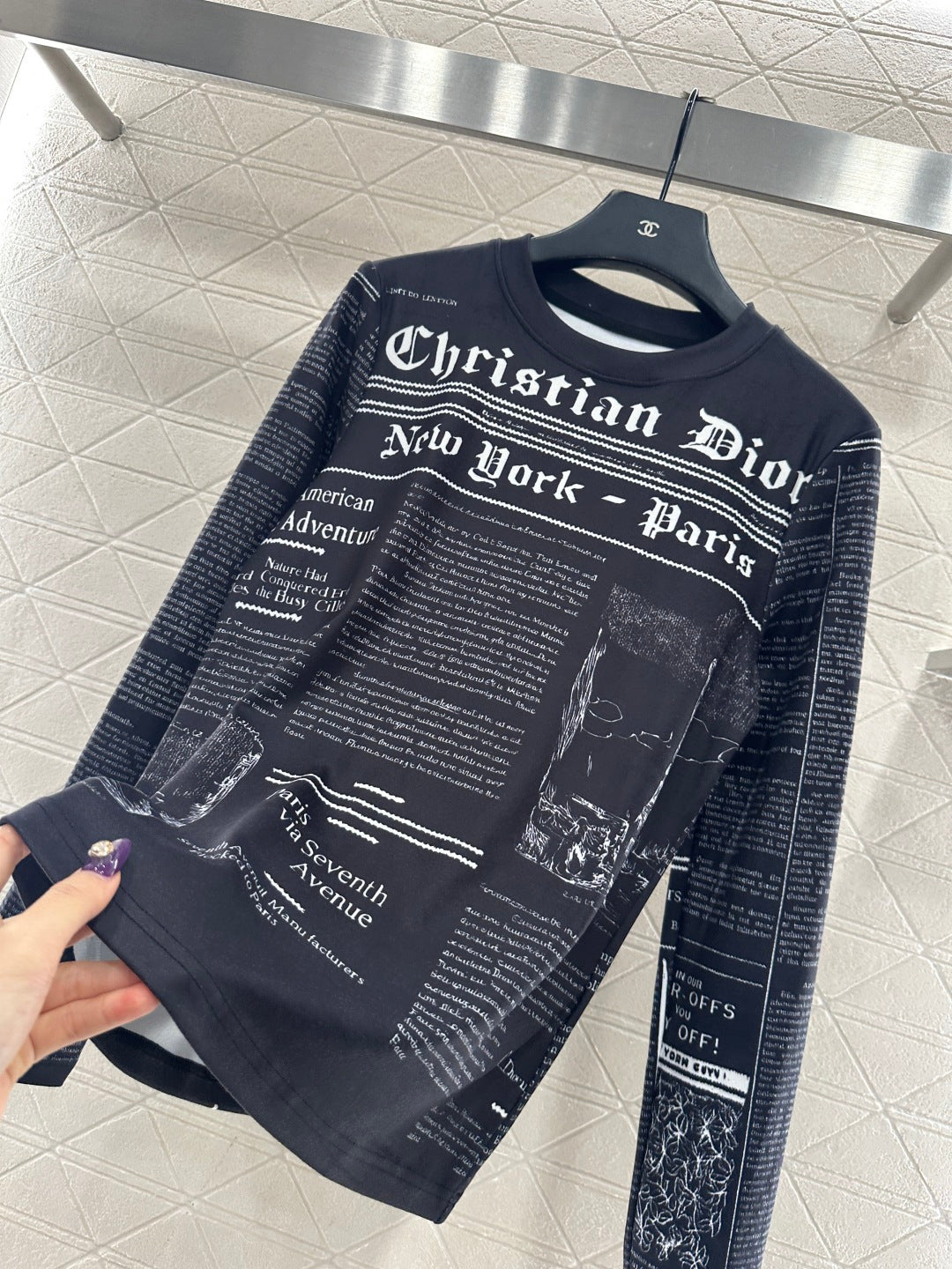 Made of suede material, soft and comfortable, full of elasticity, round collar with long sleeves as the base cut, threaded collar with edging, printed with floral letters and logos on top ➕ Hand drawn street scenes and text patterns, fully covered to present a visual effect of a magazine, breaking away from boredom and monotony. The conventional cut fits the body shape, making the outfit look slim and high-end, showcasing versatility. It is a must-have for daily base in autumn and winter, fashionable and stylish