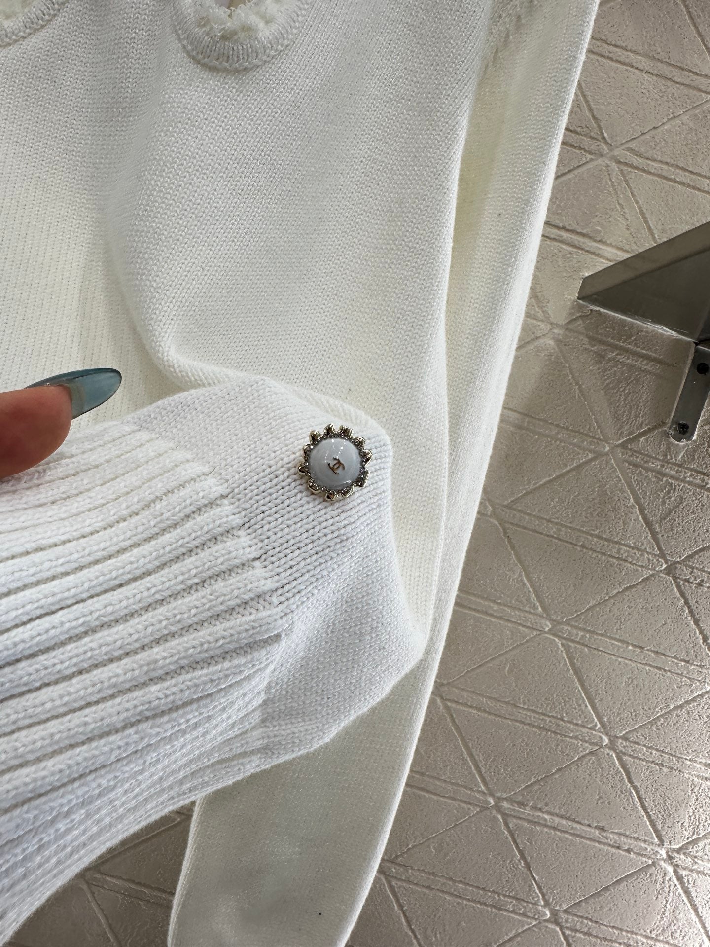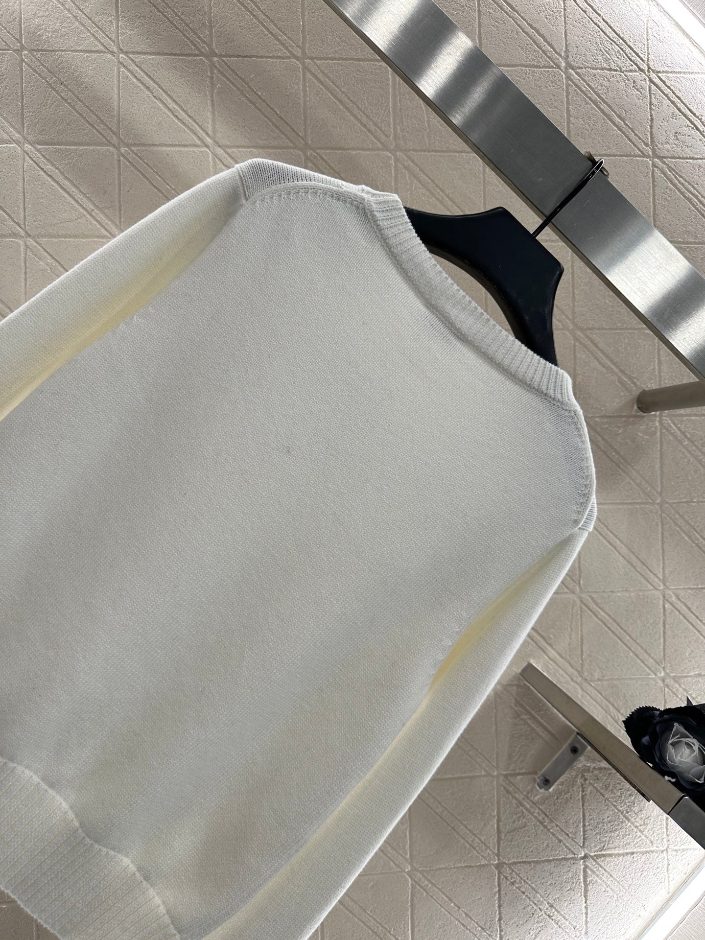 Crafted from soft and breathable wool yarn, this classic crewneck knitted sweater features an elasticated design that creates a slimming visual effect. The cut-out detailing revives the bow effect, while the interplay of black and white colors at the chest, along with frayed edges, adds dimension. The double C-round buttons at the hem echo the brand's positioning, exuding a chic and stylish vibe. Perfect for both standalone wear and as an inner layer, it delivers effortless fashion appeal.