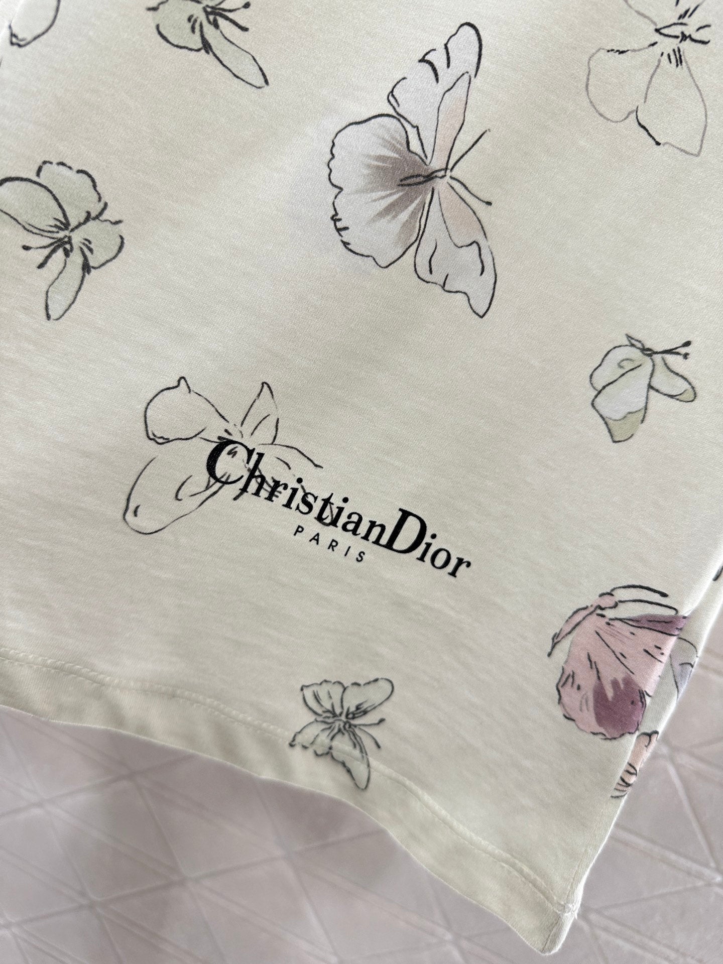 Made of all cotton material, with a premium texture, soft and comfortable. The regular short sleeved T-shirt is cut using heavy cotton, which has a slight elasticity and presents a slimming visual effect. The body is colorful and multi posture 🦋 Decorated with natural elements such as butterflies, echoing the letter logo at the hem, in line with the brand's tone, the outfit exudes a sweet and youthful vibe