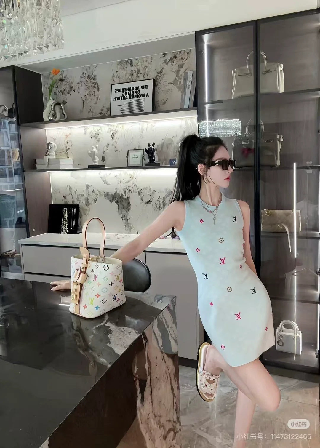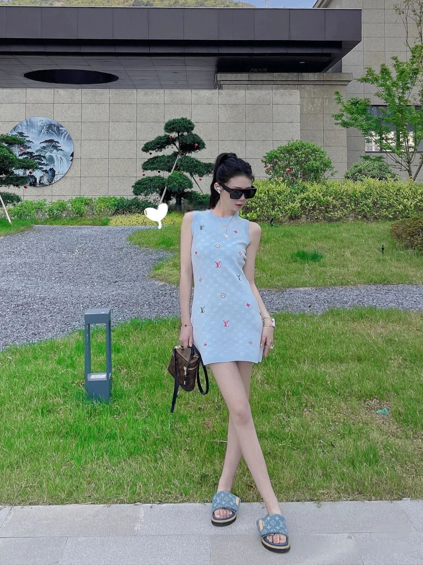 25 New Letter Logo Embroidery Concave and Concave Textured Vest Dress
