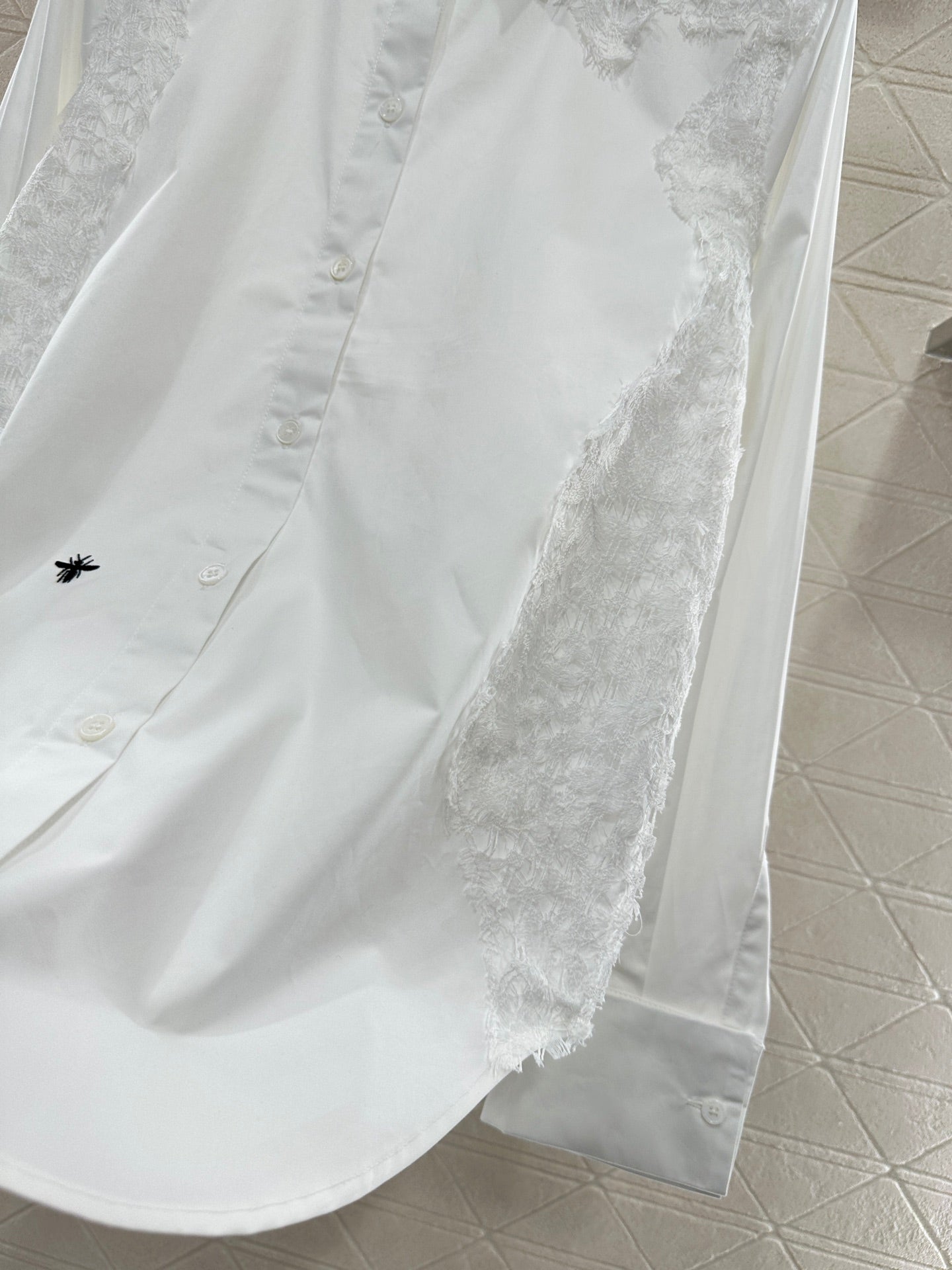 Made of all cotton material, with a glossy texture and comfortable breathability, this long sleeved shirt has a sleek and loose silhouette cut. The large body is available in black and white plain colors, making it versatile and not picky about atmosphere or age. Irregular lace is embellished around the edges, paired with a cute bee shape, to reduce the aging temperament.
