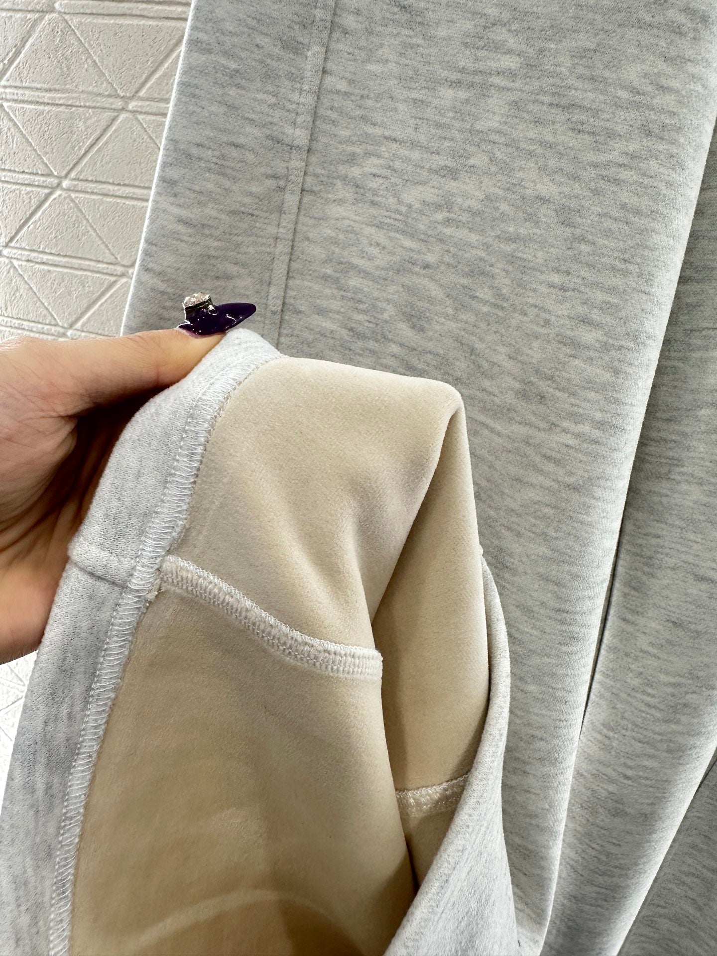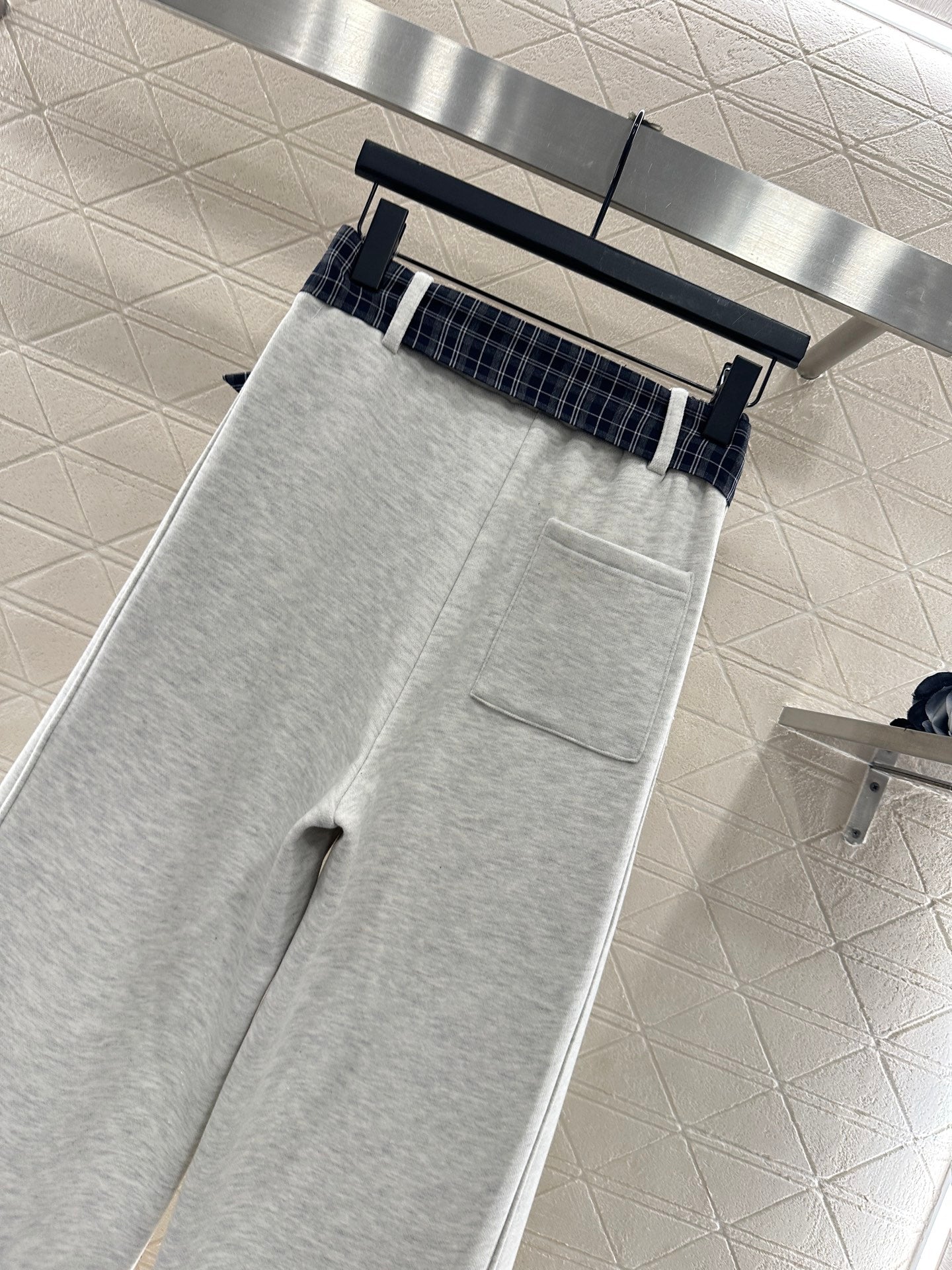 Made of brushed material, the fabric is soft and comfortable, with short brushed fur inside for warmth and comfort. It is suitable for autumn and winter, high waisted and wide leg pants. The checkered waistband is used to decorate the waist, creating a splicing effect. Combined with the bow shape, the style is playful and fashionable. The iconic letter logo on the waist instantly enhances the brand's style, making it easy to reduce age. Paired with curved knife wide leg pants, it accommodates and decorates the leg shape while wearing a full high street fashionable style