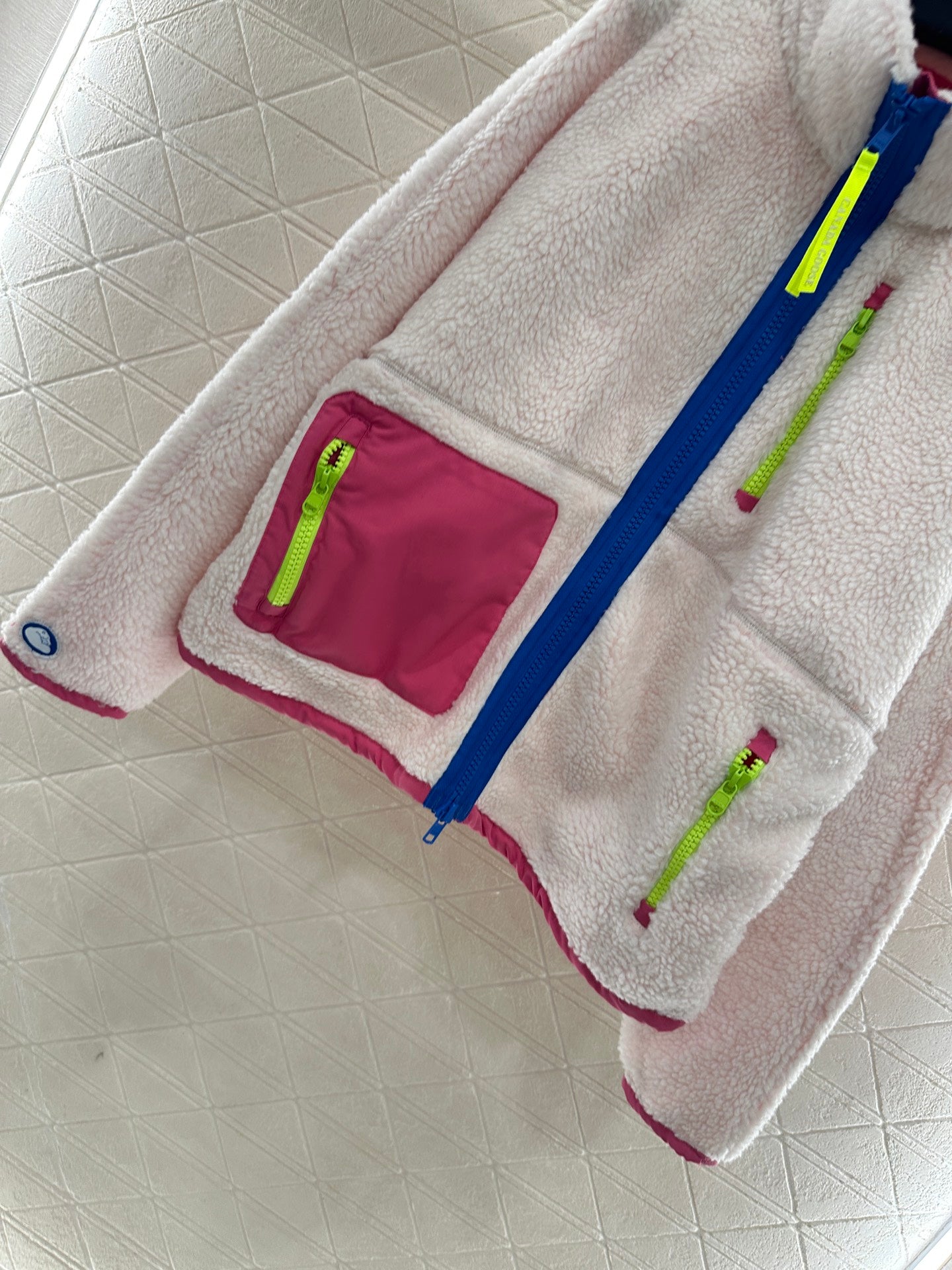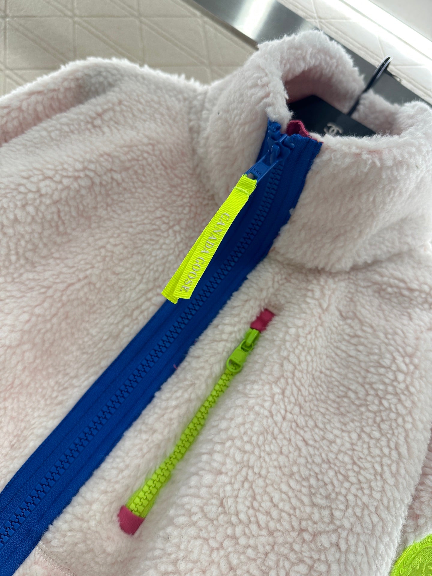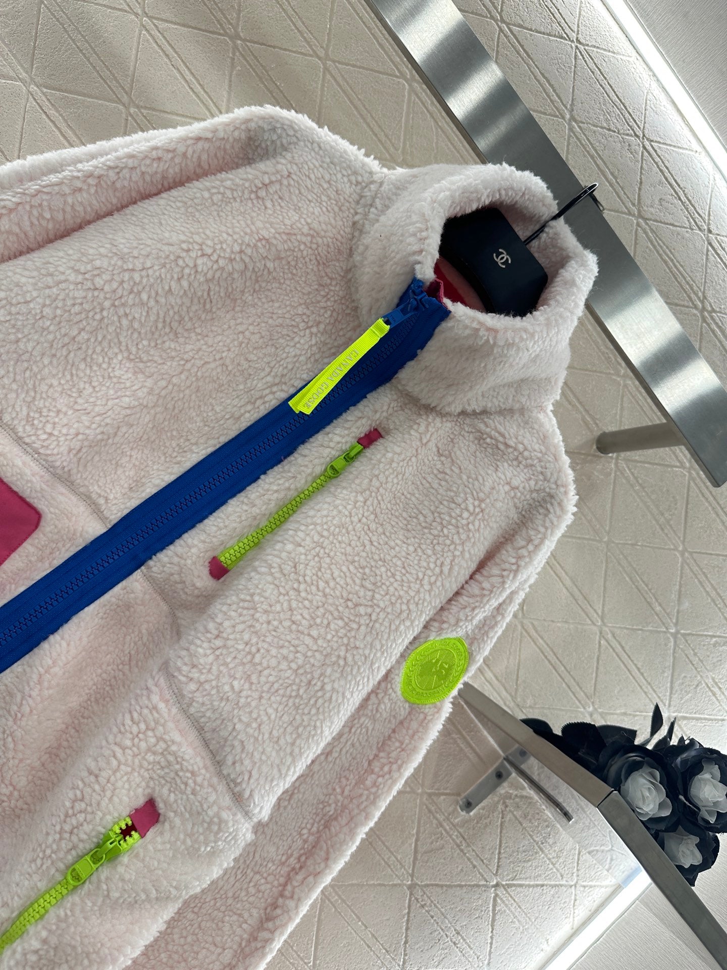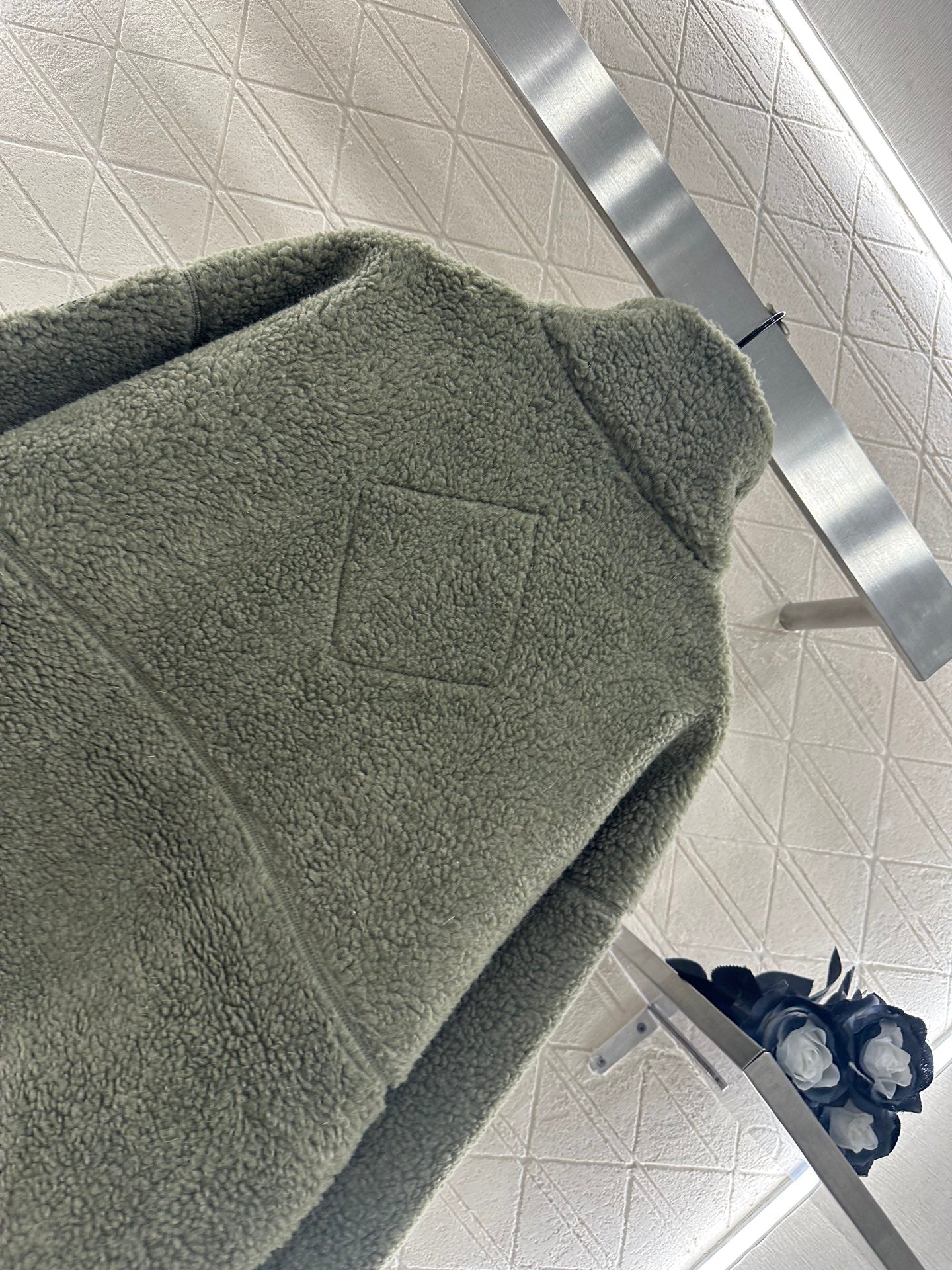 The whole body is decorated with teddy plush material, which is soft and comfortable in texture, fashionable and western-style, with a stand up collar jacket cut and a front zipper ➕ Unilateral asymmetric nylon three-dimensional pocket ➕ Embroidered logo on the sleeve side, showcasing the brand's style. The whole body is wrapped with the same color scheme, and the colorful contrasting splicing outlines the artistic sense, fully demonstrating the quality and style. The overall silhouette is upright, with a furry texture and a retro style. It comes in five colors and is the preferred choice for autumn and winter wear. It can be stacked and worn at will.