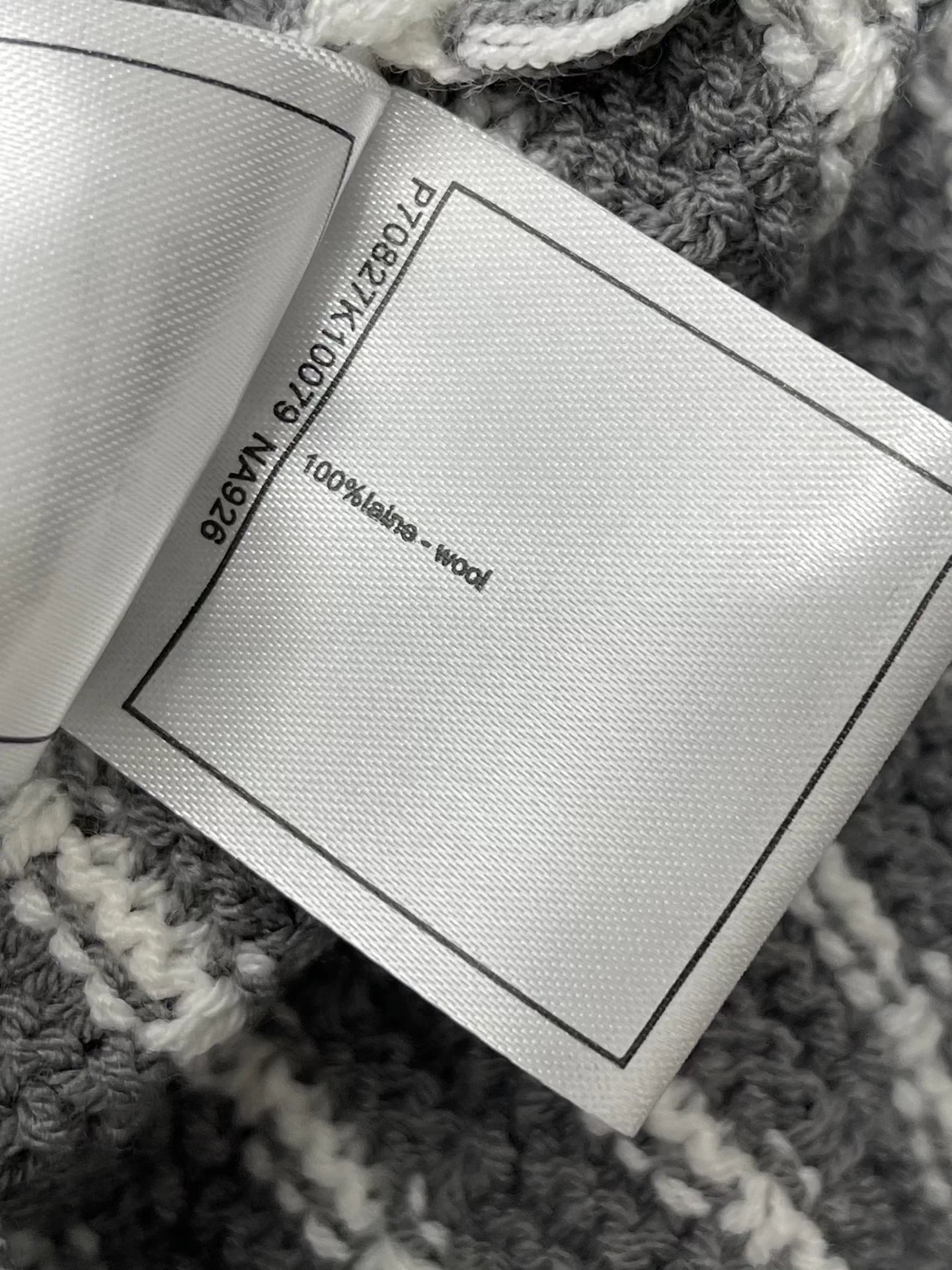 Woolen yarn weaving, soft and delicate, comfortable texture, V-neck cardigan cut, brooch on the upper edge of the front pocket, two-color horizontal stripe contrasting design throughout the body, rich visual effect, adding artistic sense, showing a simple and high-end upper body
