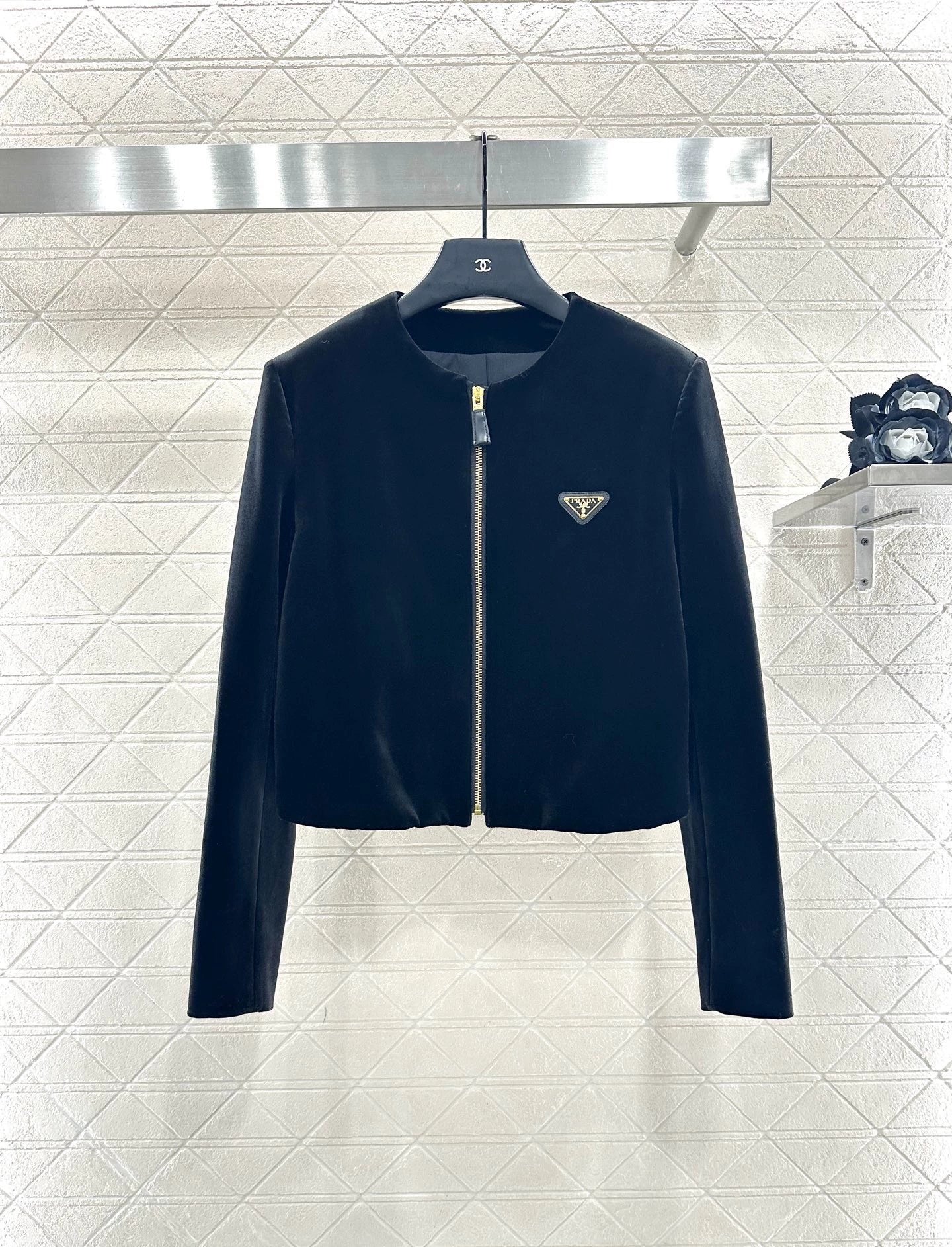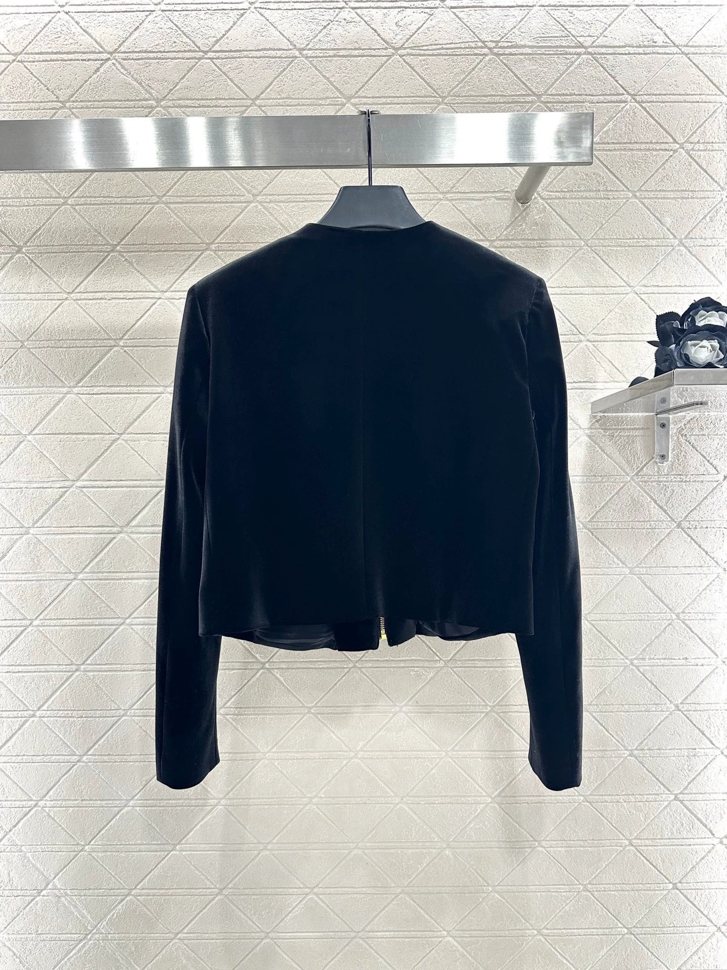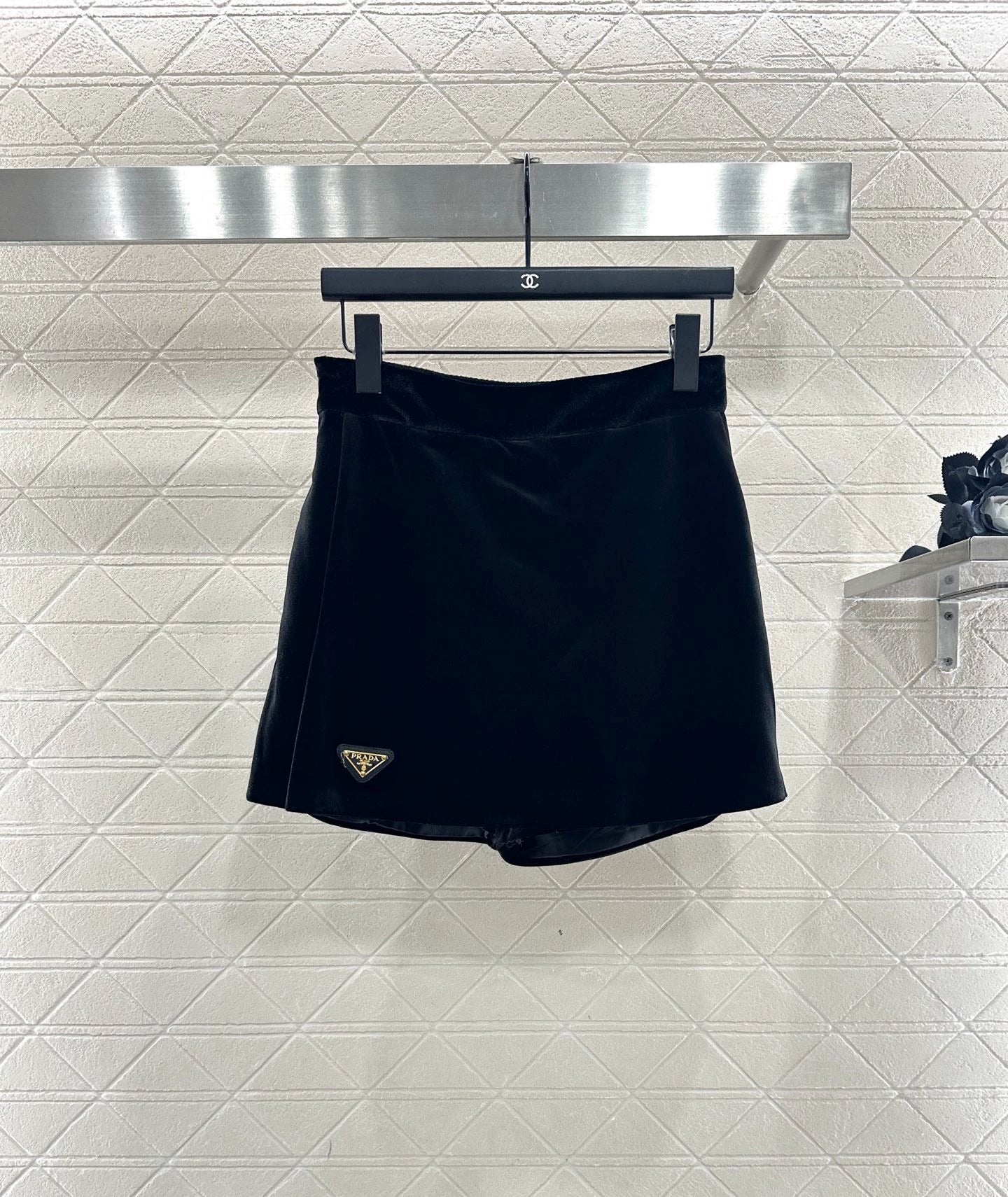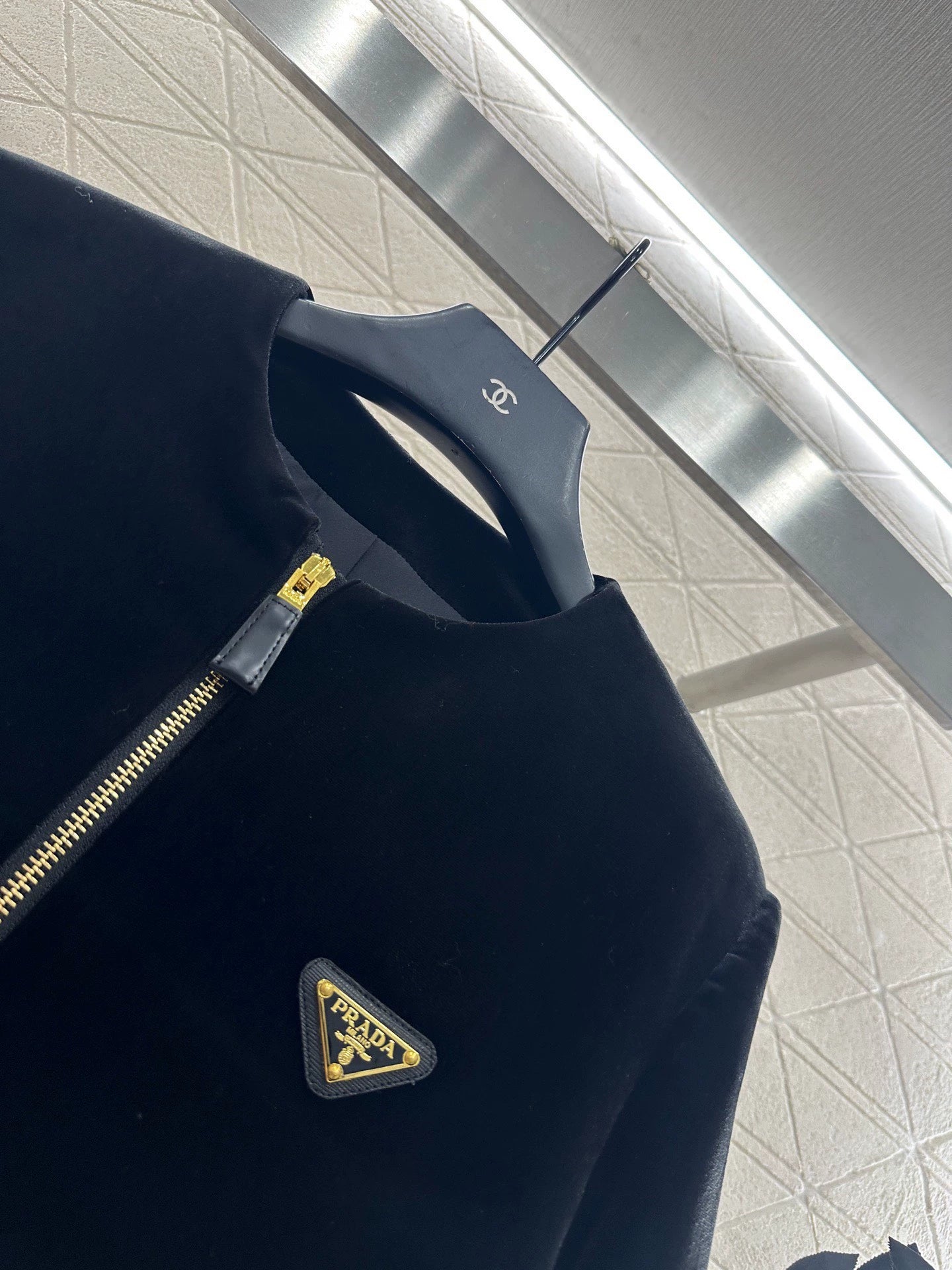 Velvet material, glossy texture, skin friendly and comfortable. The suit jacket is tailored with a golden zipper and a moderate length, creating a relaxed retro effect. The front shoulder style is elegant and intellectual, and the triangular metal logo on the chest lights up the details. Paired with the same series of skirts and pants, the one-piece skirt design covers the front, creating a luxurious style without the need for embellishments. The outfit is youthful and playful, and when paired separately, it is fashionable and eye-catching