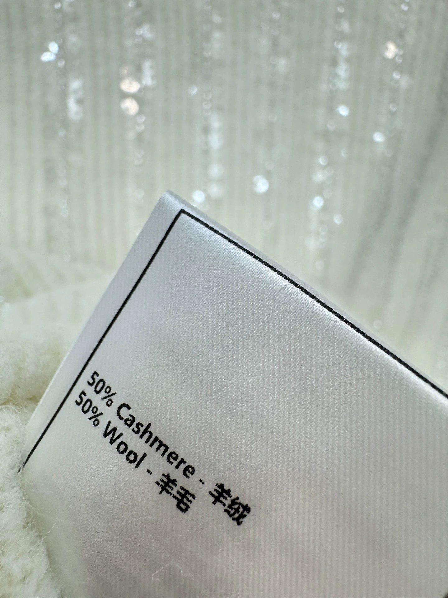 Exquisite silver buttons paired with vertical stripe texture and sequin embellishment design showcase an elegant temperament. The fabric is made of high-quality cashmere blend, soft and comfortable, suitable for wearing in spring and autumn seasons