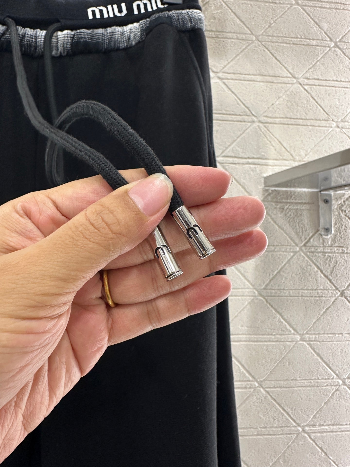 Made of nylon material, the fabric is soft and comfortable, with delicate luster. The high waisted drawstring wide leg pants are designed with three-dimensional cutting and knee position stitching to create a curved knife style pants. The upper body appears slim and the legs are long, with a relaxed and fashionable style. Paired with the iconic embroidered letter logo on the elastic waistband, the brand's style instantly elevates, exuding a high street fashion vibe. A versatile pair of pants for all seasons, suitable for vacation, dating, and daily life 💯。