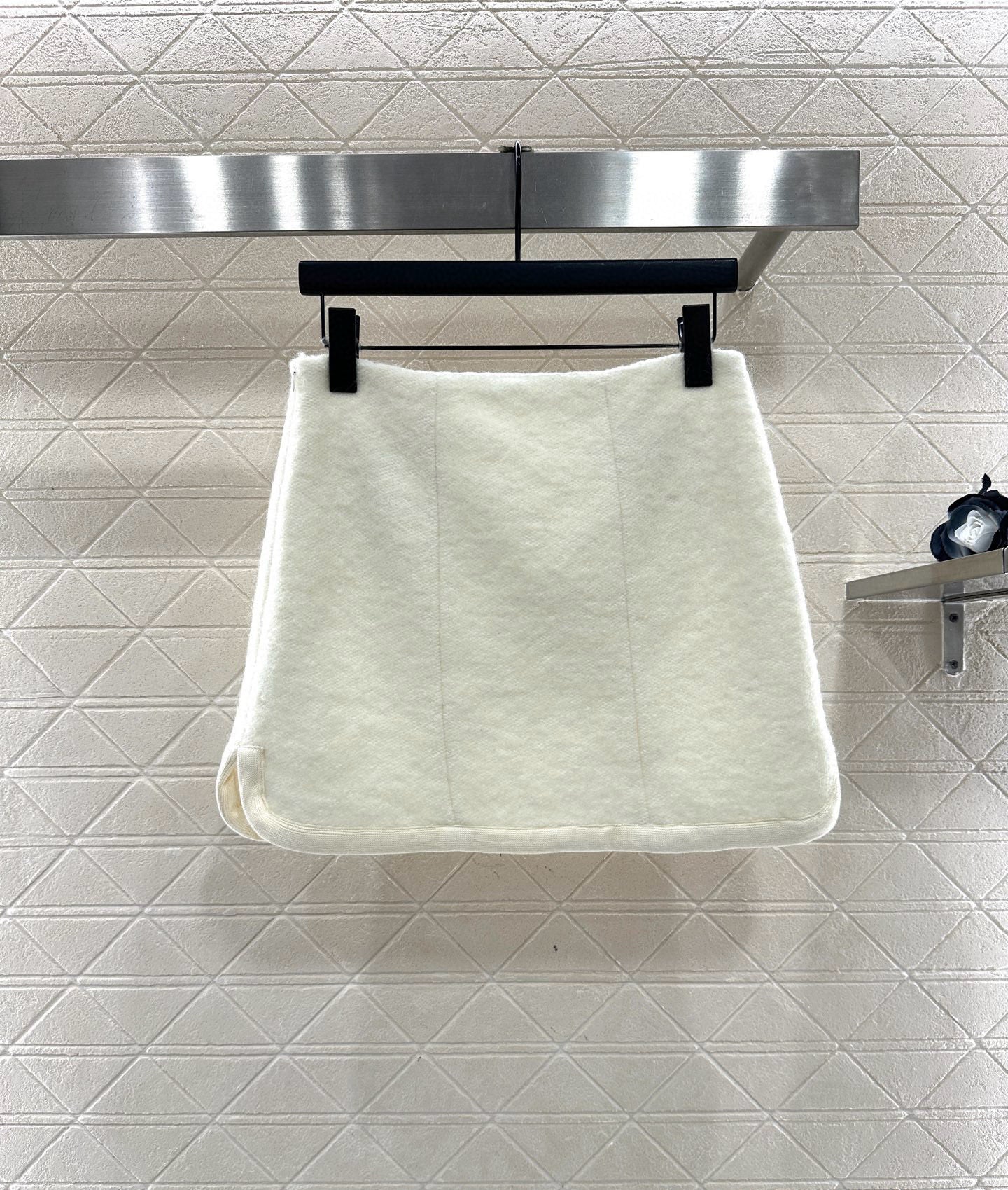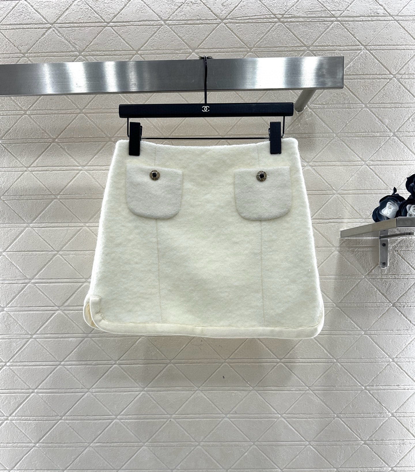 The texture is obvious and the appearance is high-end. The double breasted round neck dress jacket is designed with black and silver color buttons and adjustable placket. The diagonal cut hem is decorated with a bow, highlighting the brand's tone. It is paired with the same series of double pocket straight tube half length skirts, and the edging echoes the upper body jacket. The milky white outline wrapping is more exquisite, matched with three-dimensional cutting, and the outfit is stylish. The set of upper body temperament does not lose its fashion sense, and can be easily controlled for daily commuting