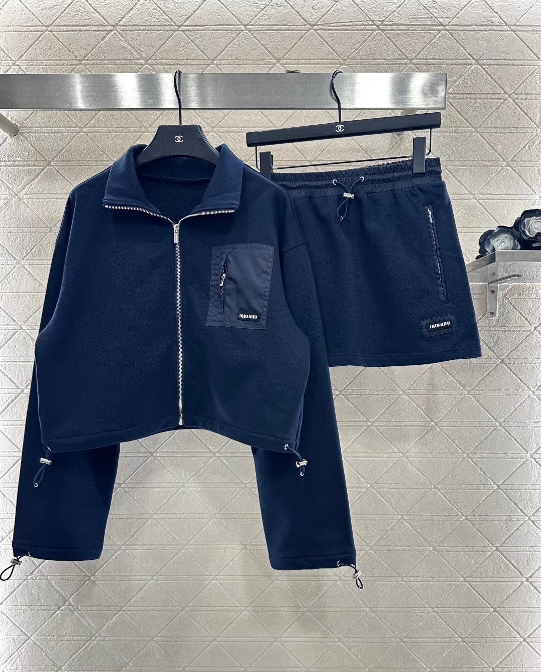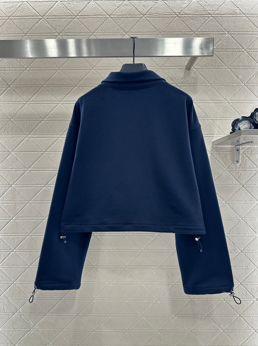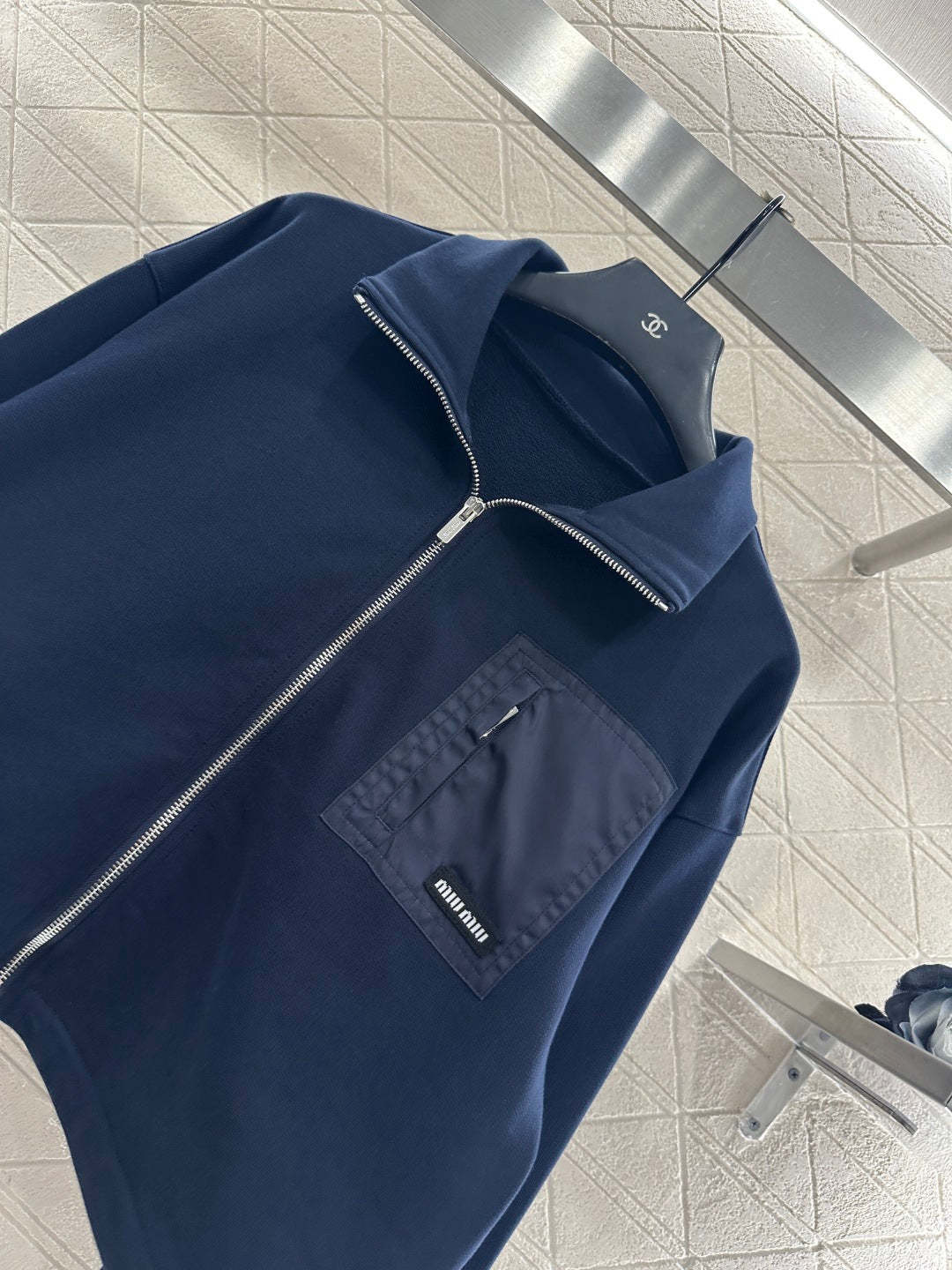 The twill all cotton material has a glossy texture and a strong sense of drape. The zipper jacket jacket has a loose zipper lapel and stand up collar design. The nylon treatment of the chest pocket is embellished with letter logos, echoing the brand positioning. The drawstring and plug-in pocket enhance practicality, and the exquisite and durable details highlight the brand style. It is paired with a high waisted workwear short skirt of the same series. The zipper letter details on the side pocket echo up and down, presenting a casual college style and fashionable and stylish dressing