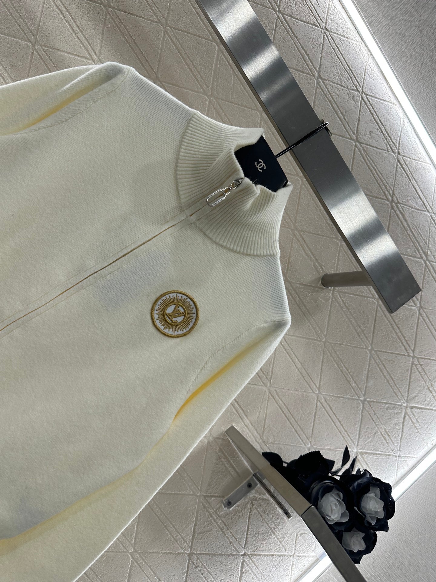 Woolen yarn weaving, premium texture, comfortable and soft, zipper knitted jacket cut, unique details of threaded groove on the collar, conventional open zipper design, matched with three-dimensional relief embroidered letter logo on the chest, highlighting the brand style, slim fit version, creating a slimming and fashionable outfit, enhancing the texture of details, the version is not picky about body shape and age, simple and versatile for daily use