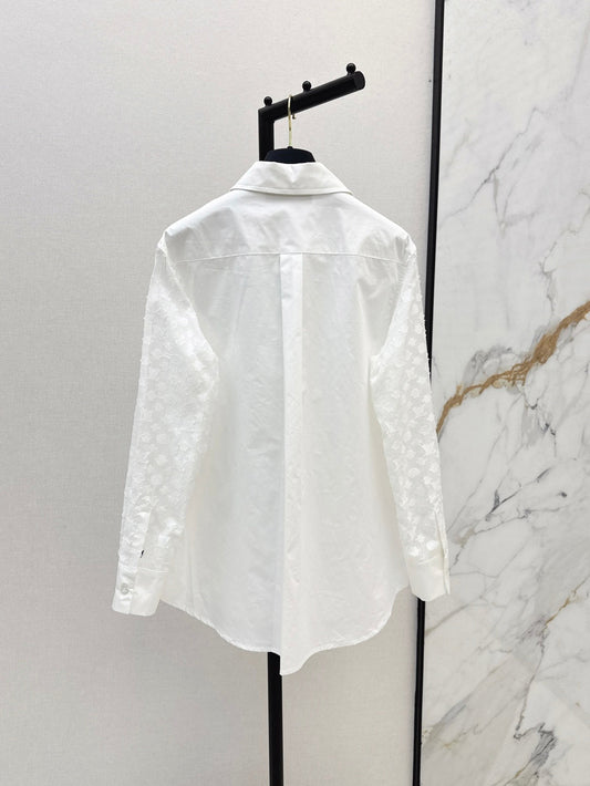 Fashionable Pearlescent Jacquard Fabric Letter Embroidery Shirt