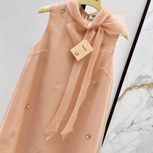Sweetheart Neckline Dress with Bow-Tie Ribbon & Crystal Embellishments