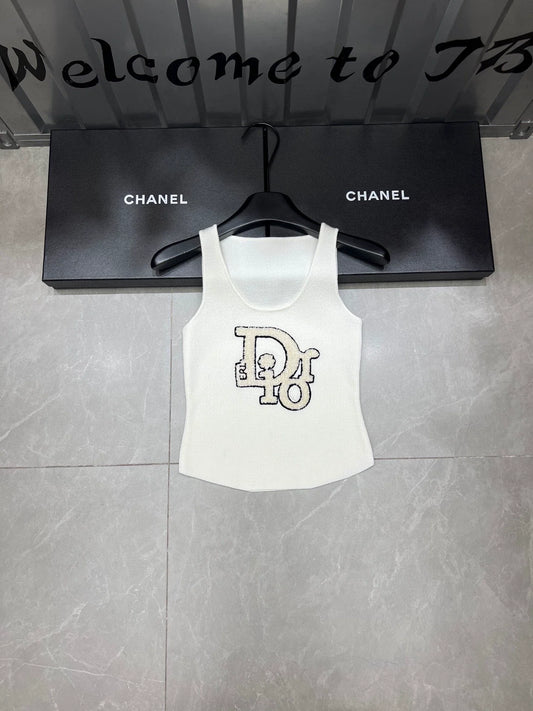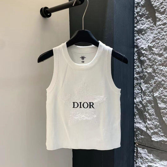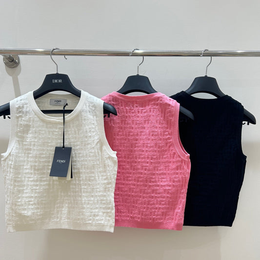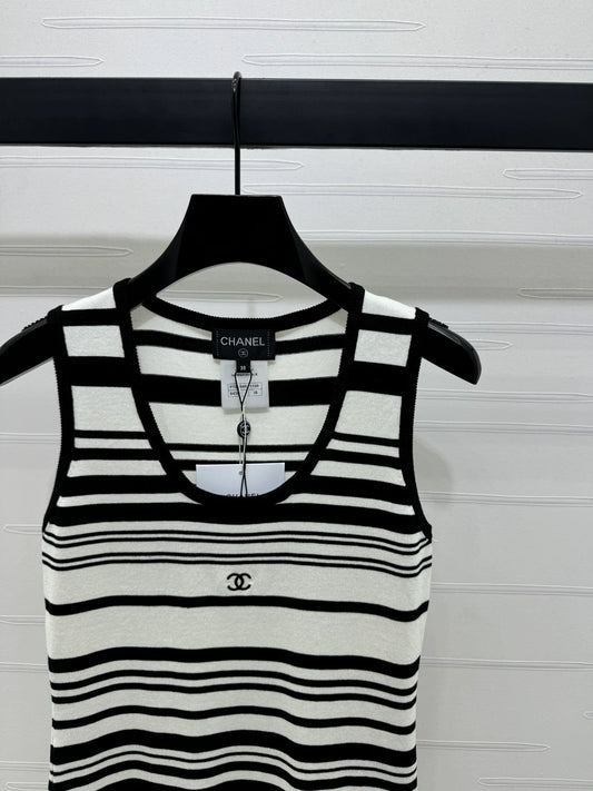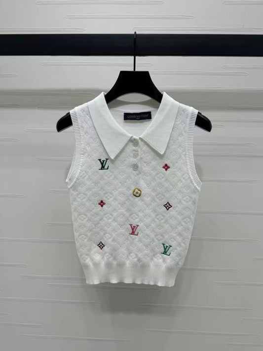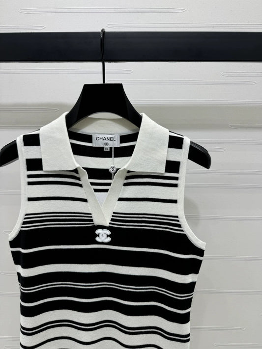 25 Spring and Summer New Contrast Stripe Embroidery Knitted Vest