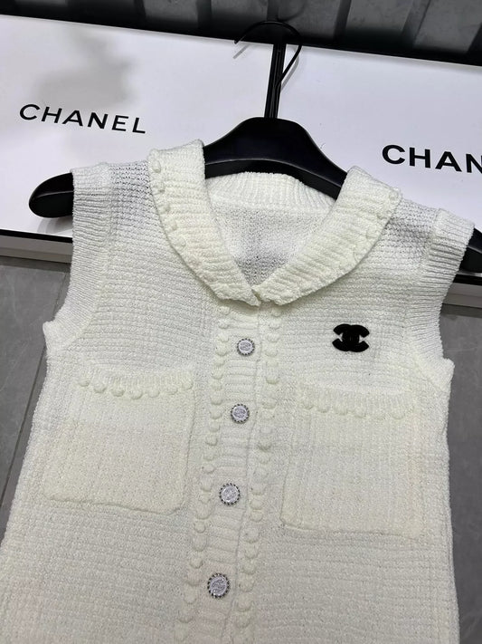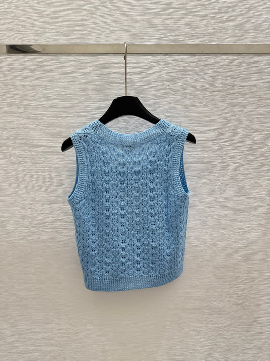 2025 Spring and Summer New Round Neck Crochet Pocket Knitted Sleeveless Vest
