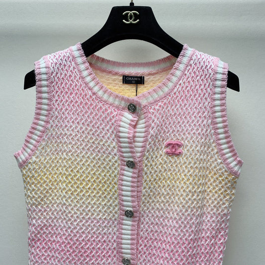25SS Spring and Summer New Round Neck Colorblock Button Cardigan Vest