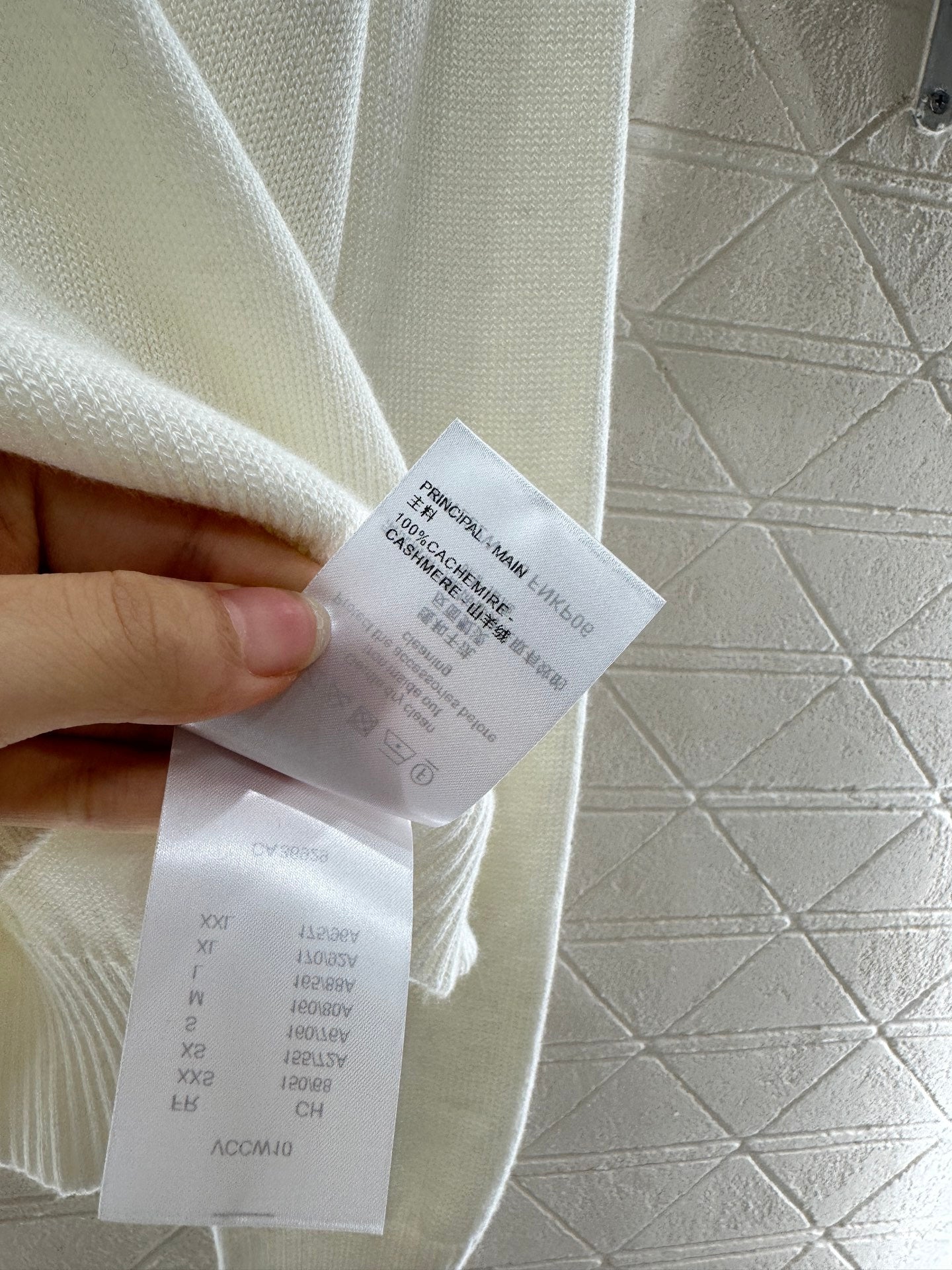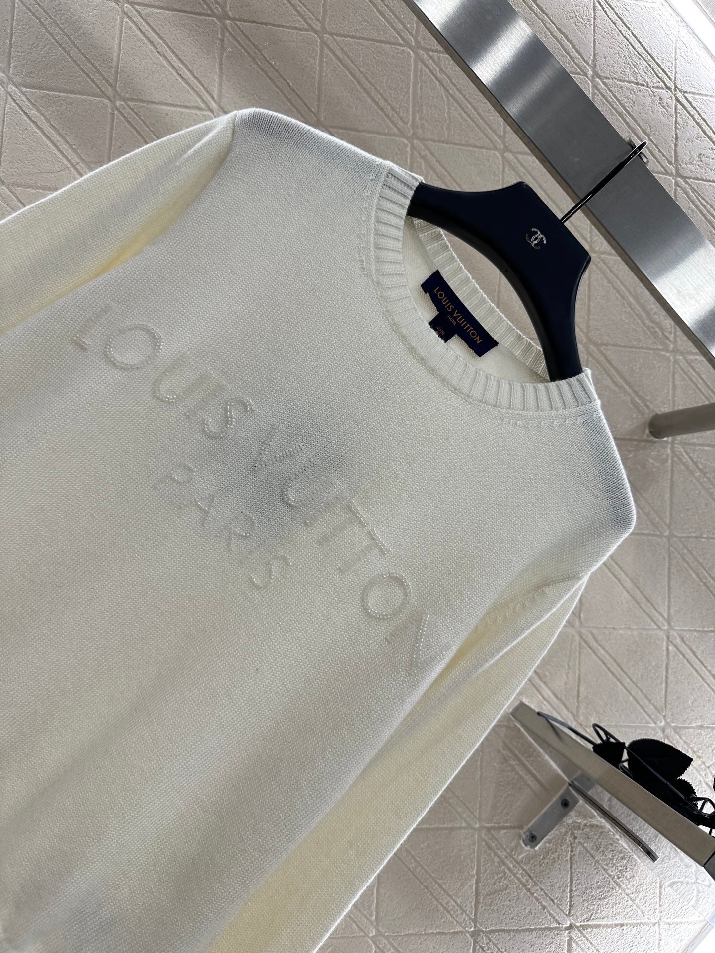 Cashmere yarn weaving provides comfortable and high-quality clothing. Knitted long sleeved top, cut with chest studs, sewn with letter patterns, rich layers, gorgeous edging, pit strips, thread highlighting the brand style. The garment is slightly elastic and presents a slimming visual effect