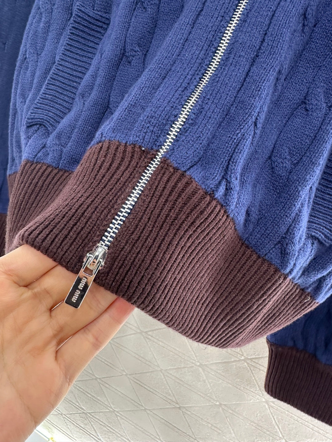 Wool yarn weaving, high quality appearance, regular knitting zipper baseball jacket, large body, wide thread binding, elastic tightening, rich color contrast, flexible and more casual, lightweight, vertical Fried Dough Twists hook weaving ➕ The letter logo serves as a design highlight, highlighting the brand style and making the upper body appear more gentle, delicate, and textured. It is a high-end and fashionable style