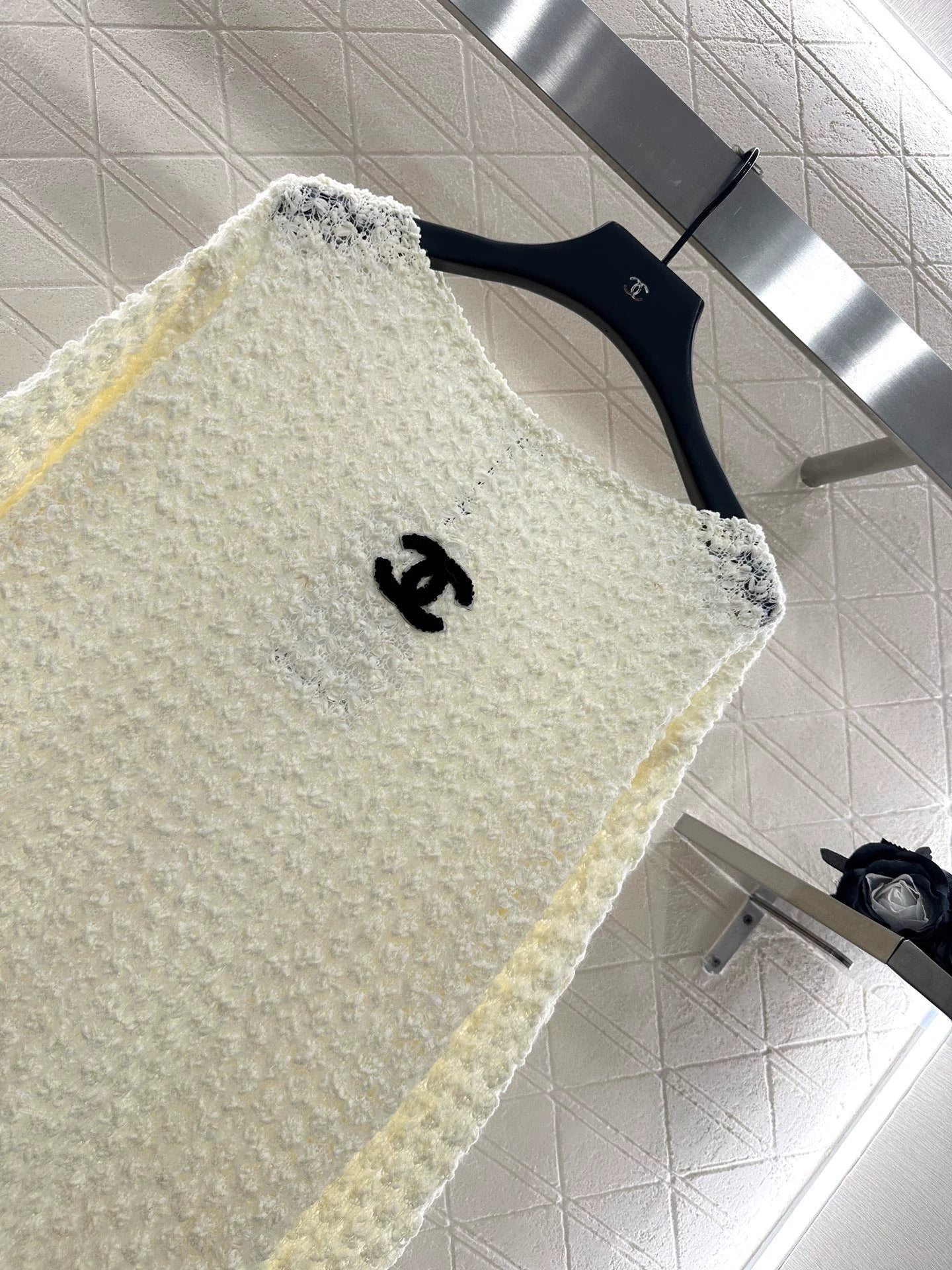 Wool yarn weaving texture, high-end wearing, loose silhouette, oversized knitted top cut, can be worn as a dress, with a double C logo on the chest to highlight the style, and a large body. The use of pleated texture interweaves to create a three-dimensional shape, combined with a contrasting waistband to highlight the high-end feeling of wearing. The elasticity and elasticity are more exquisite, and the waistband hook curve makes the wearing look slim