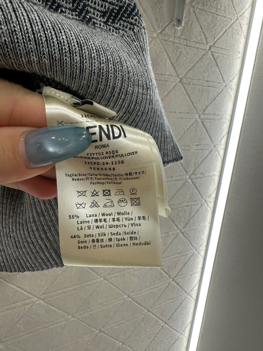 Weaved with silk and wool yarn, soft and comfortable, stylish and slimming, featuring a short sleeved top with a lapel and half open button design for easy on and off. The collar, sleeves, and hem are made of light gray, and the torso is decorated with multiple double F logos, exuding a refined and academic style. It is a must-have fashion item.