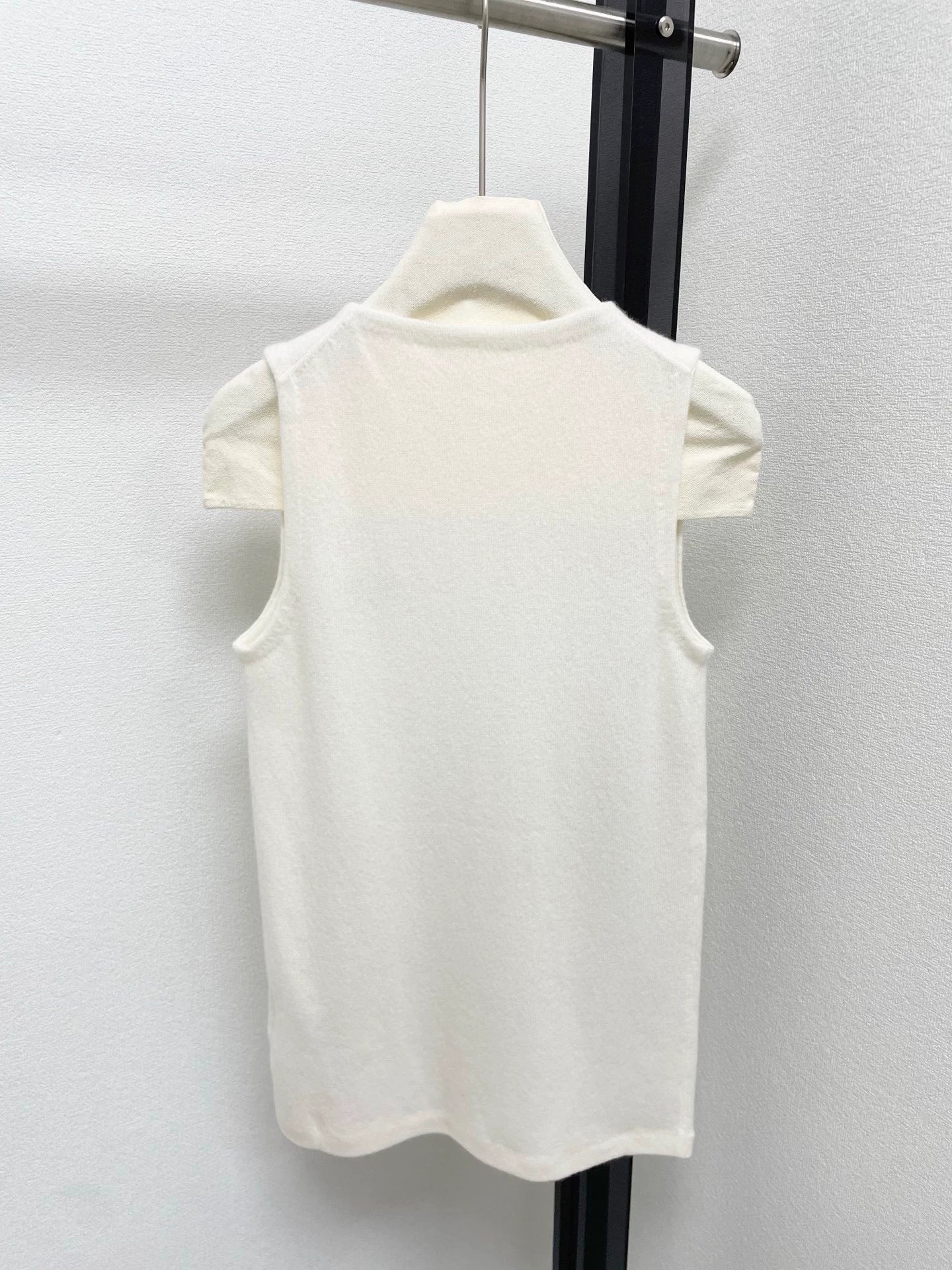 The fabric is a blend of 70% cashmere and 30% mulberry silk, which is soft and comfortable. Round neck sleeveless design, slim fit and slimming