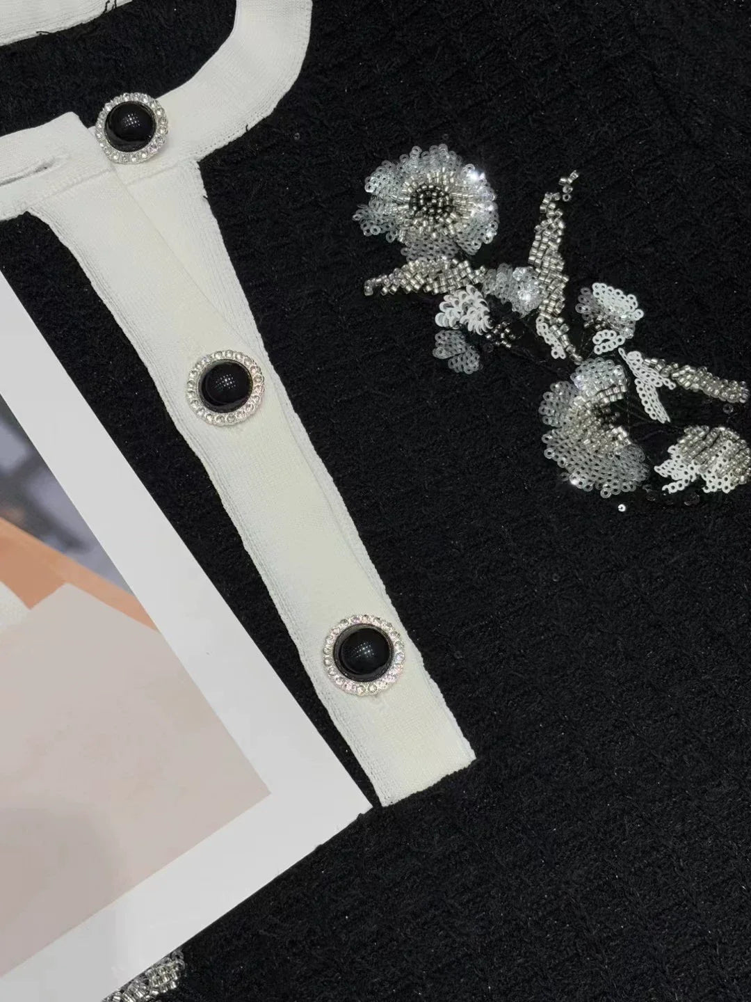 Exquisite sequin flower embroidery, sparkling and shining, can be used as a flash even when walking! Knitted fabric has a soft texture, suitable for wearing in autumn and winter seasons, with an elegant and generous temperament!