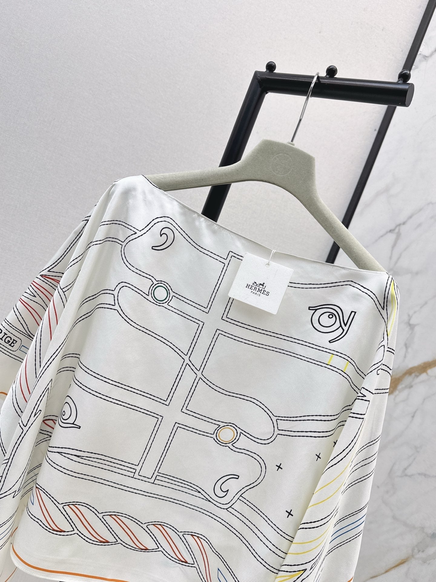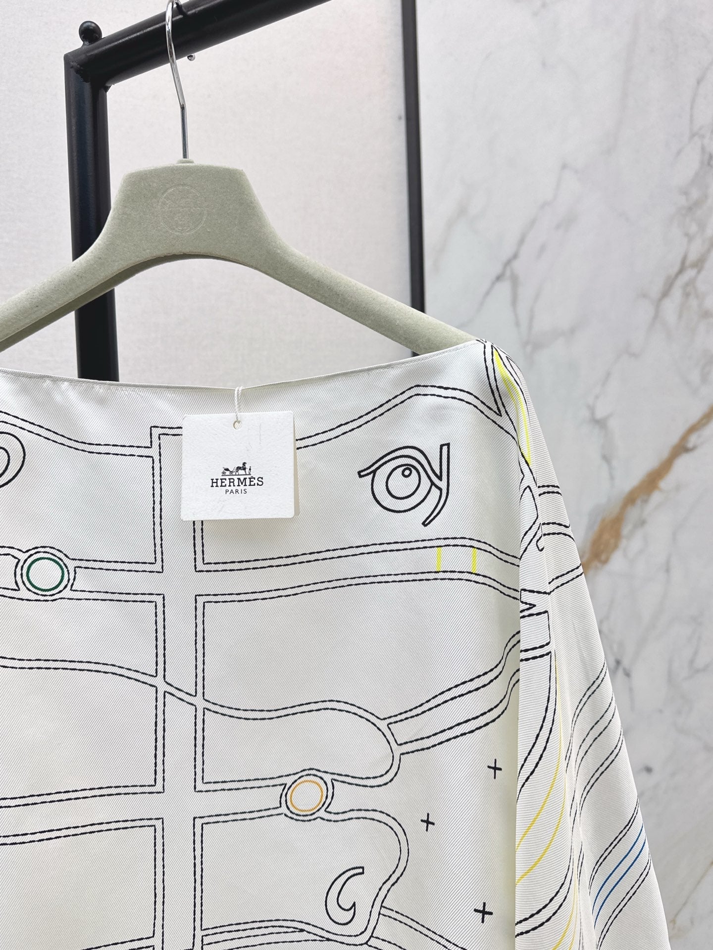 🤍Fully printed 16 Momme 100% silk twill. One-shoulder neckline. Luxurious and elegant. Classic and versatile. Super beautiful on the upper body. Elegant and atmospheric.